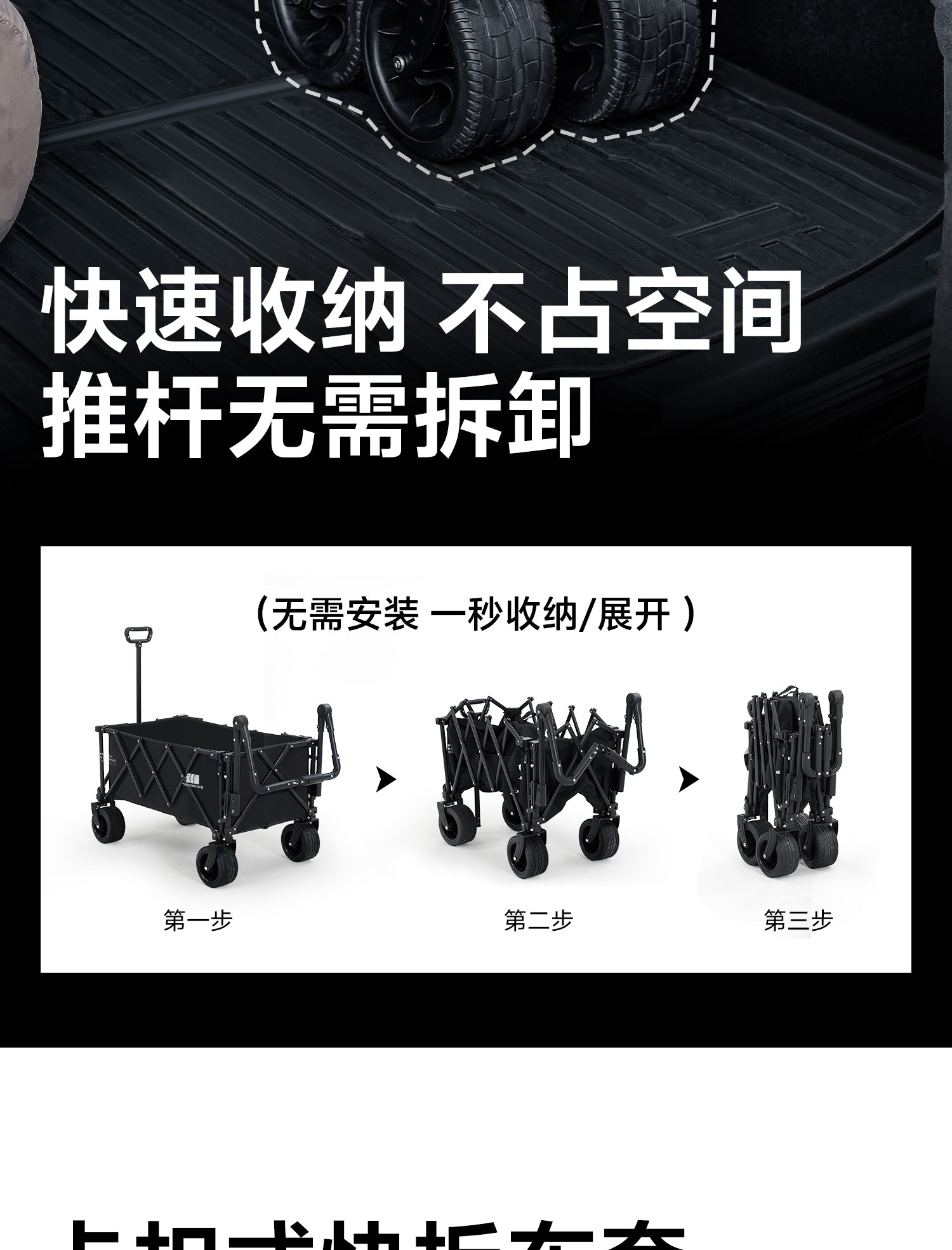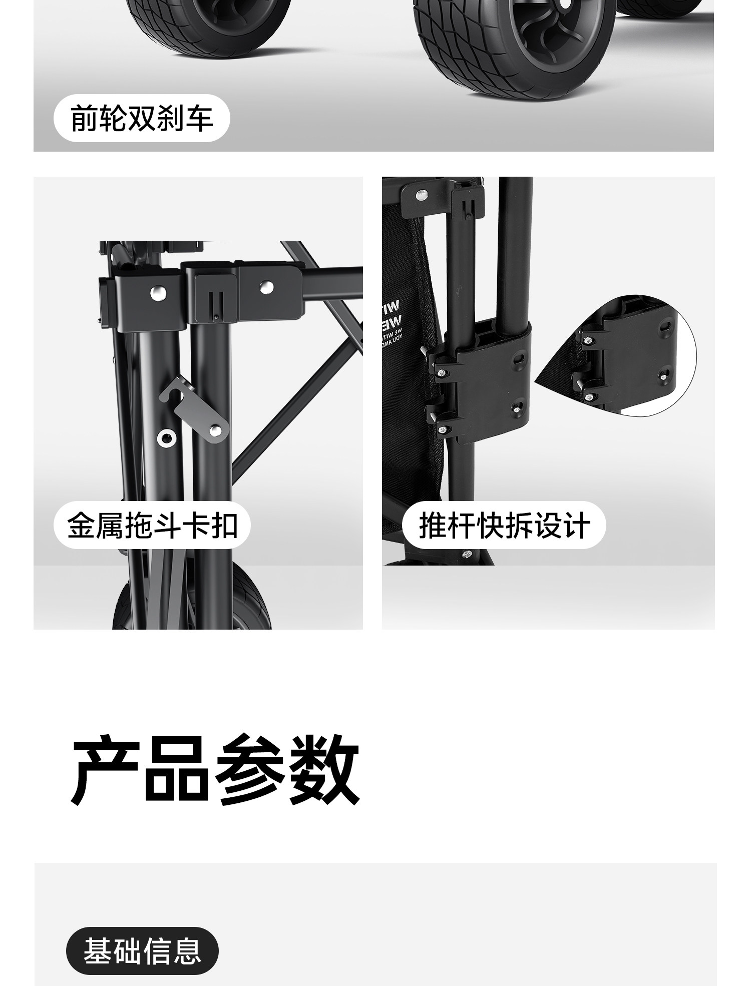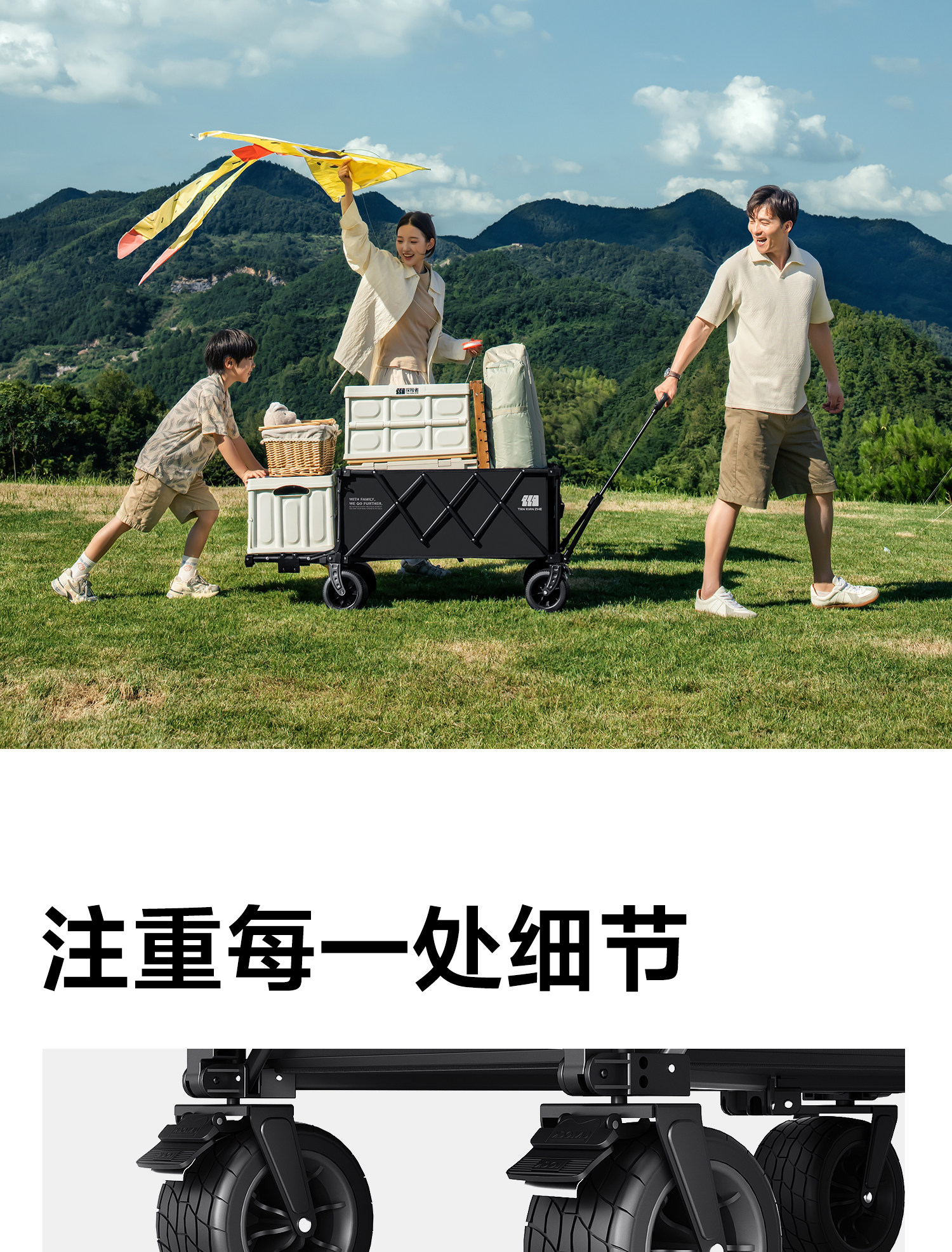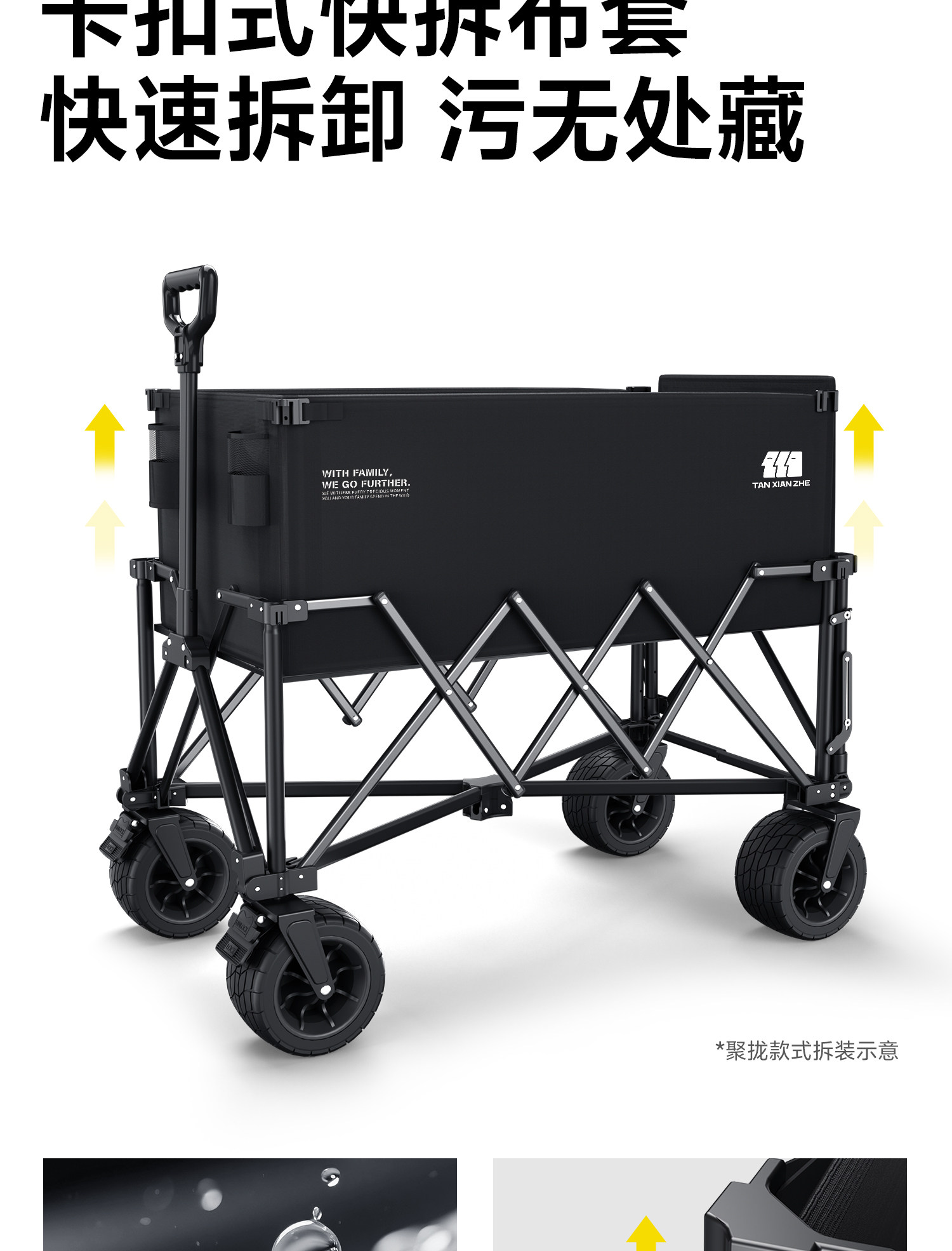 Explorer Camping Cart with Push Rod, Outdoor Foldable Children's Reclining Picnic Camping Sunshade Hand-Pushed Camp Trailer
