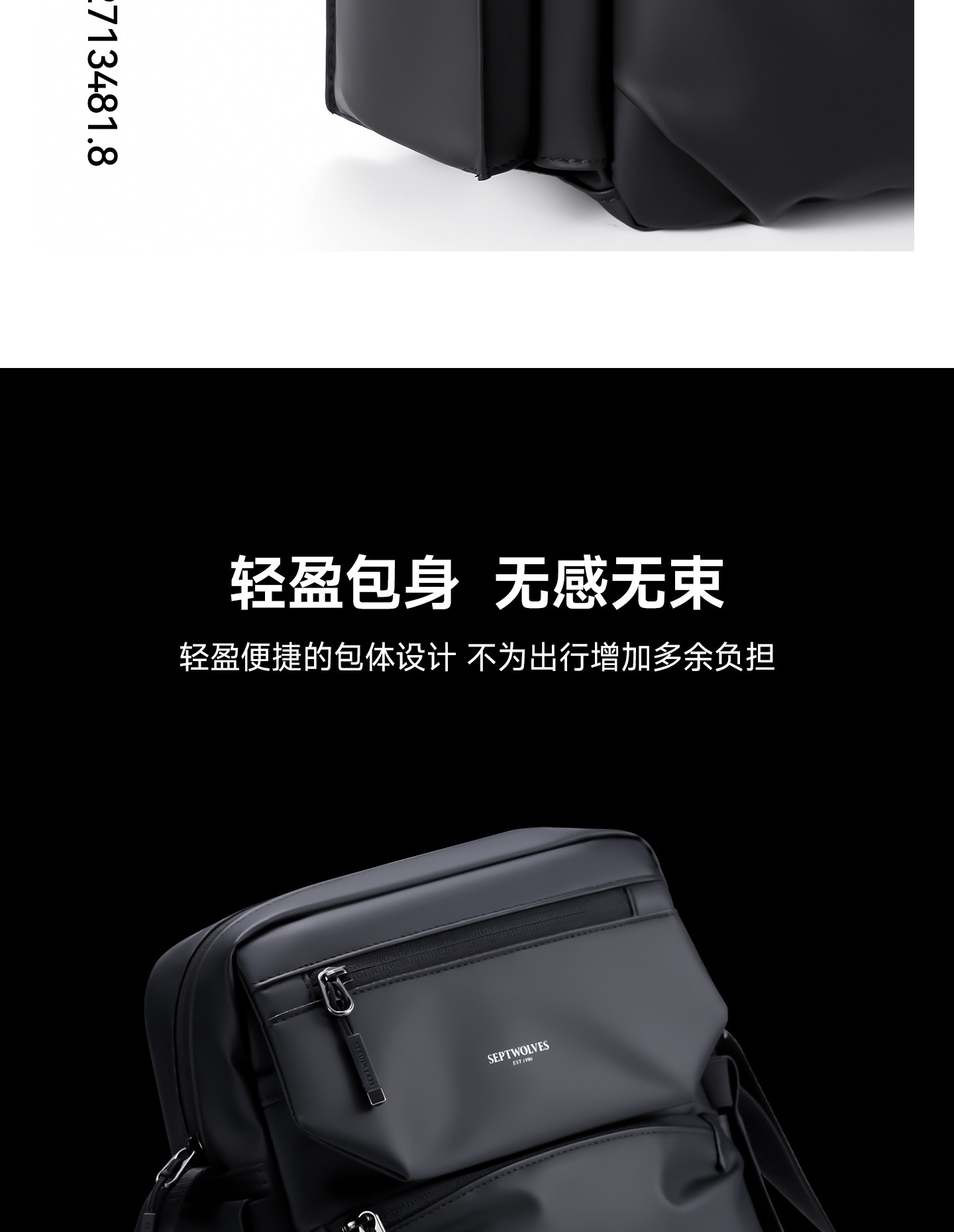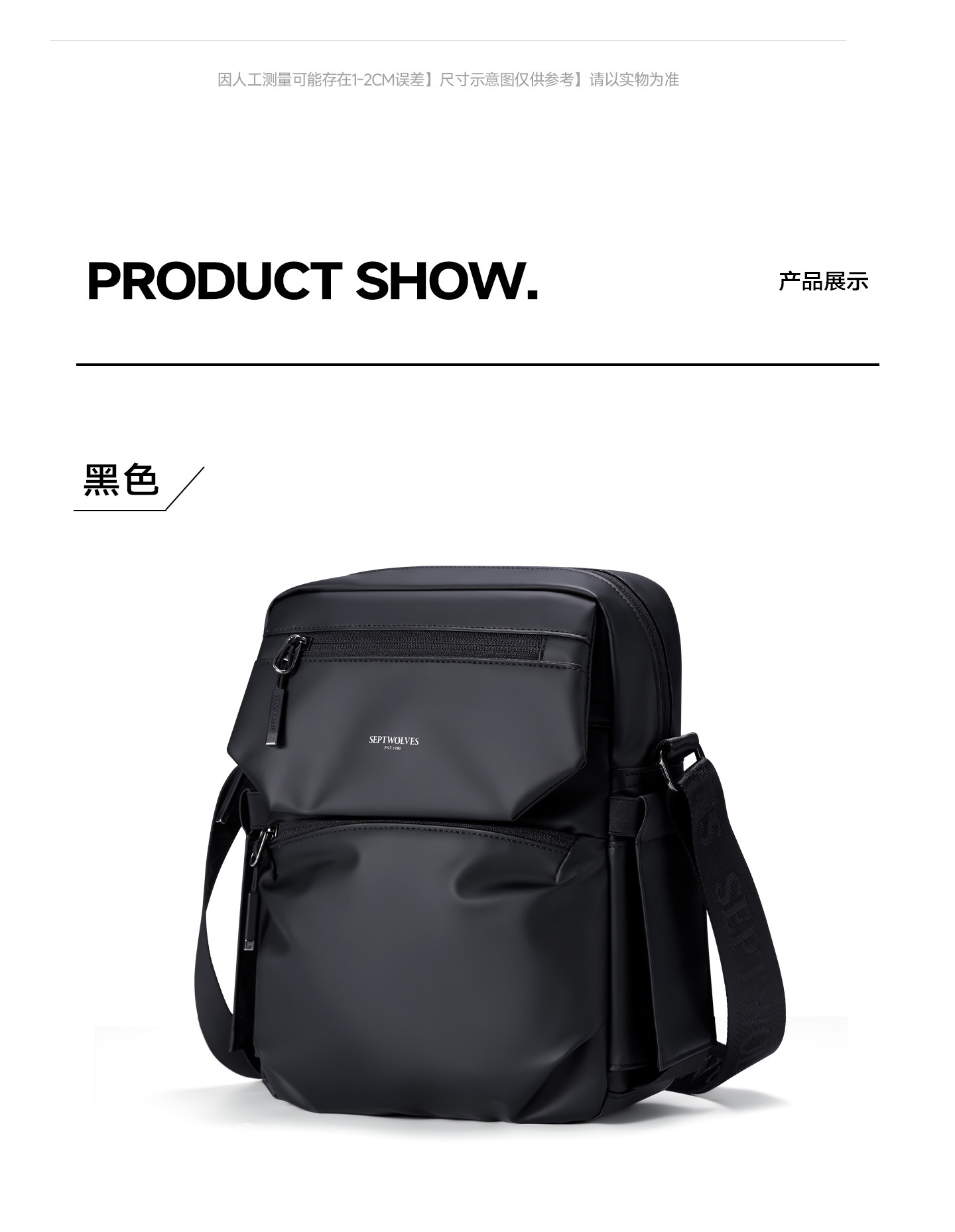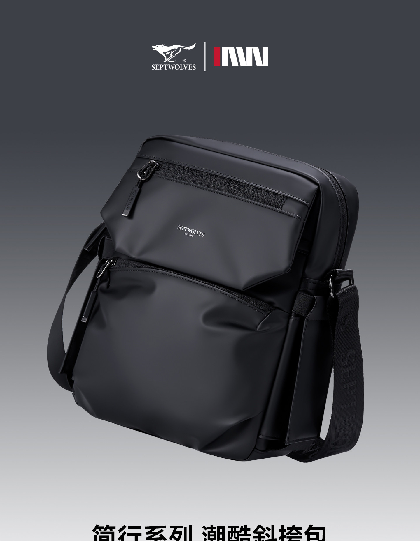 Septwolves Crossbody Bag Men's Shoulder Bag Casual Fashion Men's Bag Commuter Water-Repellent Large Capacity Shoulder Bag Men's Bag