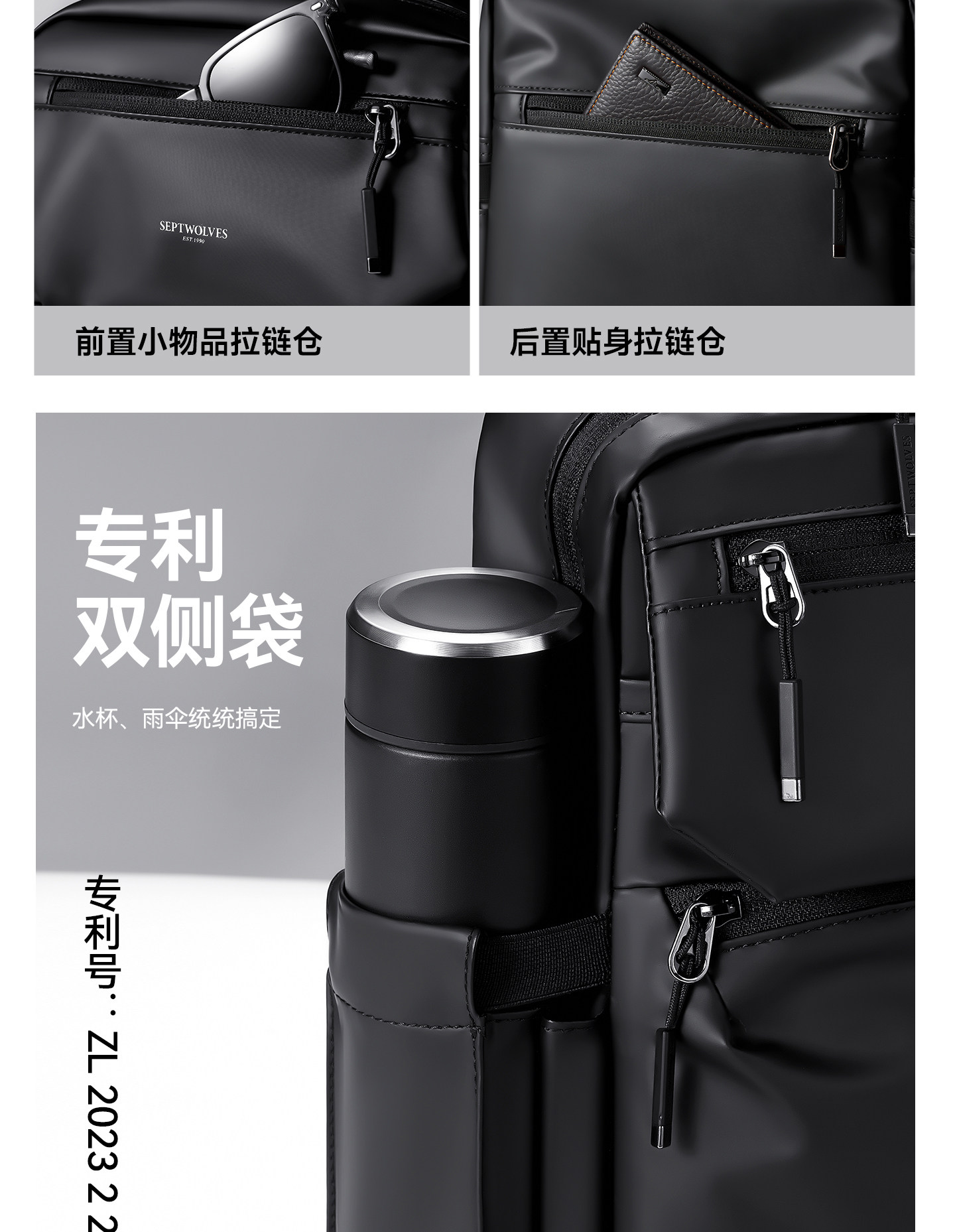 | Internal Structure | Main Bag,Patch Pocket,Cell Phone Bag,Zipper Pocket,Laminated Zipper Bag,Computer Pocket,Certificate Slot,Coin Bag |