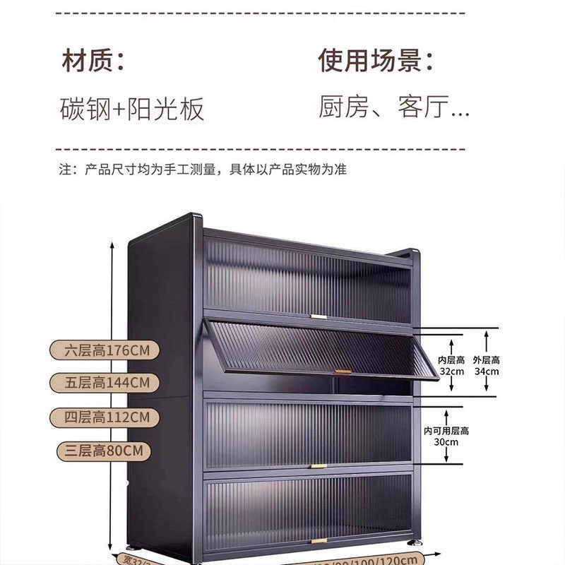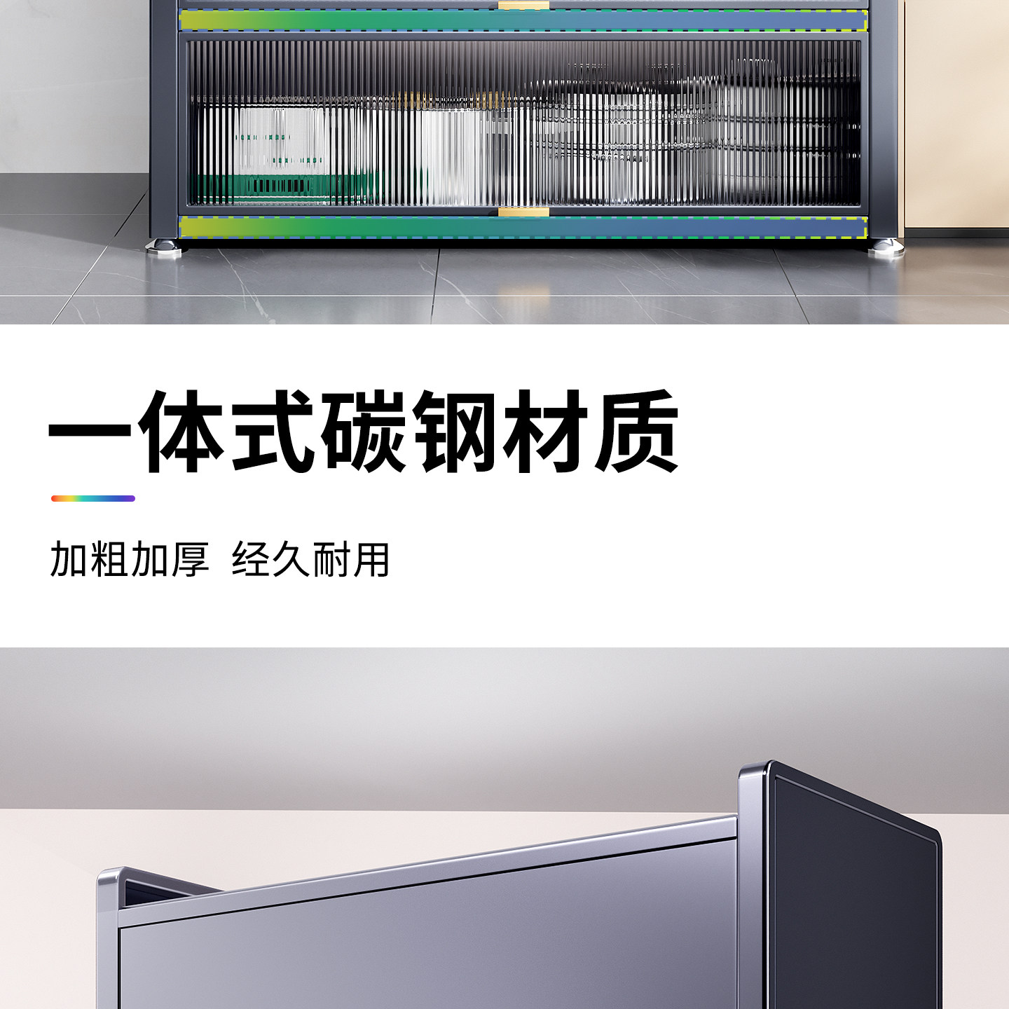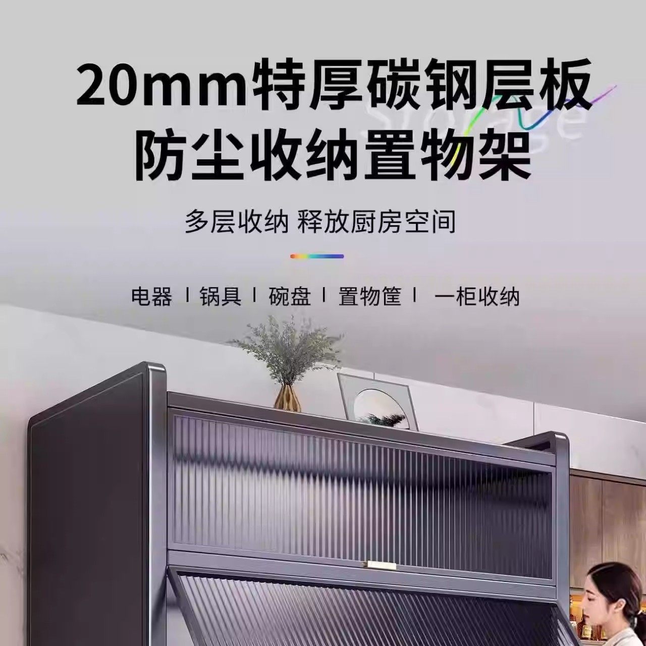 Kitchen Steel Multi-Functional Storage Rack, Floor-Standing Multi-Layer Microwave Oven Cupboard, Storage Cabinet, Integrated Against the Wall