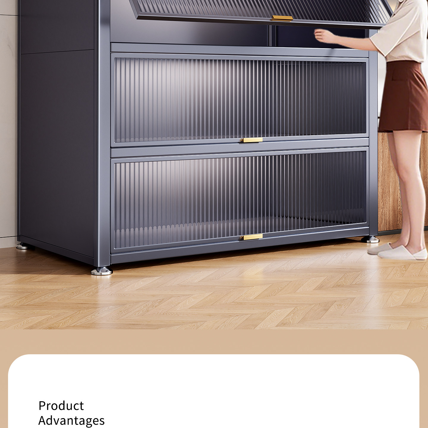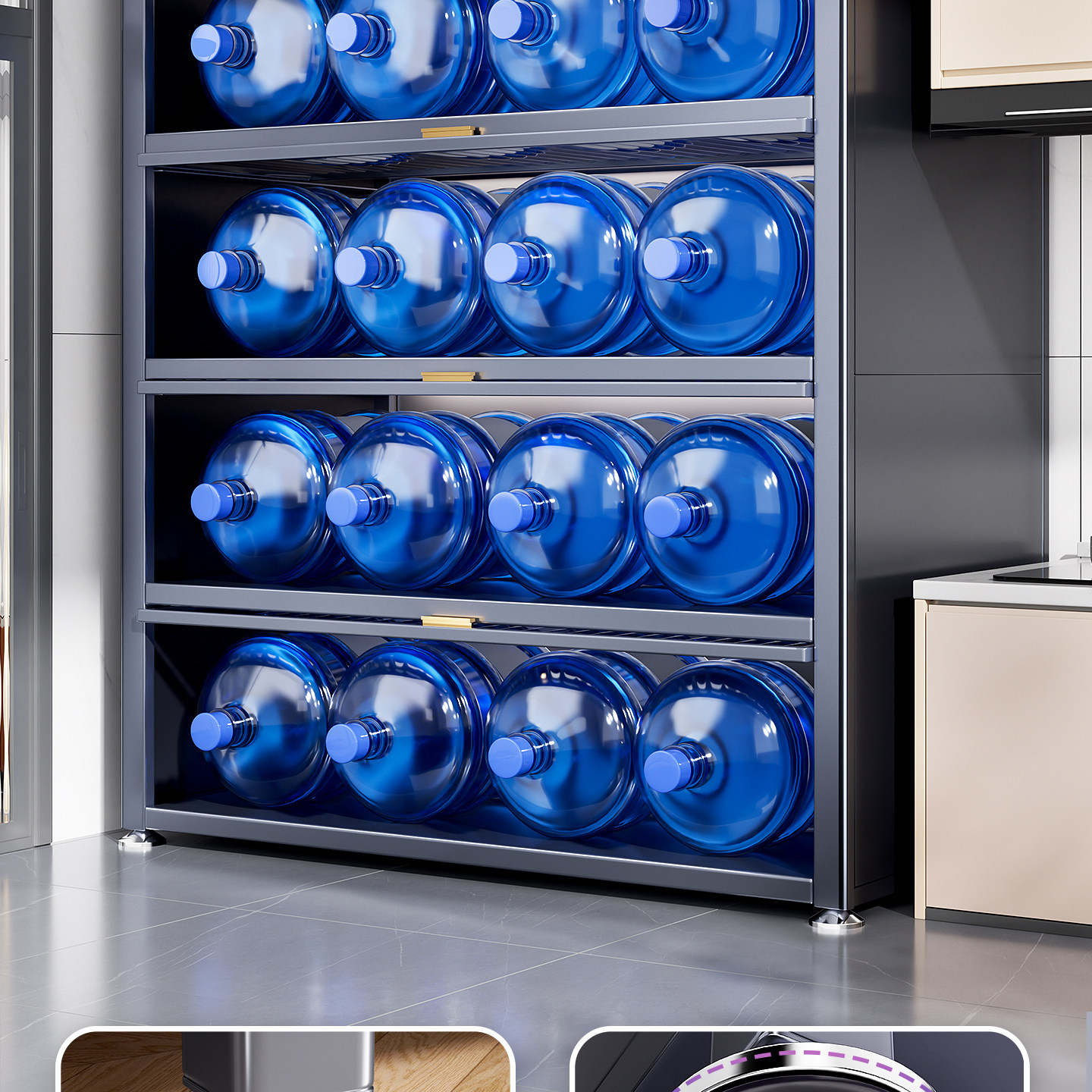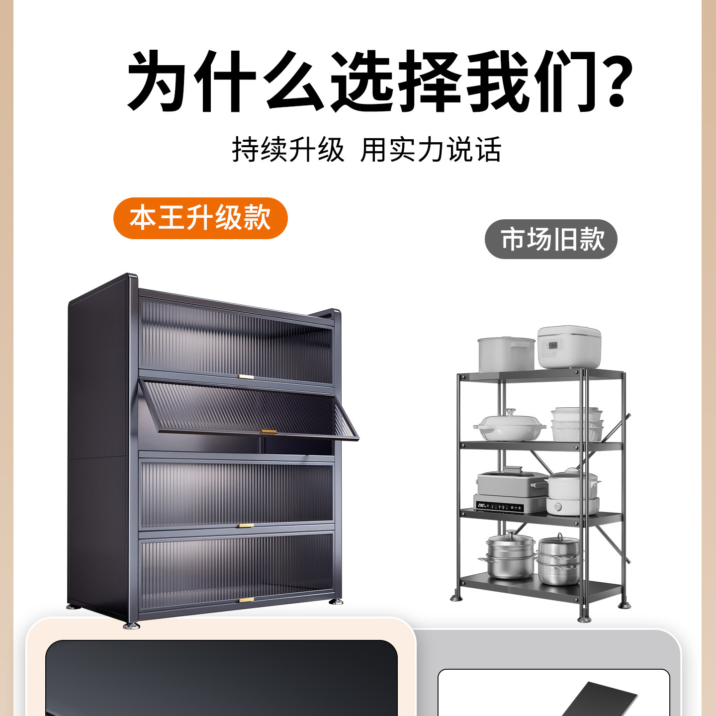 Kitchen Steel Multi-Functional Storage Rack, Floor-Standing Multi-Layer Microwave Oven Cupboard, Storage Cabinet, Integrated Against the Wall