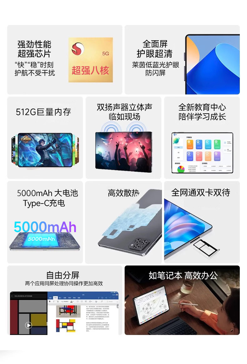 2026 New Model Original Brand New Genuine 10.1inch Tablet Ultra-Thin Eye-Protection Android 5g Full Network Office Tablet 512g Memory Octa-Core Learning Gaming Tablet under a Thousand Yuan with Card Slot