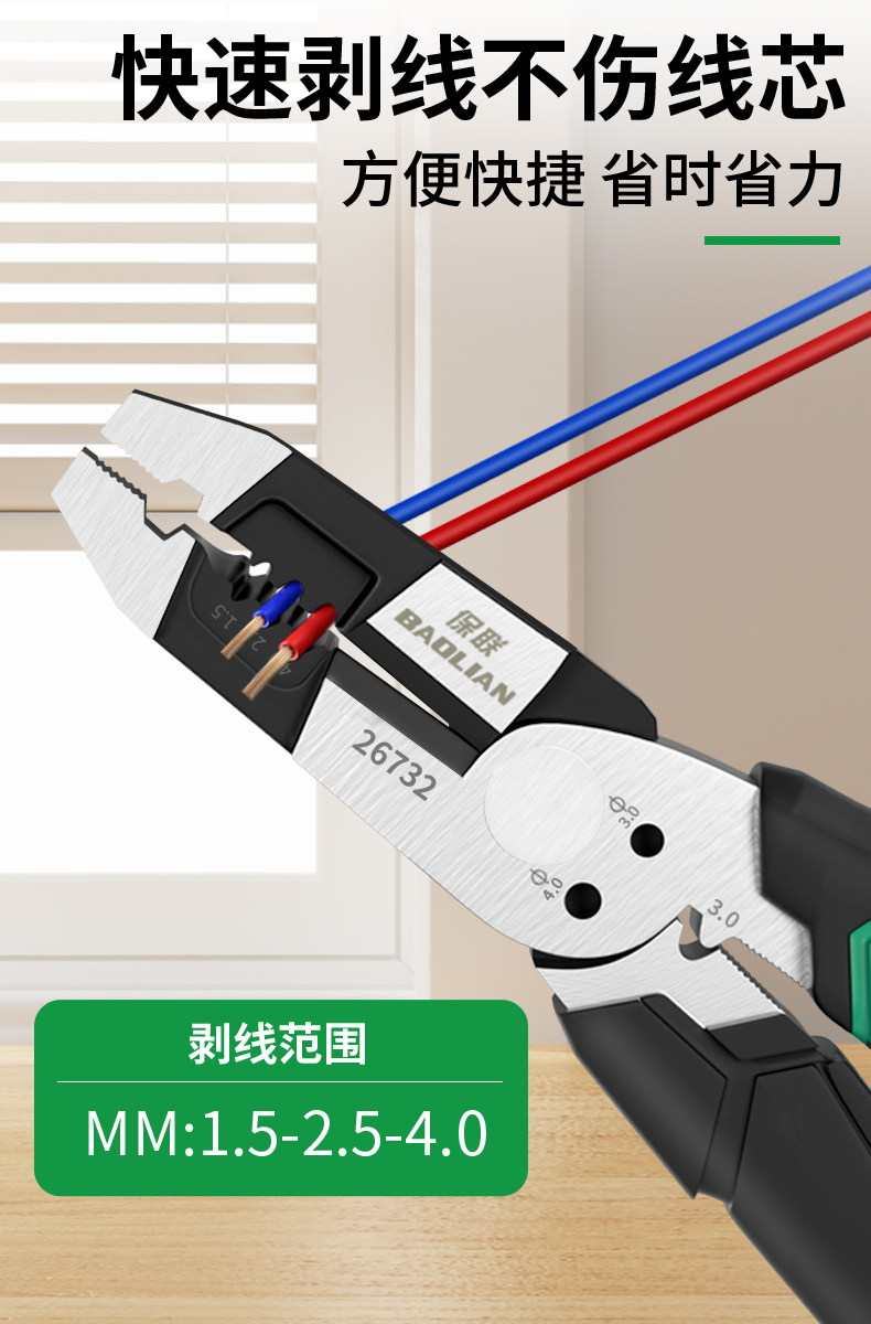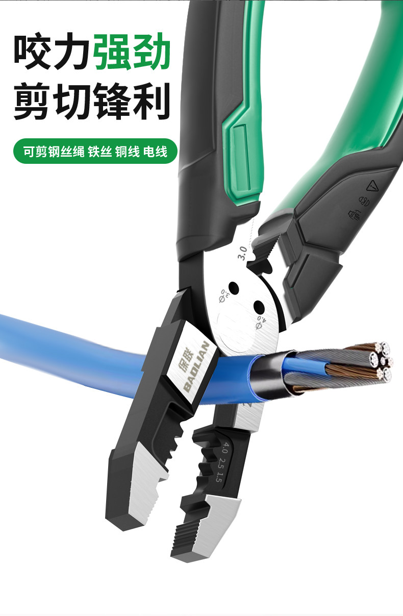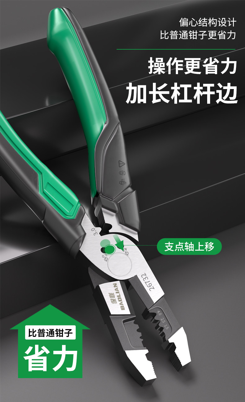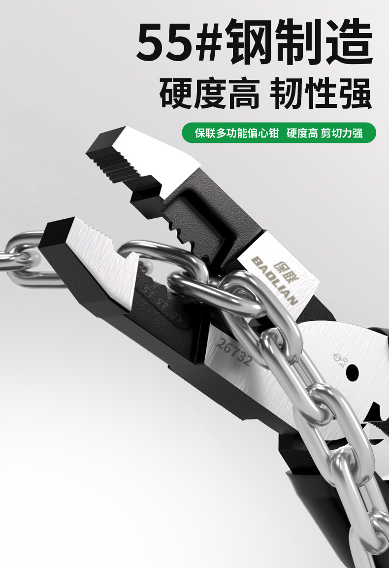 Baolian Multifunctional Eccentric Pliers High Hardness 55 # Steel Industrial-Grade Rust-Resistant and Corrosion-Resistant Labor-Saving Wire Cutters and Wire Strippers