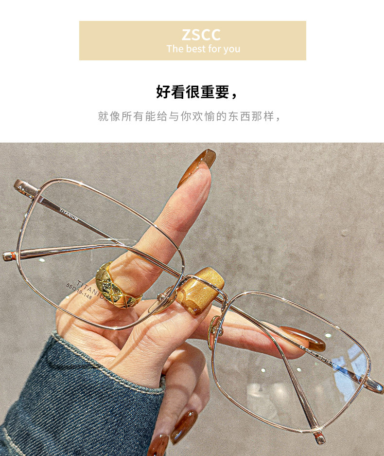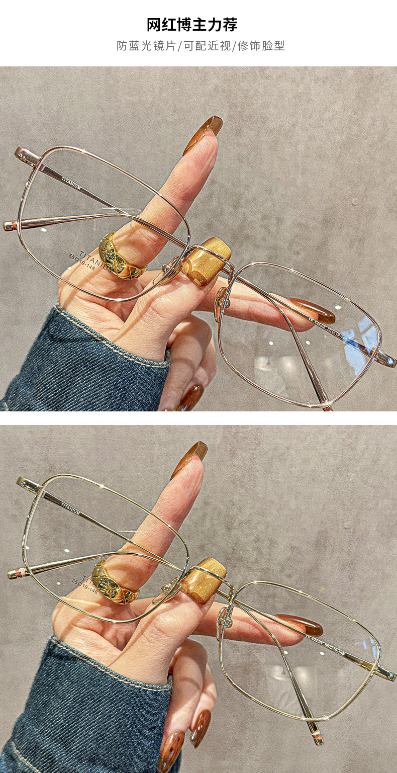 Ultra-Light Titanium Square Frame Glasses for Women with Myopia, Can Be Customized with Prescription, Natural Look, Vintage Gold Thin Frame Eyeglass Frames for Men