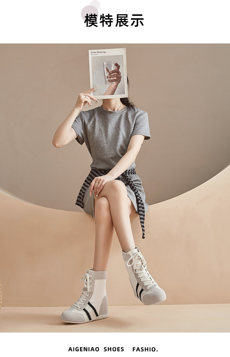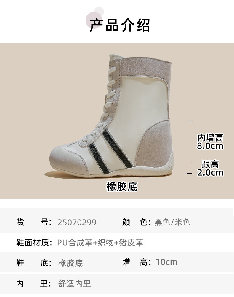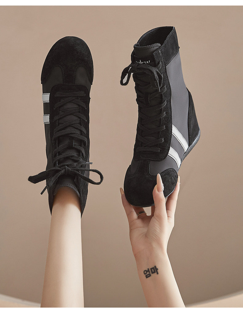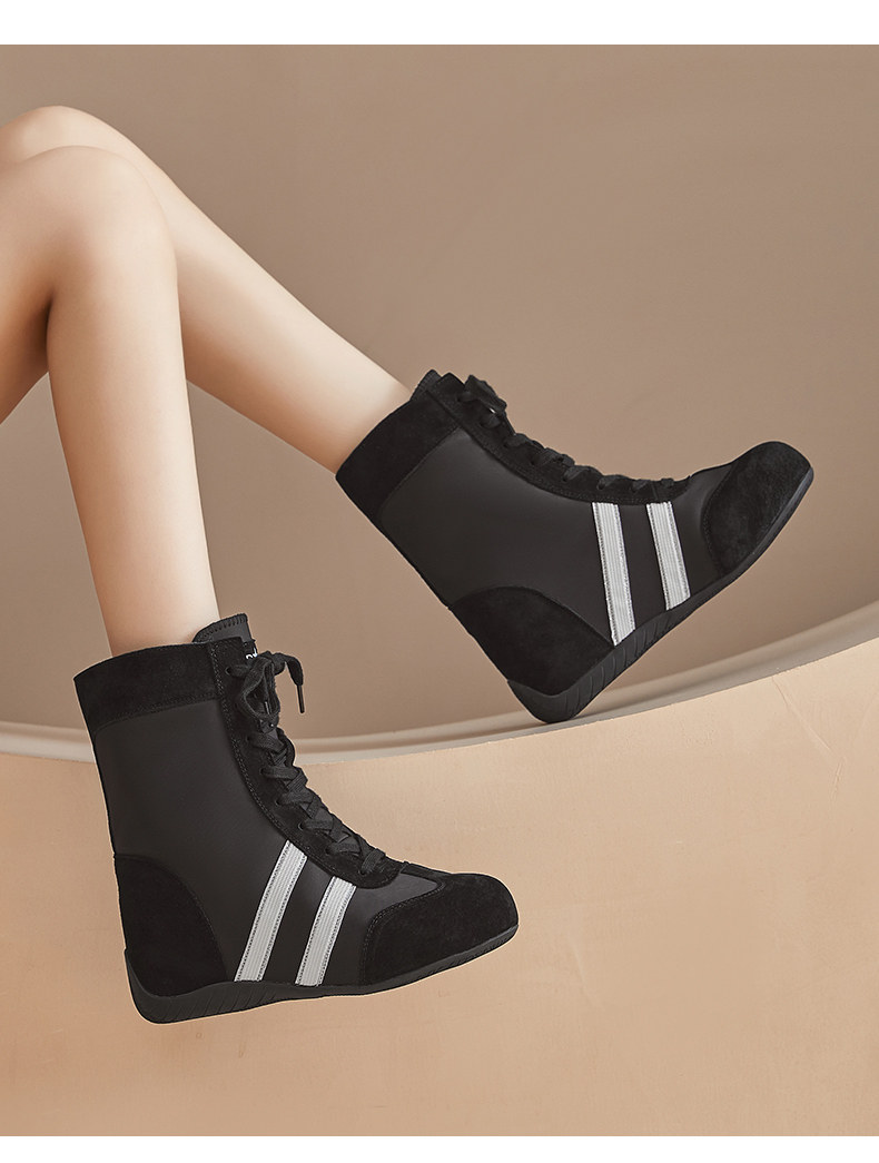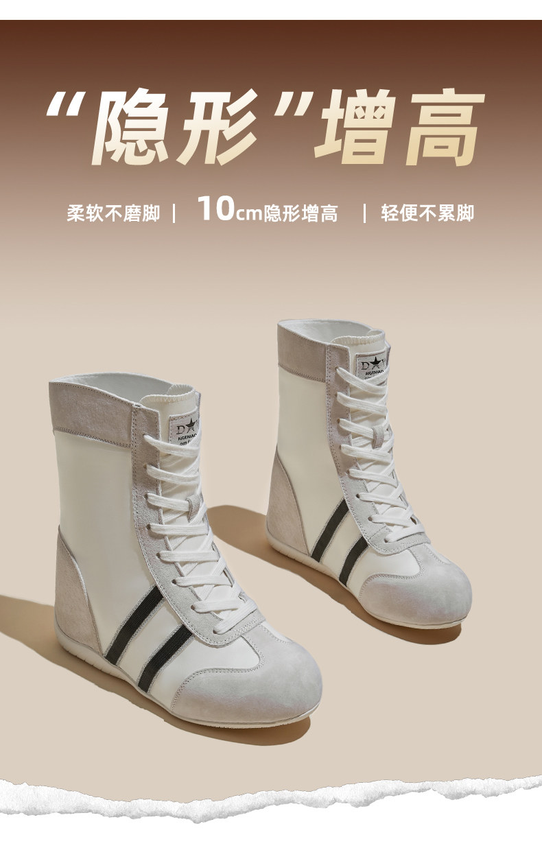 High-Top German Training Shoes for Women, 2025 Autumn New Style, Petite Size, 10cm Casual Retro Slim Short Boots with Hidden Height Increase