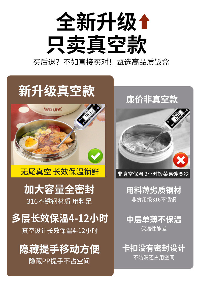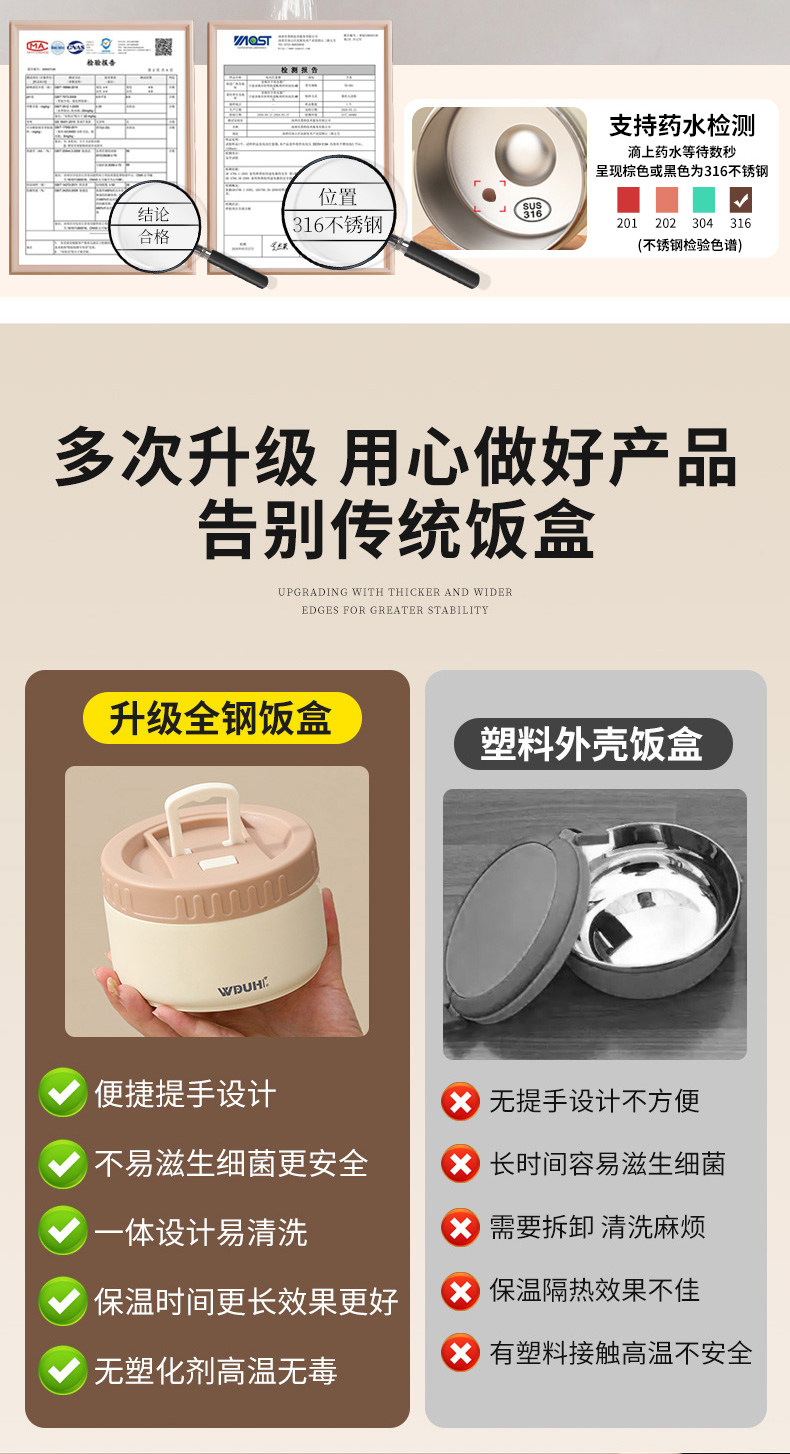 | Color Classification | ❤✅ [Wudu Hui Brand 316 Stainless Steel] Products Support Testing by Any Institution✅Get Ten Times the Compensation for Any Fake Product↓↓↓,⭐✅ [Newly Upgraded Patented Model in 2025] Double-Layer Anti-Scalding❤Vacuum Lightweight Insulated Lunch Box↓↓Select Size Below↓↓,[316 Antibacterial Fresh Lock-Almond Brown] Double Layer 1240ml (Rice/Vegetables) + Tableware + Thermal Bag,[316 Antibacterial Fresh Lock-Modern Red] Double Layer 1240ml (Rice/Vegetables) + Tableware + Thermal Bag,[316 Antibacterial Fresh Lock-Mint Green] Double Layer 1240ml (Rice/Vegetables) + Tableware + Thermal Bag,【❤Increased Capacity - Almond Brown] Double Layer 1440ml (Rice/Vegetables) + Tableware + Thermal Bag,【❤Increased Capacity - Modern Red] Double Layer 1440ml (Rice/Vegetables) + Tableware + Thermal Bag,【❤Increased Capacity - Mint Green] Double Layer 1440ml (Rice/Vegetables) + Tableware + Thermal Bag,[316 Antibacterial Fresh Lock-Almond Brown] Three Layers 1760ml (Rice/Vegetables/Soup) + Tableware + Thermal Bag,[316 Antibacterial Fresh Lock-Modern Red] Three Layers 1760ml (Rice/Vegetables/Soup) + Tableware + Thermal Bag,[316 Antibacterial Fresh Lock-Mint Green] Three Layers 1760ml (Rice/Vegetables/Soup) + Tableware + Thermal Bag,【❤Increased Capacity - Almond Brown] Three Layers 1960ml (Rice/Vegetables/Soup) + Tableware + Thermal Bag,【❤Increased Capacity - Modern Red] Three Layers 1960ml (Rice/Vegetables/Soup) + Tableware + Thermal Bag,【❤ Increased Capacity - Mint Green] Three Layers 1960ml (Rice/Vegetables/Soup) + Tableware + Thermal Bag,[316 Antibacterial Fresh Lock-Almond Brown] Four Layers 2480ml (Rice/Vegetables/Soup/Fruit) + Tableware + Thermal Bag,[316 Antibacterial Fresh Lock-Modern Red] Four Layers 2480ml (Rice/Vegetables/Soup/Fruit) + Tableware + Thermal Bag,[316 Antibacterial Fresh Lock-Mint Green] Four Layers 2480ml (Rice/Vegetables/Soup/Fruit) + Tableware + Thermal Bag,【❤Increased Capacity - Almond Brown] Four Layers 2880ml (Rice/Vegetables/Soup/Fruit) + Tableware + Thermal Bag,【❤Increased Capacity - Modern Red] Four Layers 2880ml (Rice/Vegetables/Soup/Fruit) + Tableware + Thermal Bag,【 ❤ Increased Capacity - Mint Green] Four Layers 2880ml (Rice/Vegetables/Soup/Fruit) + Tableware + Thermal Bag |