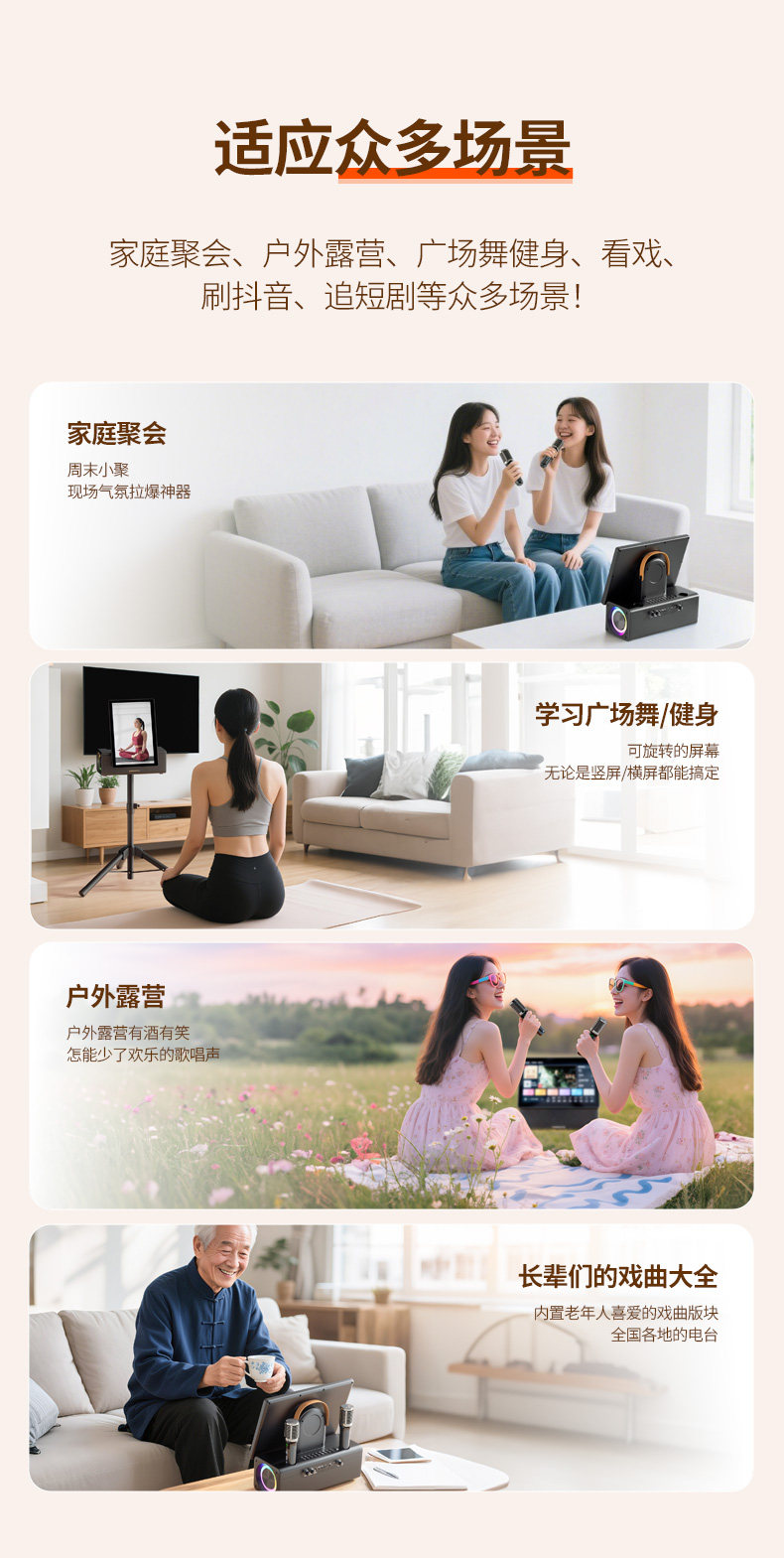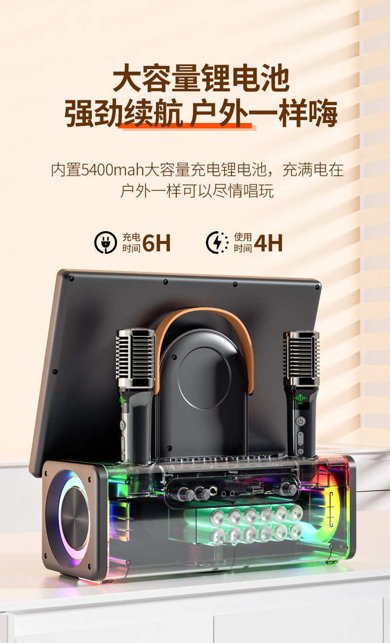 Home Ktv Audio Set Karaoke Machine Complete Set for Home Karaoke Bluetooth Outdoor Plaza Singing Integrated Speaker