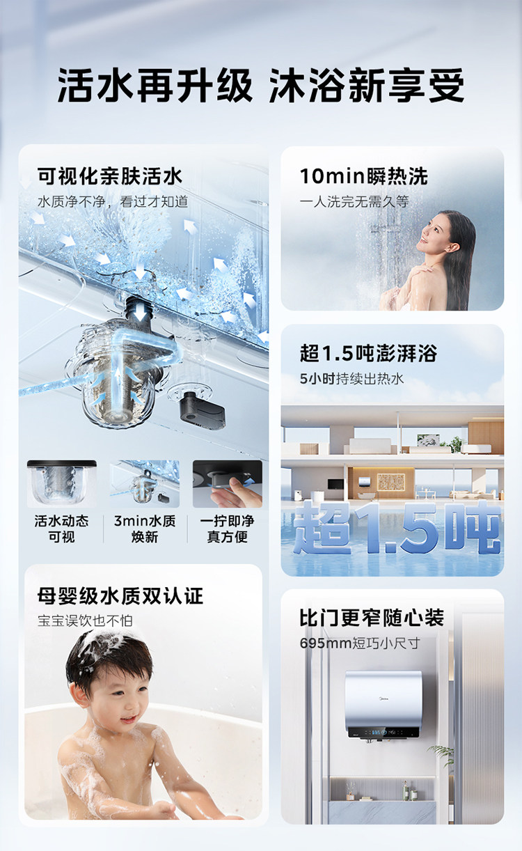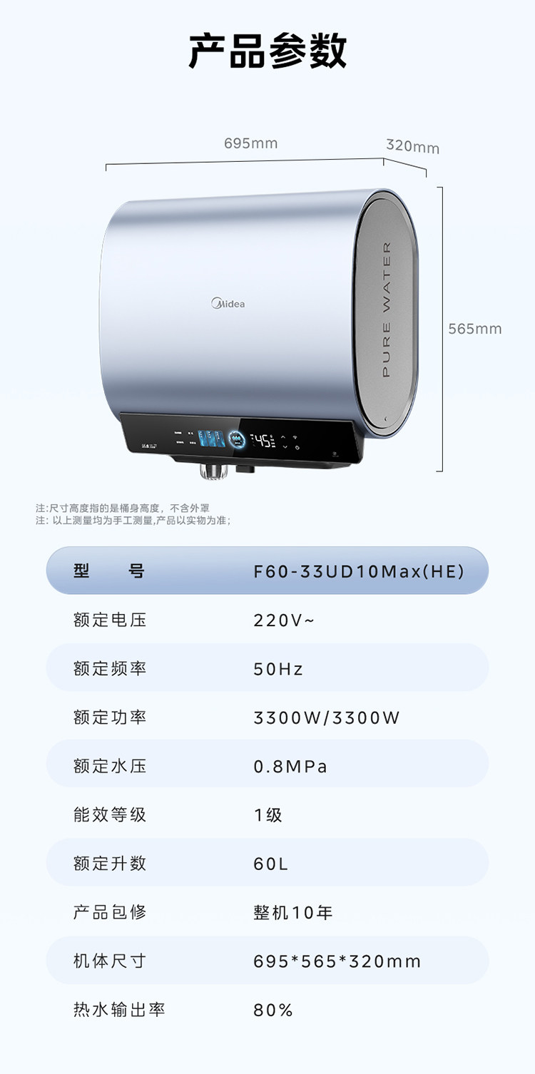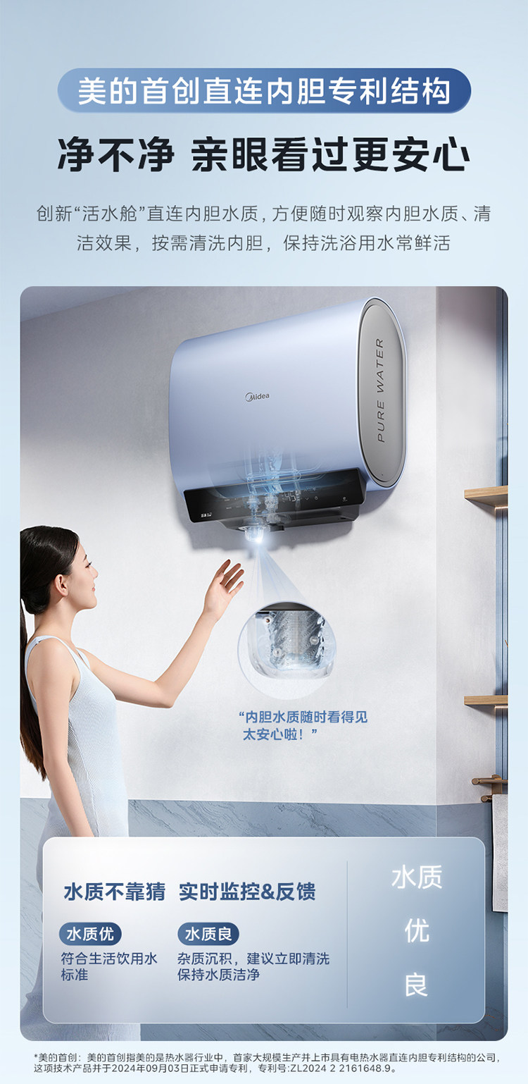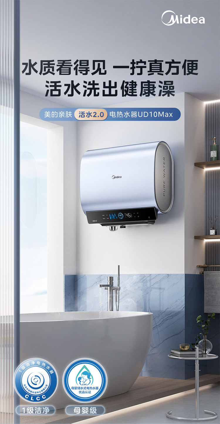 Midea Living Water 2.0 Electric Water Heater Ud10Max Dual Tank Flat Barrel for Home Use, Level 1 Home Appliance Official Flagship Store