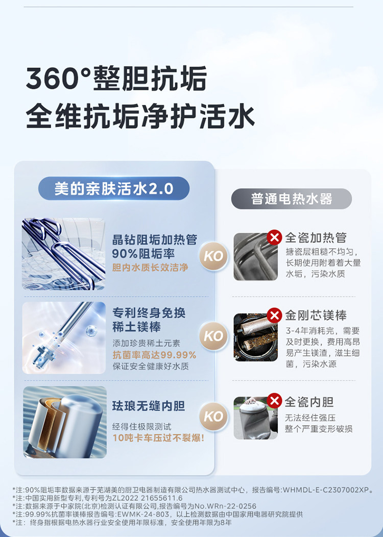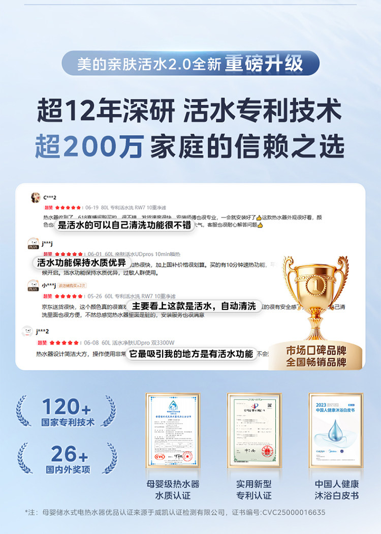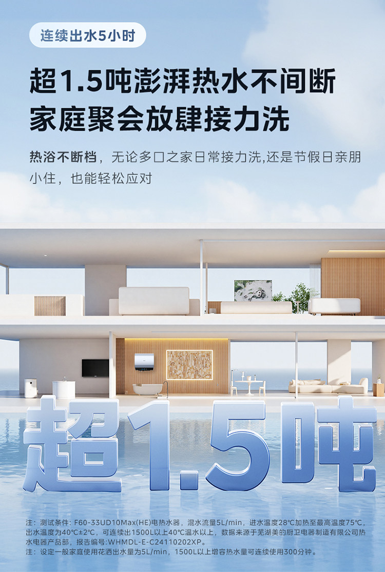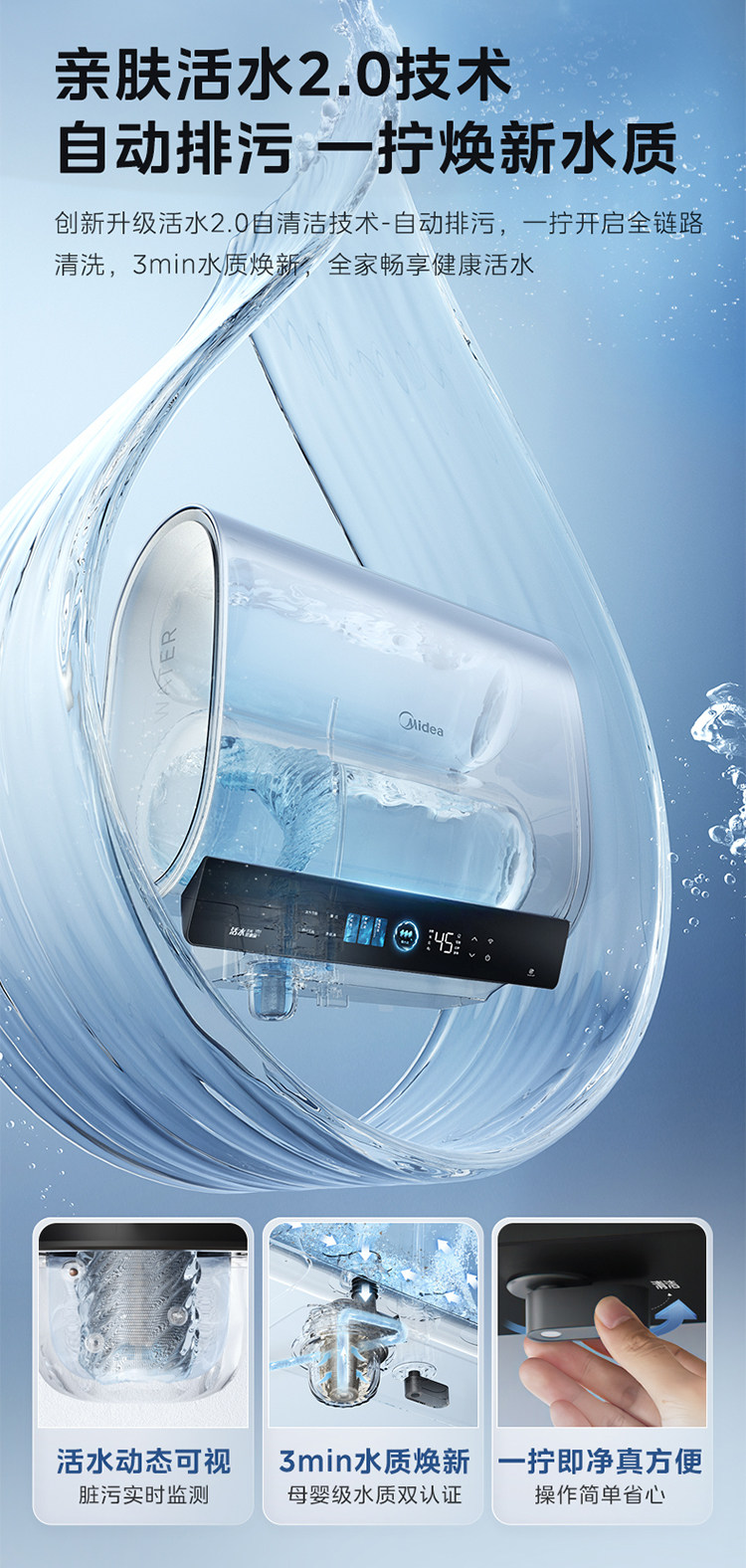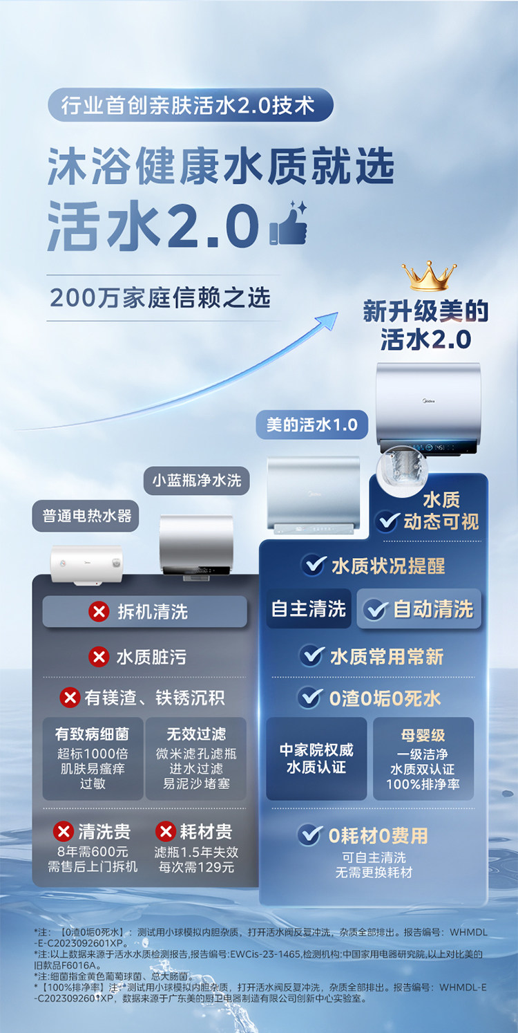 Midea Living Water 2.0 Electric Water Heater Ud10Max Dual Tank Flat Barrel for Home Use, Level 1 Home Appliance Official Flagship Store