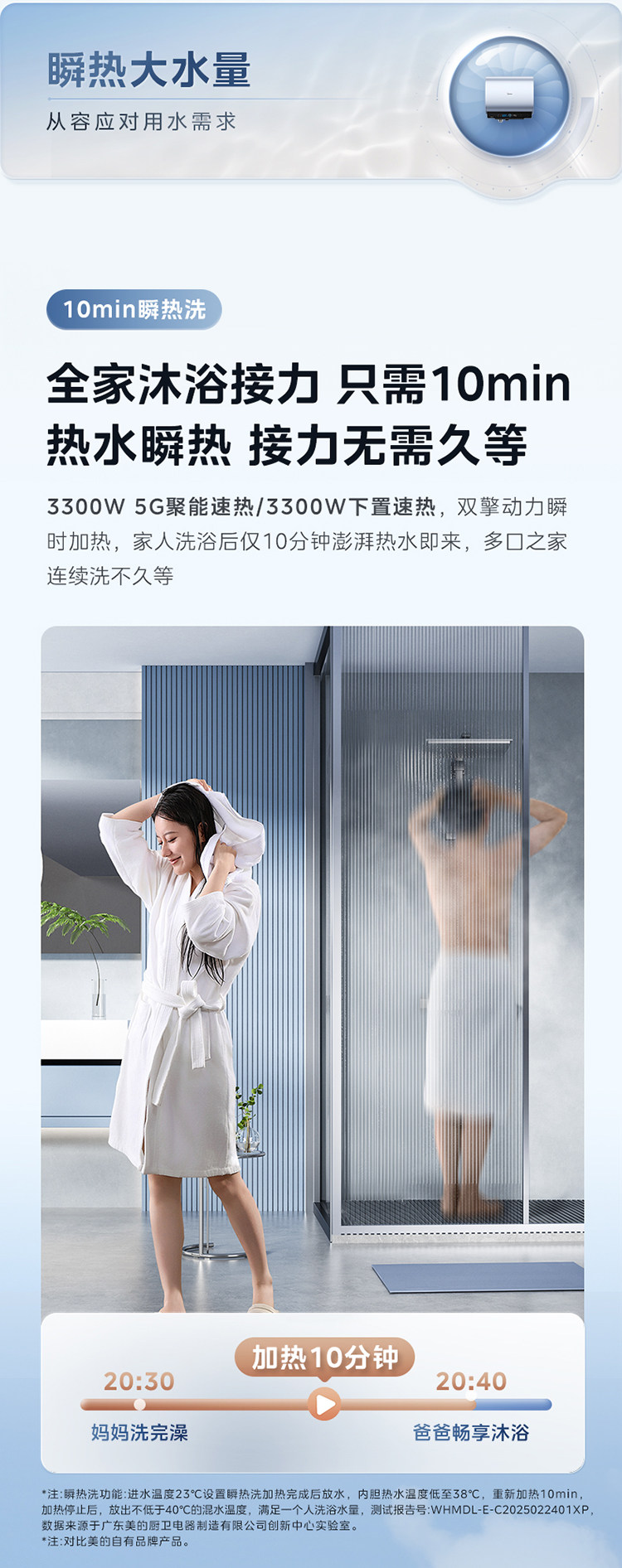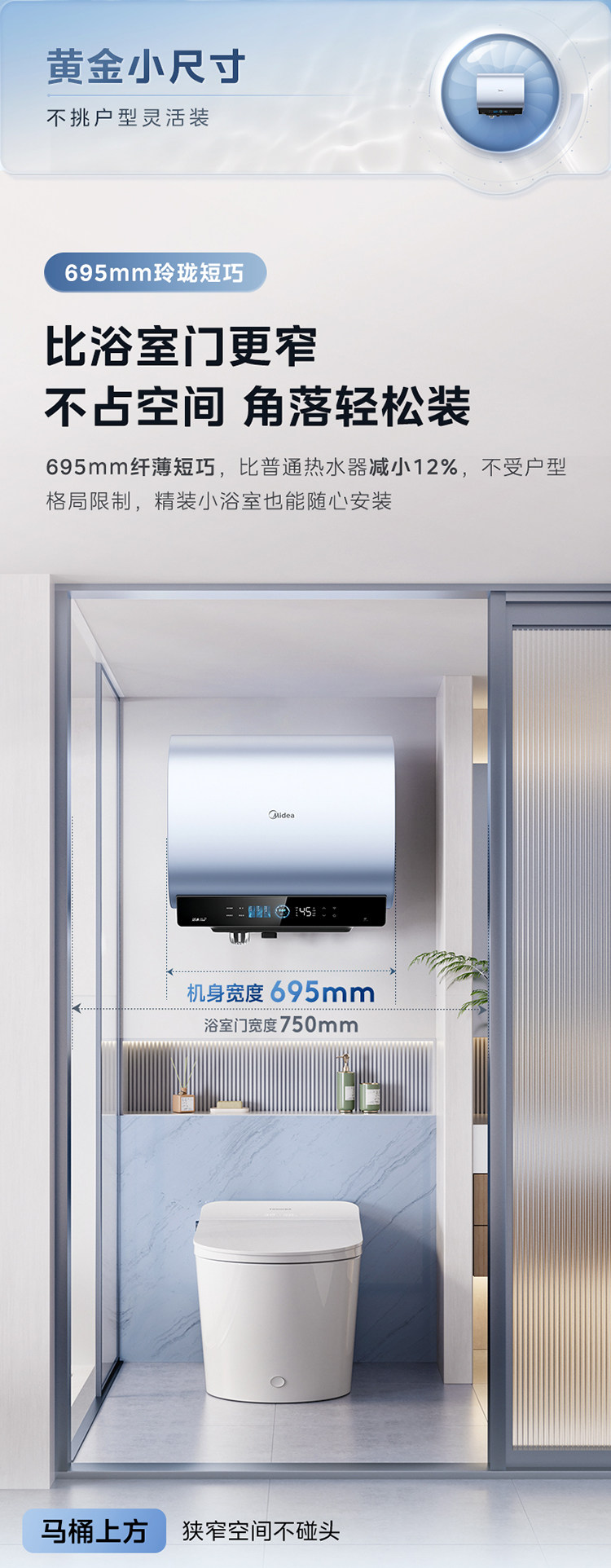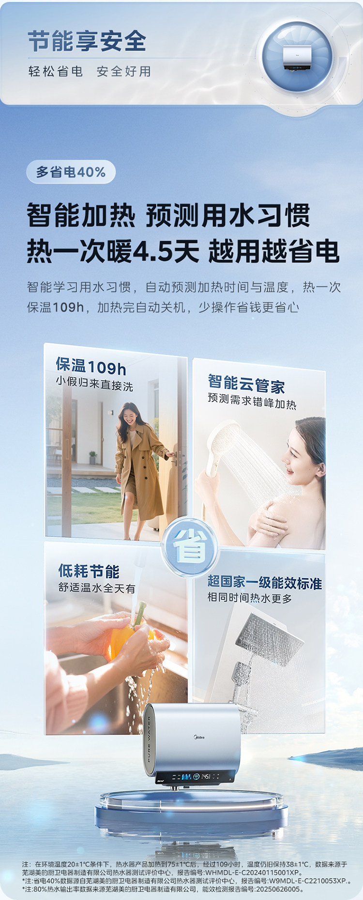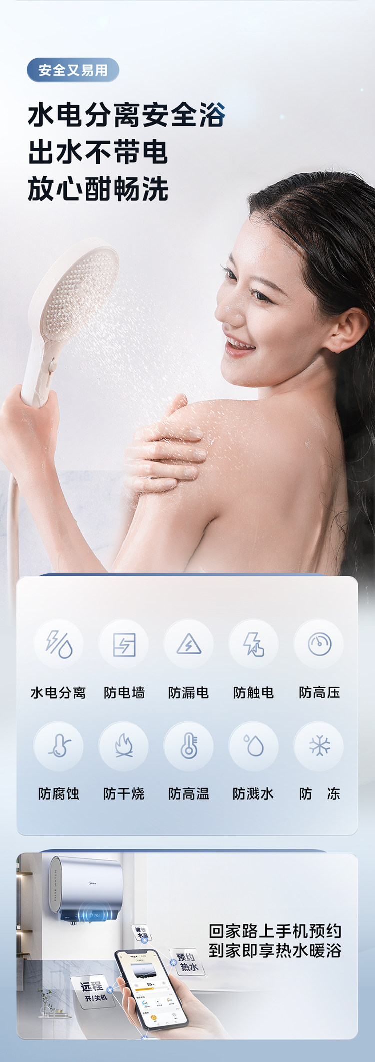 Midea Living Water 2.0 Electric Water Heater Ud10Max Dual Tank Flat Barrel for Home Use, Level 1 Home Appliance Official Flagship Store