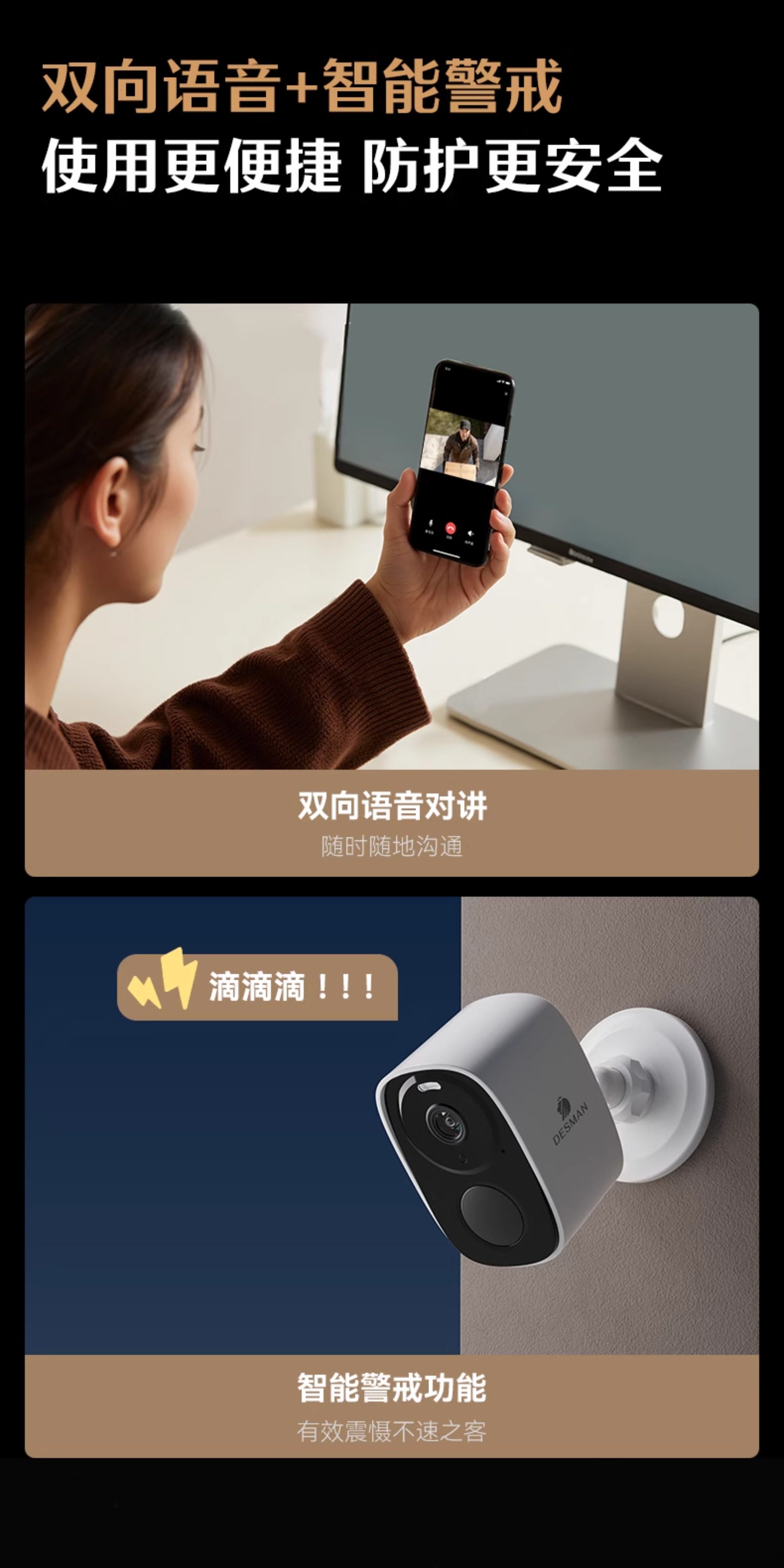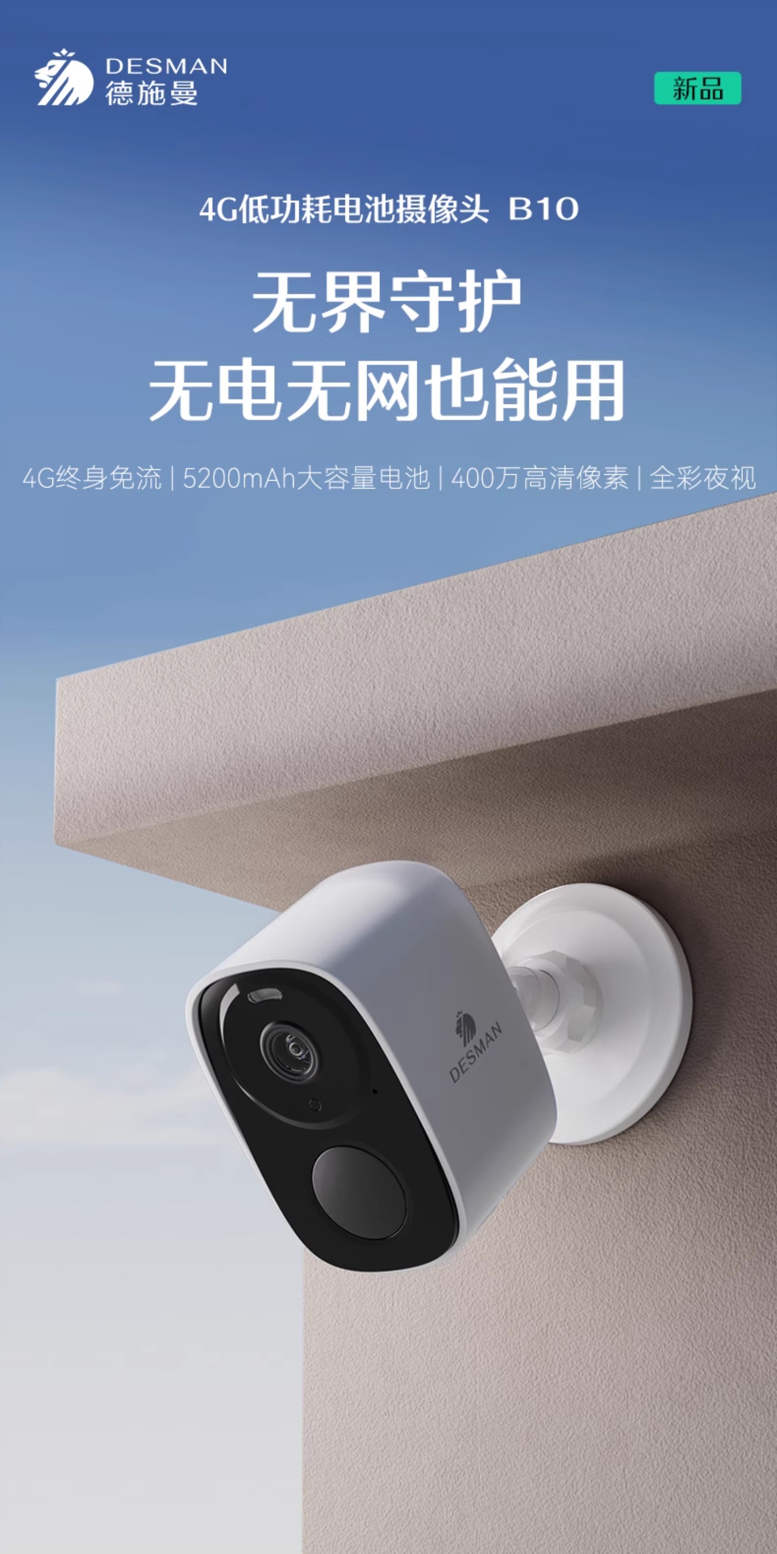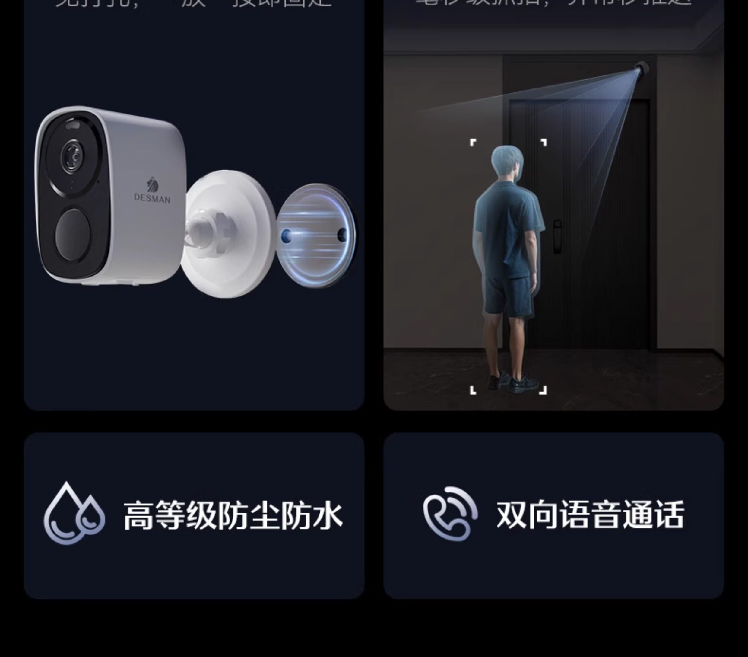 Deschmann Camera Smart Home Monitoring B10 Door Camera, No Plug-In, Wireless, Lifetime Data-Free