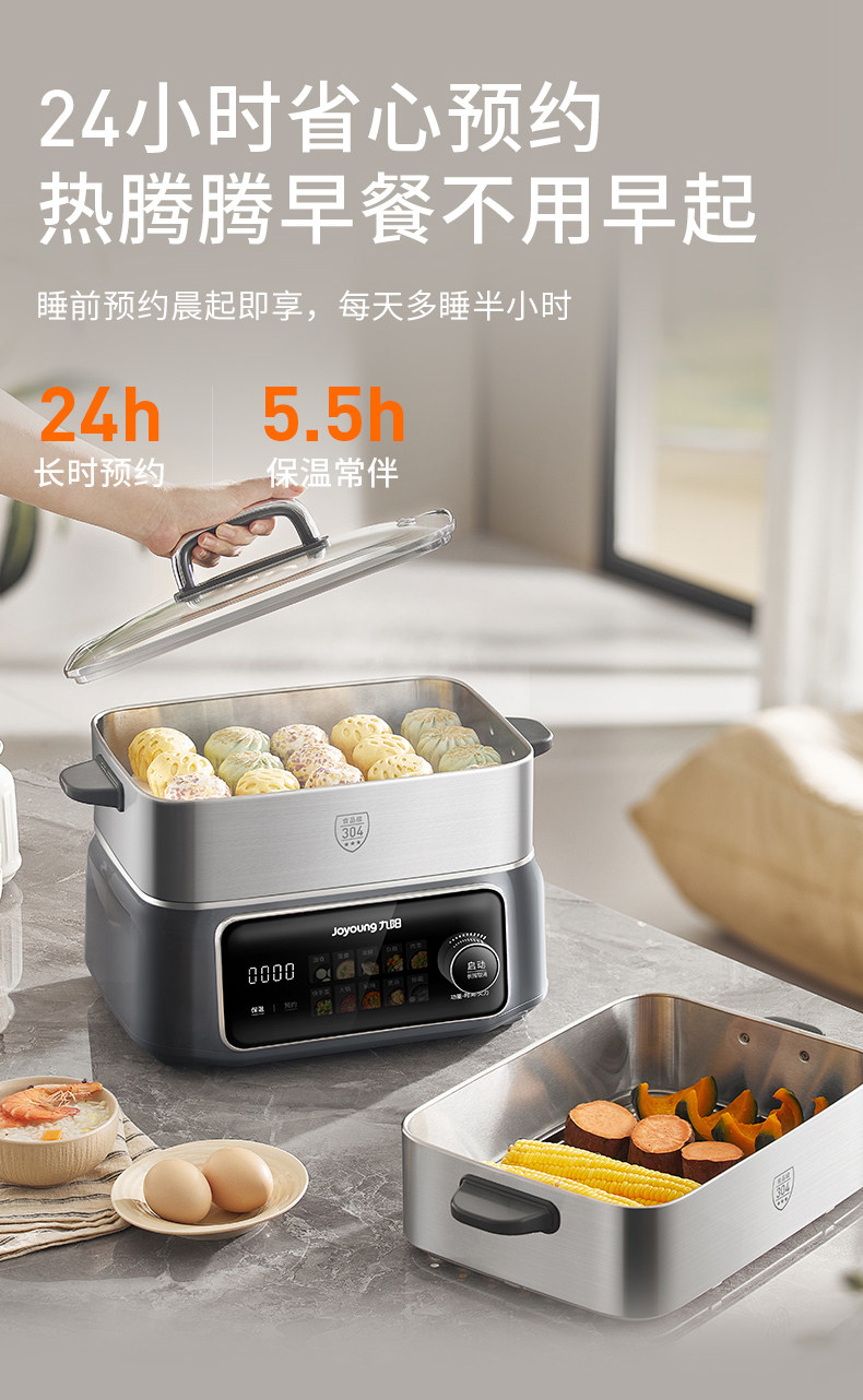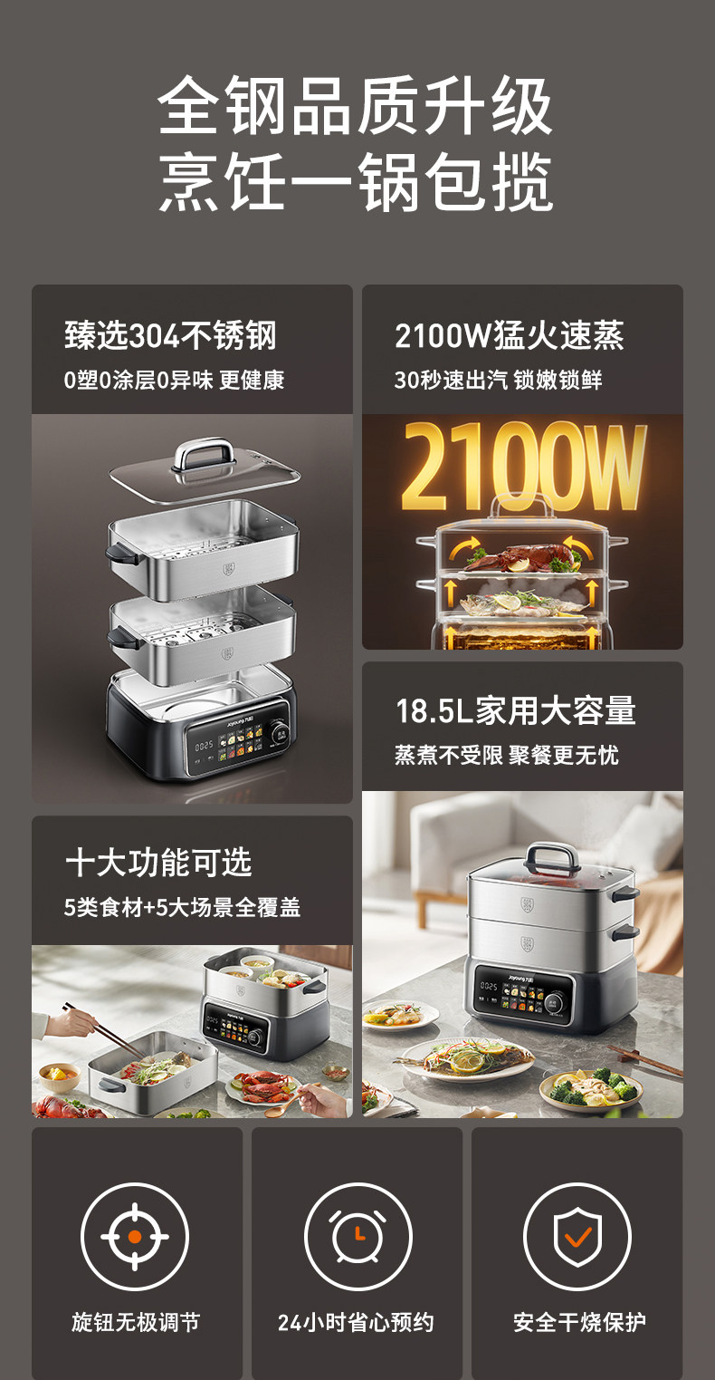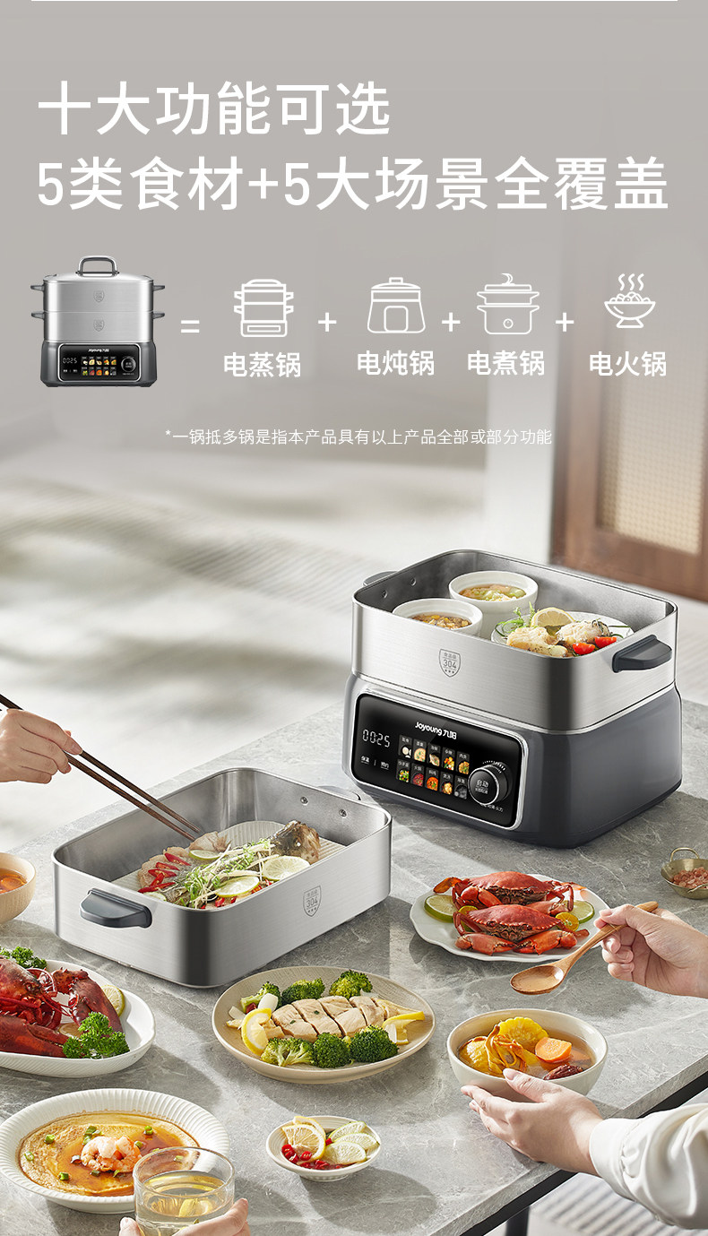 Joyoung Electric Hot Pot Multifunctional Household Three-Layer Large-Capacity Stainless Steel New Electric Steamer for Steaming, Boiling, and Stewing All-In-One Pot