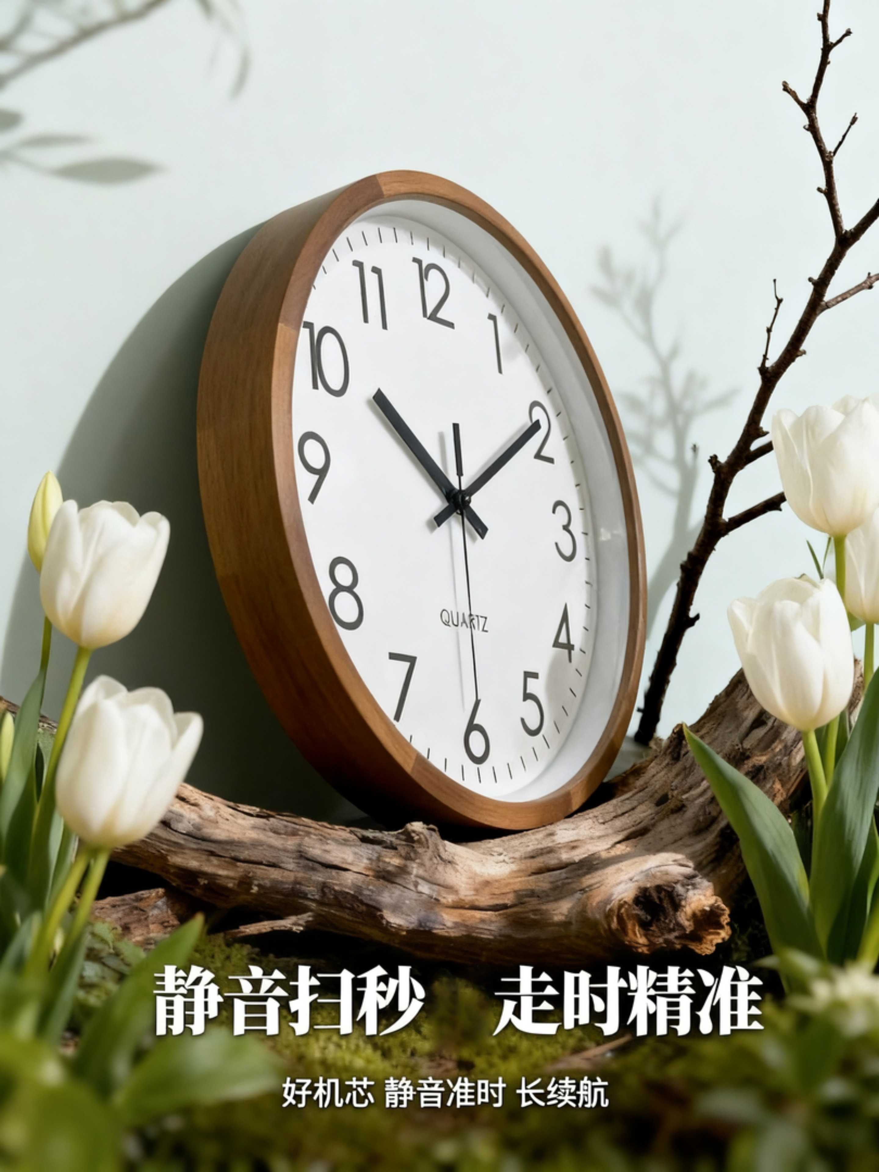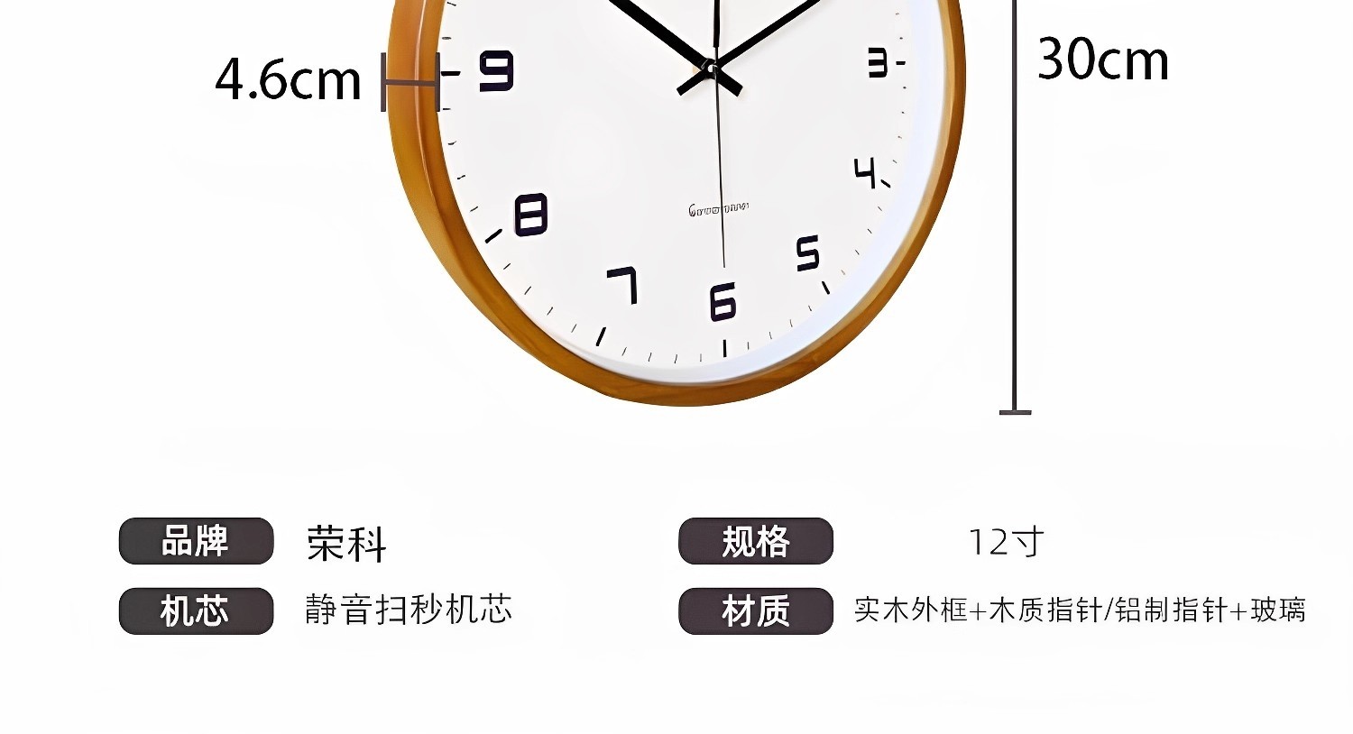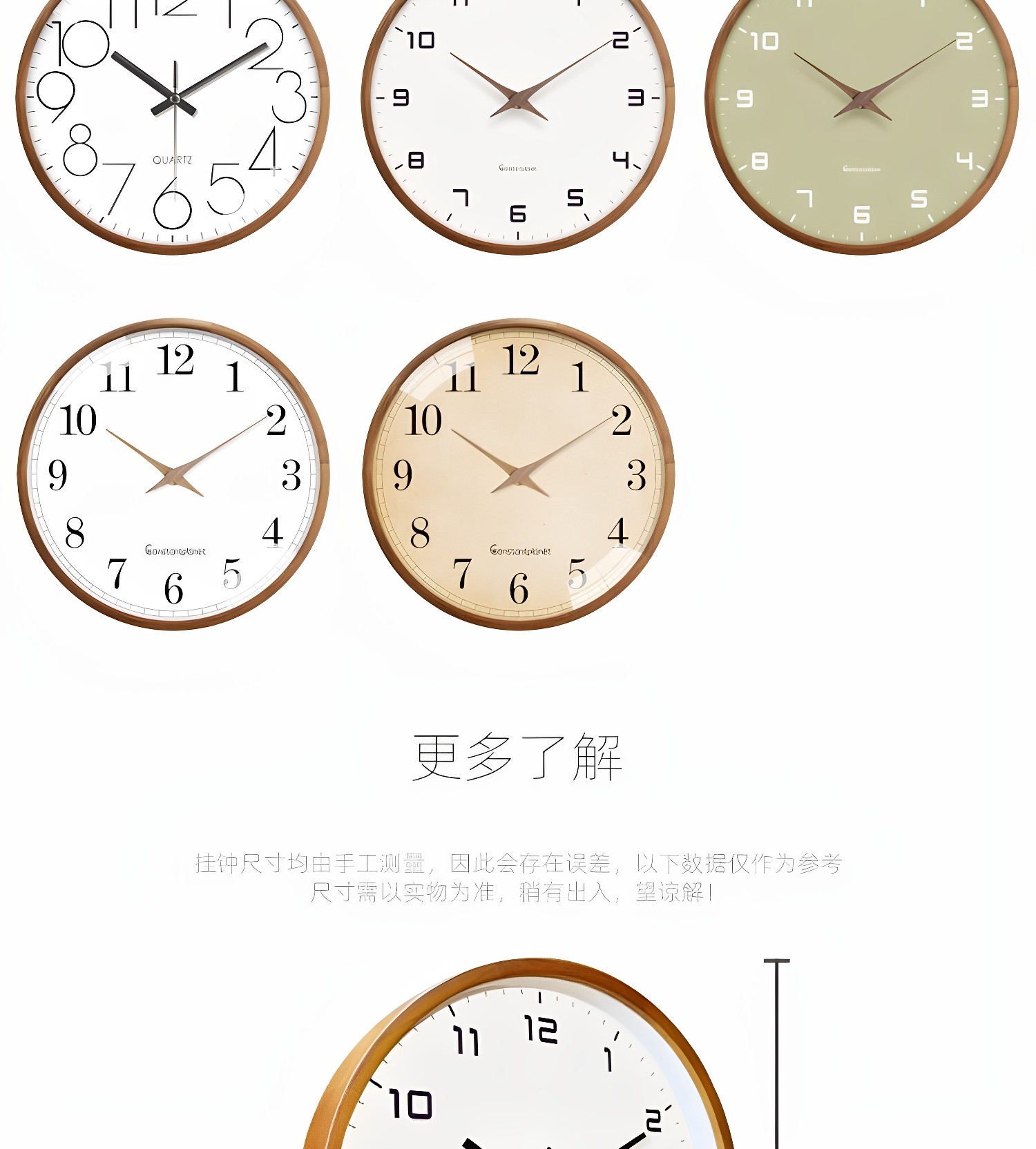 European-Style Solid Wood Modern Minimalist Retro Silent Clock Wall Clock Living Room Clock Chinese-Style Wooden Creative American-Style Wall Clock