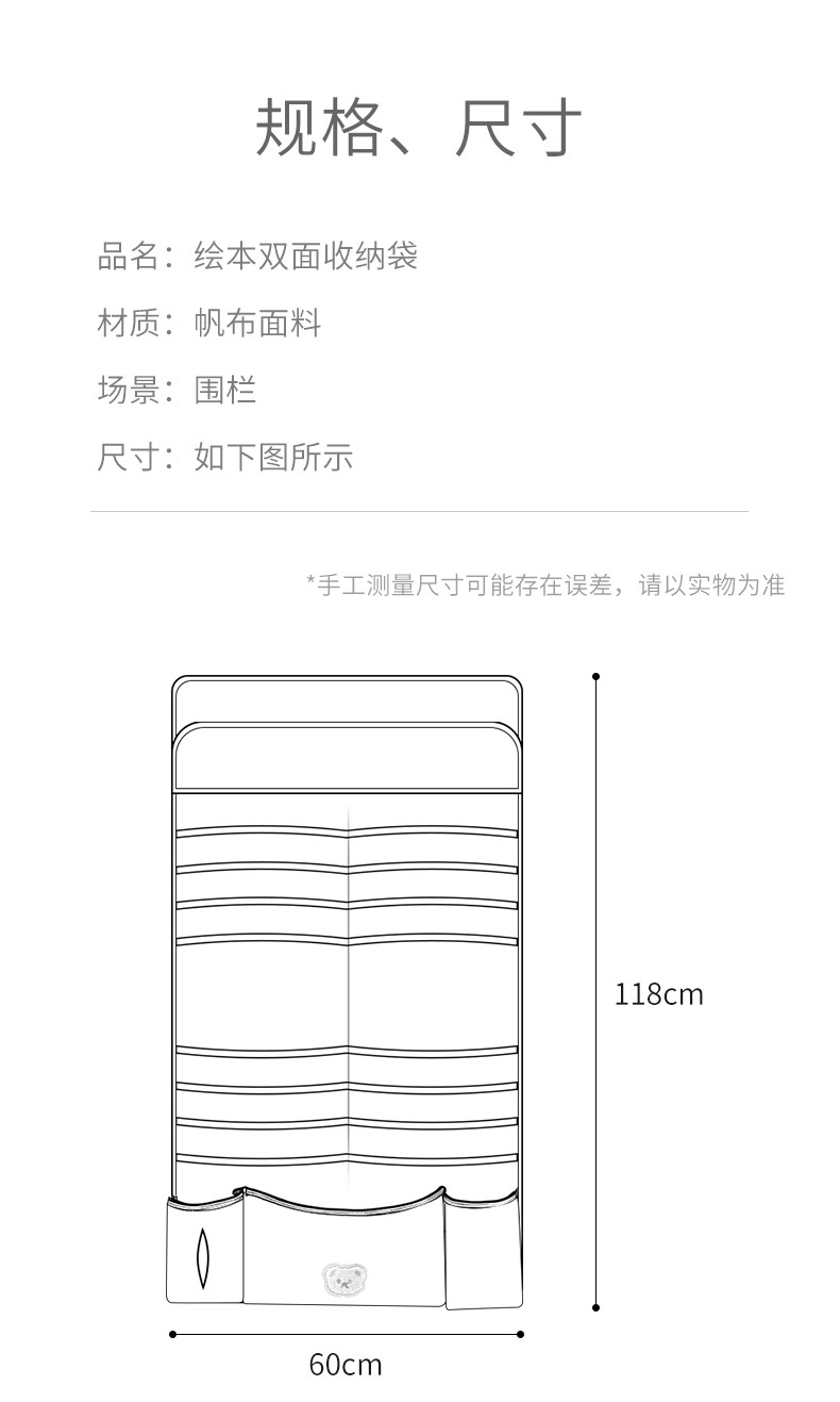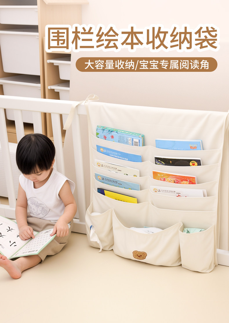 Fence Storage Basket Picture Book Storage Bag Crib Baby Crawling Mat Toy Book Slipper Double-Sided Hanging Bag Hanging Basket