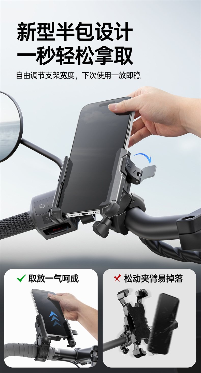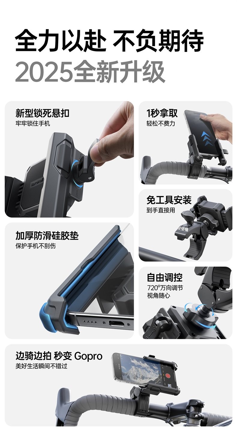 Lami Cool Electric Bicycle Phone Holder for Electric Scooters and Motorcycles, Anti-Shock and Anti-Vibration, for Delivery Riders, 2025 New Model