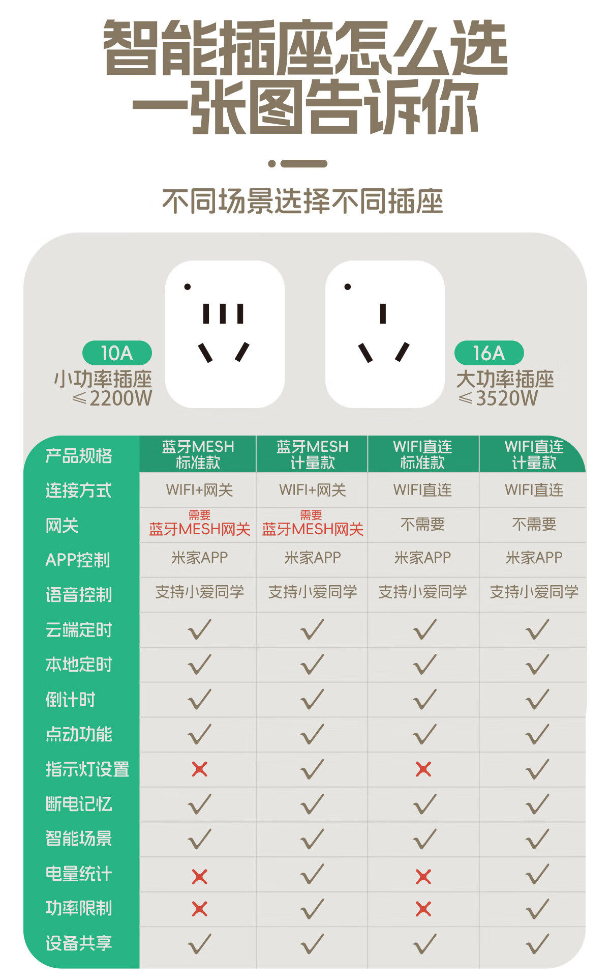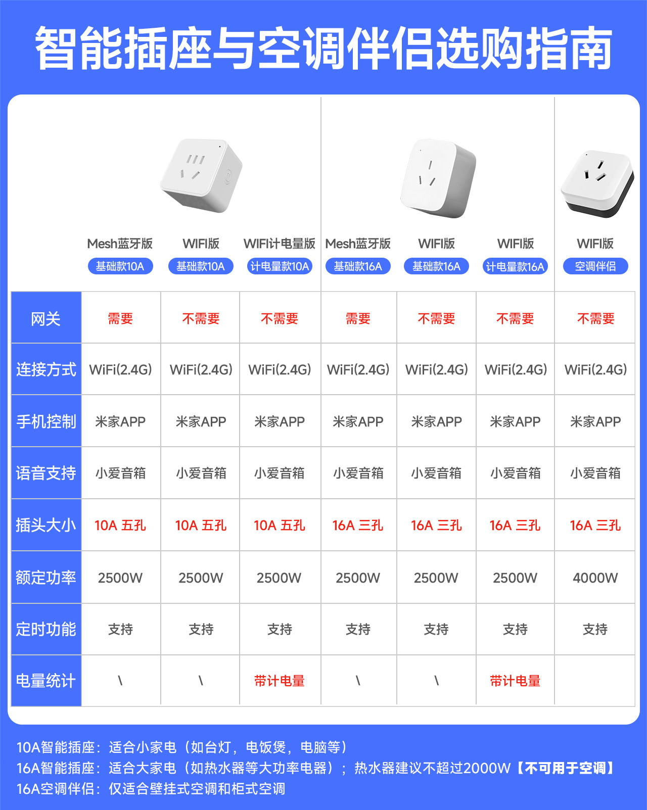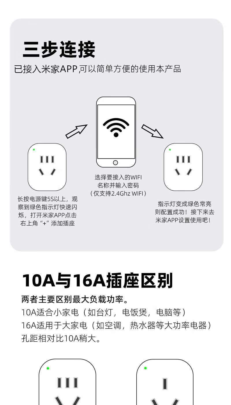 | Color Classification | "10A Bluetooth Model" Supports Mijia App Smart Socket (Needs to Match Bluetooth Gateway),"10A Bluetooth Metering Model" Supports Mijia App Smart Socket (Needs to Match Bluetooth Gateway),"10A-Wifi Model" Supports Mijia App Smart Socket (Smart Linkage),"10A-Wifi Metering Model" Supports Mijia App Smart Socket (Smart Linkage),[16A Air Conditioner Companion] Wifi Version - Supports Mijia App Control (Air Conditioner Dedicated Socket),"16A Bluetooth Metering Version" Supports Mijia App Smart Socket (Needs to Match Bluetooth Gateway),"16A-Wifi Metering Version" Supports Mijia App Smart Socket (Smart Linkage),Country,Home,Special,Benefit |