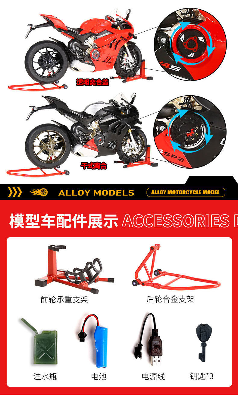 Ducati Motorcycle Model Alloy Simulation Collectible Motorcycle Model Figurine Collectible Ornament Boys' Birthday Gift