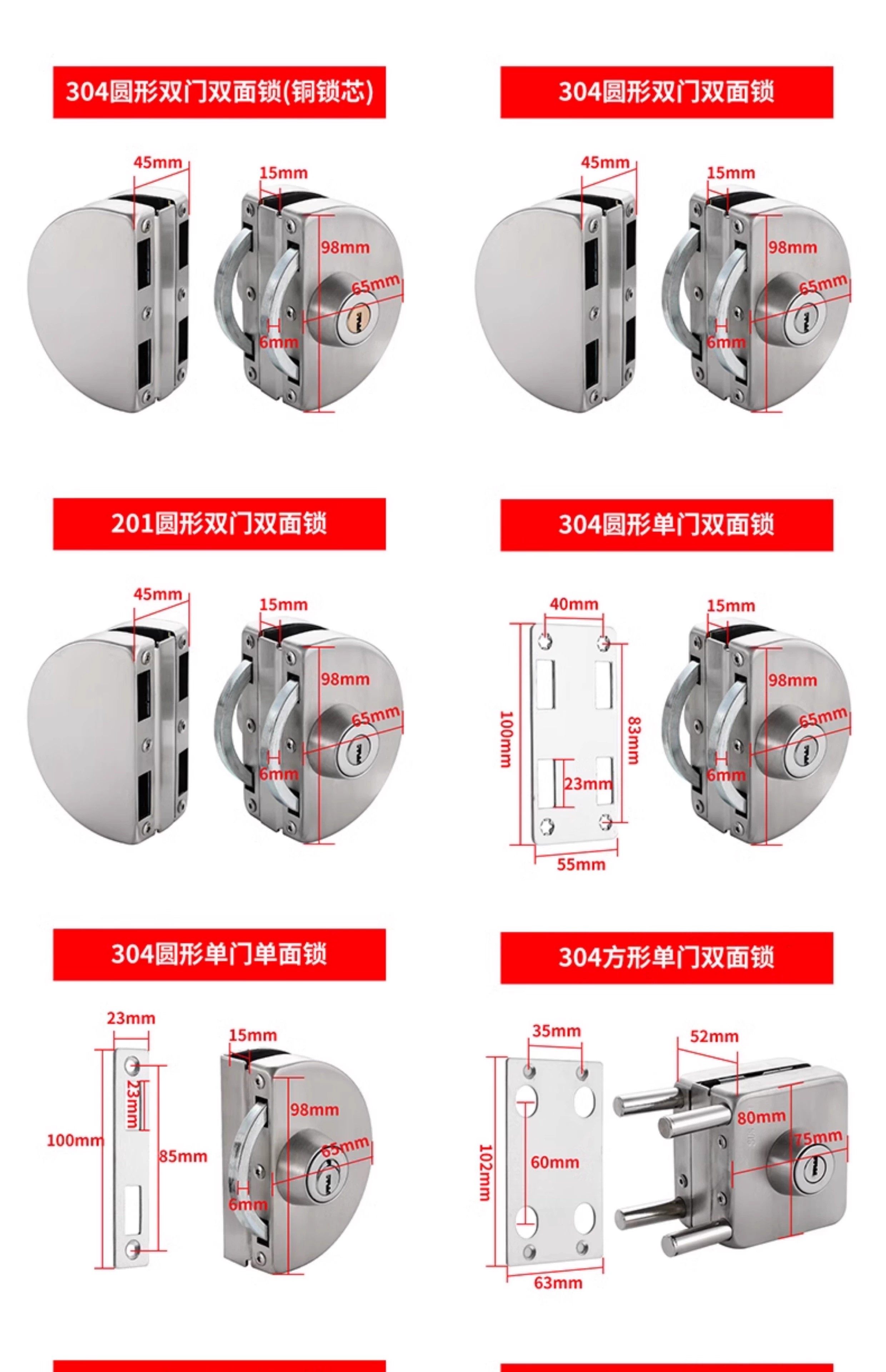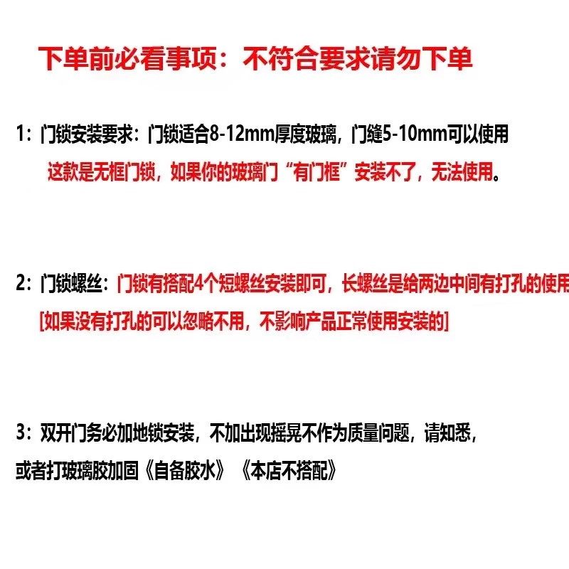 | Color Classification | Pre-Purchase Instructions: Please Look at the Picture before Placing an Order "Do Not Take This Photo",Today’S Special Offer [Free Transparent Glass Glue When Placing an Order],(Recommended by the Store Manager) 801 Double Door Double Door Lock, Outer Key and Inner Twist [304 Copper Lock Core and Three Keys],【5 Keys】Copper Core 801 Double-Sided Lock - Exterior Key, Interior Knob,(Today’S Special Offer) 801 Double Door Double-Sided Lock, Outer Key and Inner Twist [201 Material],Type 801 Double Door Double-Sided Lock, Outer Key and Inner Twist [304 Material],【5 Keys】304 Stainless Steel 801 Double-Sided Lock - Exterior Key, Interior Knob,Matt Black 801 Double Door Double-Sided Lock, Outer Key and Inner Twist [304 Material],Titanium 801 Double Door Double-Sided Lock, Outer Key and Inner Twist [304 Material],Rose Gold 801 Double Door Double-Sided Lock, Outer Key and Inner Twist [304 Material],Black Titanium 801 Double Door Double-Sided Lock, Outer Key and Inner Twist [304 Material],803 Double Door Single-Sided Lock Without Outer Key [304 Material],804 Single Door Single Side Lock Without Outer Key [304 Material],802 Single Door Double-Sided Lock, Outer Key and Inner Twist [304 Material],601 Type Double Door Double-Sided Lock, External Key Internal Twist [304 Stainless Steel]. Please Use with a Floor Lock,603 Square Double Door Single-Sided Lock with No Outer Key and No Inner Key [304 Material] Please Add a Floor Lock for Use,602 Square Single Door Double-Sided Lock with Outer Key and Inner Twist [304 Material],604 Square Single Door Single-Sided Lock with No Outer Key [304 Material],701 Double-Sided Double-Door Floor Lock with Three Keys [304 Material],702 Single Door Double-Sided Latch Lock, Outer Key and Inner Twist [304 Material],705 Double Door Single-Sided Latch Lock Single Knob [304 Material],706 Single-Sided Single-Sided Base Single Knob [304 Material],706 Small Square Single-Sided Single-Sided Door Lock Single Knob [304 Material],Set 1: Double-Sided Lock + Single Knob Floor Lock [304 Material],Set 2: Double-Sided Lock + Single Knob Floor Lock [304 Material],Set 3: Double-Sided Lock + Knob Latch [304 Material],Set 4: Double-Sided Lock + Knob Latch [304 Material],704 Single Door One-Way Key Floor Lock [304 Material],703 Double Door One-Way Key Floor Lock [304 Material],Password Model 801 Double Door Double-Sided Lock, External Password and Internal Twist [304 Material],Password Model 802 Single Door Double-Sided Lock, External Password and Internal Twist [304 Material],Password Model 803 Double Door Single-Sided Lock, No External Password Inside [304 Material],Password Model 804 Single Door Single Side Lock, No External Password Inside [304 Material],Combination Lock 601 Square Double Door Double-Sided Lock, External Combination Lock and Internal Twist [304 Material] Please Add Floor Lock for Use,Password Model 602 Square Single Door Double-Sided Lock, External Password and Internal Twist [304 Material],Combination Lock 603 Square Double Door Single-Sided Lock with No External Password and No Internal Password [304 Material] Please Add a Floor Lock for Use,Combination Lock 604 Square Single Door Single Side Lock with No External Password and No Internal [304 Material],Password Model 703 Double Door One-Way Floor Lock [304 Material],Password Model 704 Single Door One-Way Floor Lock [304 Material] |