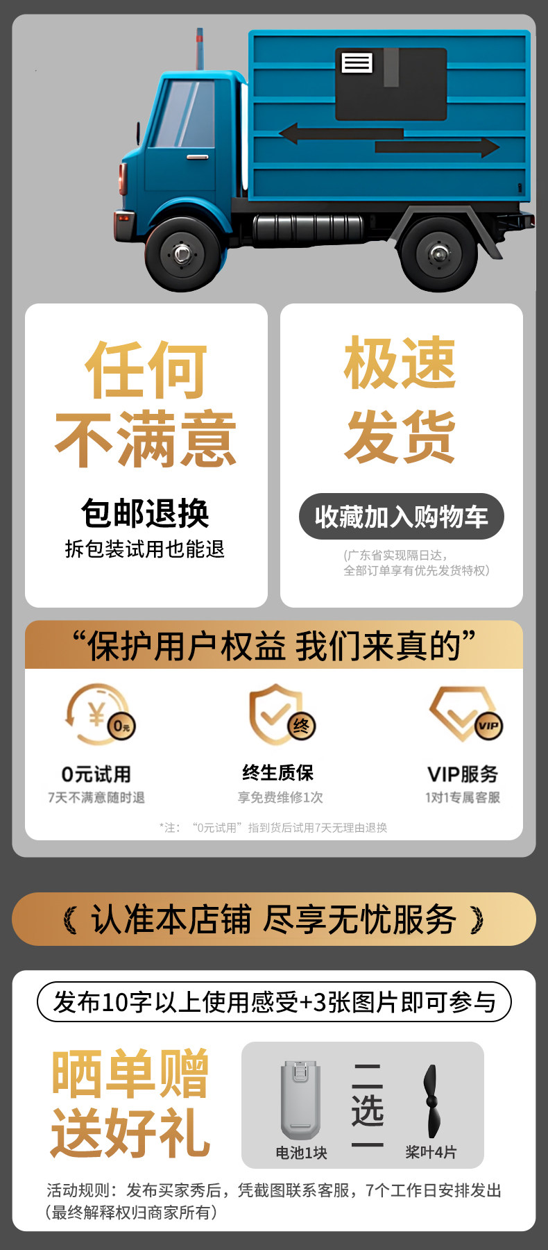 | Package Type | Single Battery Version[Lifetime Warranty + Wear and Tear Parts + 1-to-1 Teaching],Dual Power Version[Lifetime Warranty + Wear and Tear Parts + 1-to-1 Teaching],Three Electric Version[Lifetime Warranty + Wear and Tear Parts + 1-to-1 Teaching],Four-Electric Version[Lifetime Warranty + Wear and Tear Parts + 1-to-1 Teaching],Five Electric Version[Lifetime Warranty + Wear and Tear Parts + 1-to-1 Teaching] |