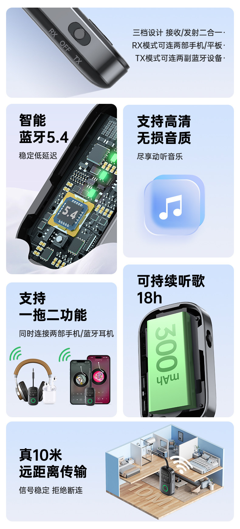 | Color Classification | [Bluetooth 5.4]Receiver/Transmitter 2 in 1 |