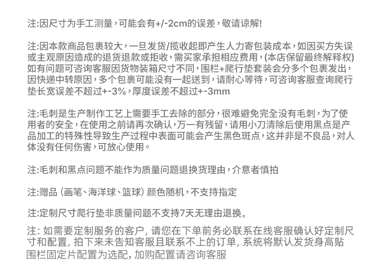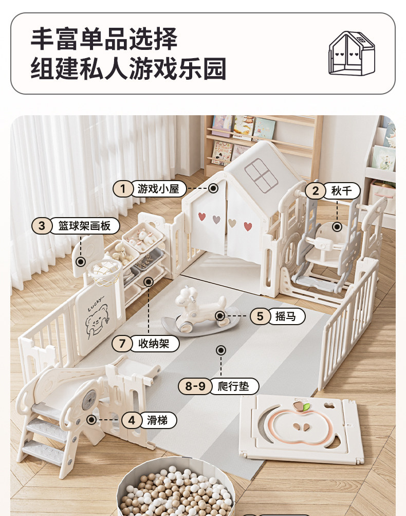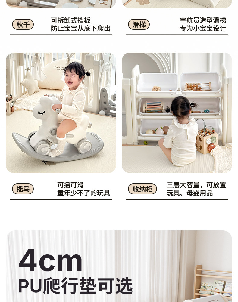 | Color Classification | 1.5*1.8|[Enclosure],1.5*1.8|[Fence + Storage Cabinet],1.5*1.8|[Fence + Swing + Slide],1.5*1.8|[Fence + Swing + Slide + Rocking Horse],1.5*1.8|[Fence + Swing + Slide + Rocking Horse + Storage Cabinet],1.5*1.8|[Fence + Swing + Slide + Rocking Horse] + 2Cmxpe Mat,1.5*1.8|[Fence + Slide + Storage Cabinet] + 2Cmxpe Mat,1.5*1.8|[Fence + Swing + Storage Cabinet] + 2Cmxpe Mat,1.5*1.8|[Fence + Cabin + Slide] + 2Cmxpe Mat,1.5*1.8|[Fence + Cabin + Storage Cabinet] + 2Cmxpe Mat,1.5*1.8|[Fence + Cabin + Swing + Storage Cabinet] + 2Cmxpe Mat,1.5*1.8|[Fence + Cabin + Swing + Rocking Horse + Storage Cabinet] + 2Cmxpe Mat,1.5*1.8|[Fence + Swing + Slide + Rocking Horse + Storage Cabinet] + 4cm Pu Pad,1.5*1.8|[Fence + Cabin + Storage Cabinet] + 4cm Pu Pad,1.5*1.8|[Fence + Cabin + Swing + Rocking Horse + Storage Cabinet] + 4cm Pu Pad,1.5*1.8|[Fence + Cabin + Swing + Slide + Storage Cabinet] + 4cm Pu Pad,1.8*2.0|[Enclosure],1.8*2.0|[Fence + Storage Cabinet],1.8*2.0|[Fence + Swing + Rocking Horse],1.8*2.0|[Fence + Swing + Slide],1.8*2.0|[Fence + Swing + Slide + Rocking Horse],1.8*2.0|[Fence + Swing + Slide] + 2Cmxpe Mat,1.8*2.0|[Fence + Swing + Rocking Horse] + 2Cmxpe Mat,1.8*2.0|[Fence + Swing + Slide + Rocking Horse] + 2Cmxpe Mat,1.8*2.0|[Fence + Cabin + Swing + Rocking Horse] + 2Cmxpe Mat,1.8*2.0|[Fence + Cabin + Swing + Slide] + 2Cmxpe Mat,1.8*2.0|[Fence + Cabin + Swing + Storage Cabinet] + 2Cmxpe Mat,1.8*2.0|[Fence + Cabin + Slide + Storage Cabinet] + 2Cmxpe Mat,1.8*2.0|[Fence + Swing + Slide + Rocking Horse + Storage Cabinet] + 2Cmxpe Mat,1.8*2.0|[Fence + Slide + Rocking Horse + Ocean Ball Pool + Storage Cabinet] + 2Cmxpe Mat,1.8*2.0|[Fence + Cabin + Swing + Slide + Rocking Horse + Ocean Ball Pool + Storage Cabinet] + 2Cmxpe Mat,1.8*2.0|[Fence + Cabin + Swing + Slide] + 4cm Pu Pad,1.8*2.0|[Fence + Cabin + Swing + Storage Cabinet] + 4cm Pu Pad,1.8*2.0|[Fence + Cabin + Slide + Rocking Horse + Storage Cabinet] + 4cm Pu Pad,1.8*2.0|[Fence + Cabin + Swing + Slide + Rocking Horse + Storage Cabinet] + 4cm Pu Pad,1.8*2.0|[Fence + Cabin + Swing + Slide + Rocking Horse + Ocean Ball Pool] + 4cm Pu Mat,1.8*2.2|[Fence + Cabin + Swing + Slide + Rocking Horse + Ocean Ball Pool + Storage Cabinet] + 4cm Pu Pad,1.8*2.2|[Fence + Cabin + Swing + Slide + Rocking Horse + Ocean Ball Pool + Storage Cabinet] + 2Cmxpe Mat,1.8*2.2|[Fence + Cabin + Swing + Slide + Rocking Horse + Storage Cabinet] + 4cm Pu Pad,1.56*1.8|[Fence] +4 Fixed Pieces,1.8*2.06|[Fence] +4 Fixed Pieces,Fan Appreciation Deal - $1 Grab Bag |