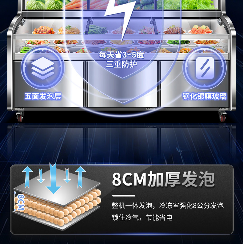 Haopu Lijia Three-Temperature Six-Step Display Cabinet with Refrigeration and Freezing Integrated for Fresh Food Preservation, Suitable for Restaurants, Barbecue, and Spicy Hot Pot Ordering