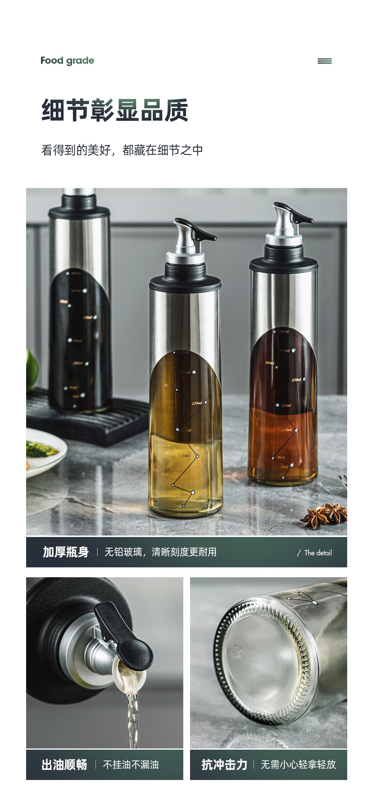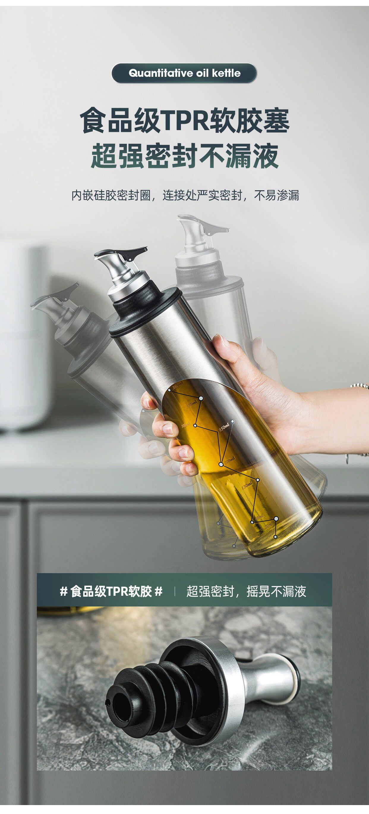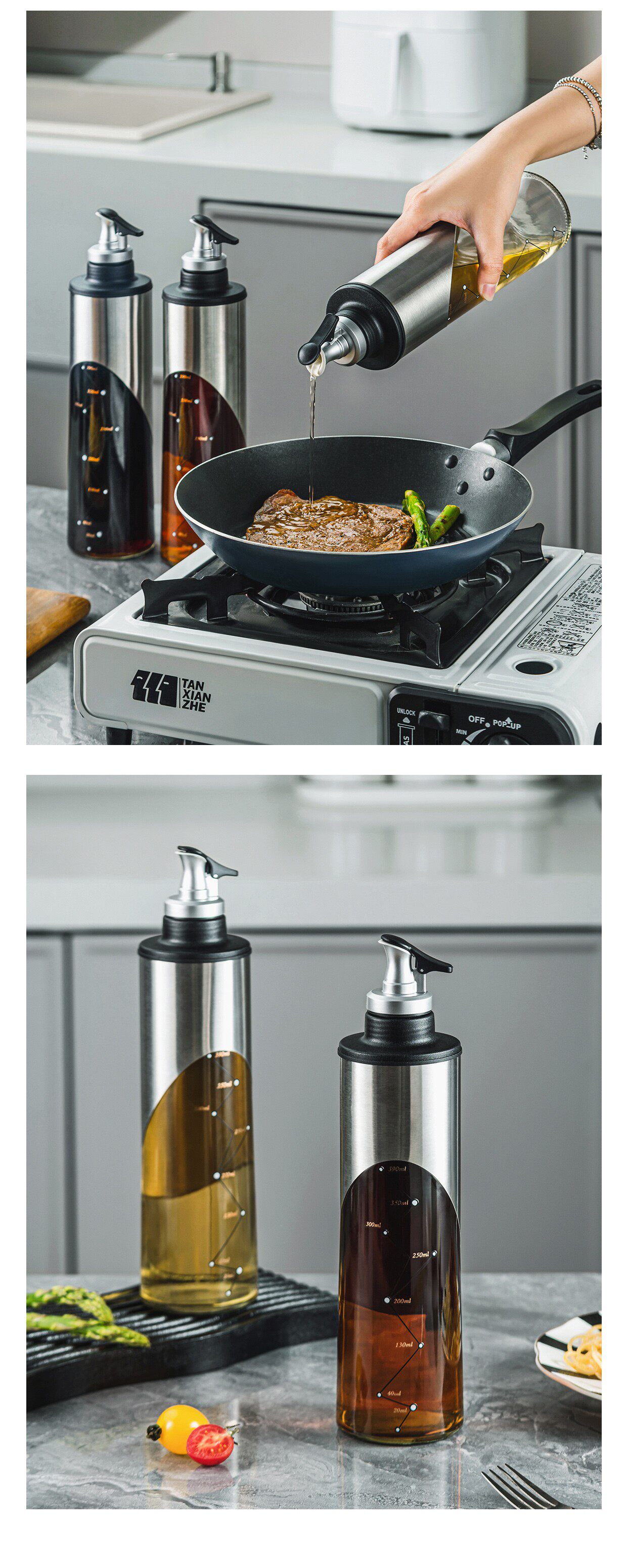 Xiongjiajia Oil Pot Kitchen Household Glass Leak-Proof Oil Container Soy Sauce Vinegar Seasoning Bottle Stainless Steel Container