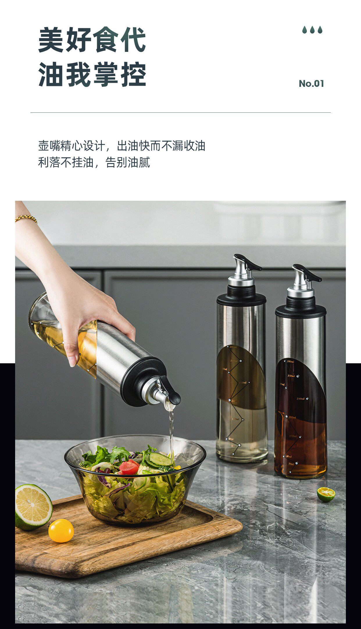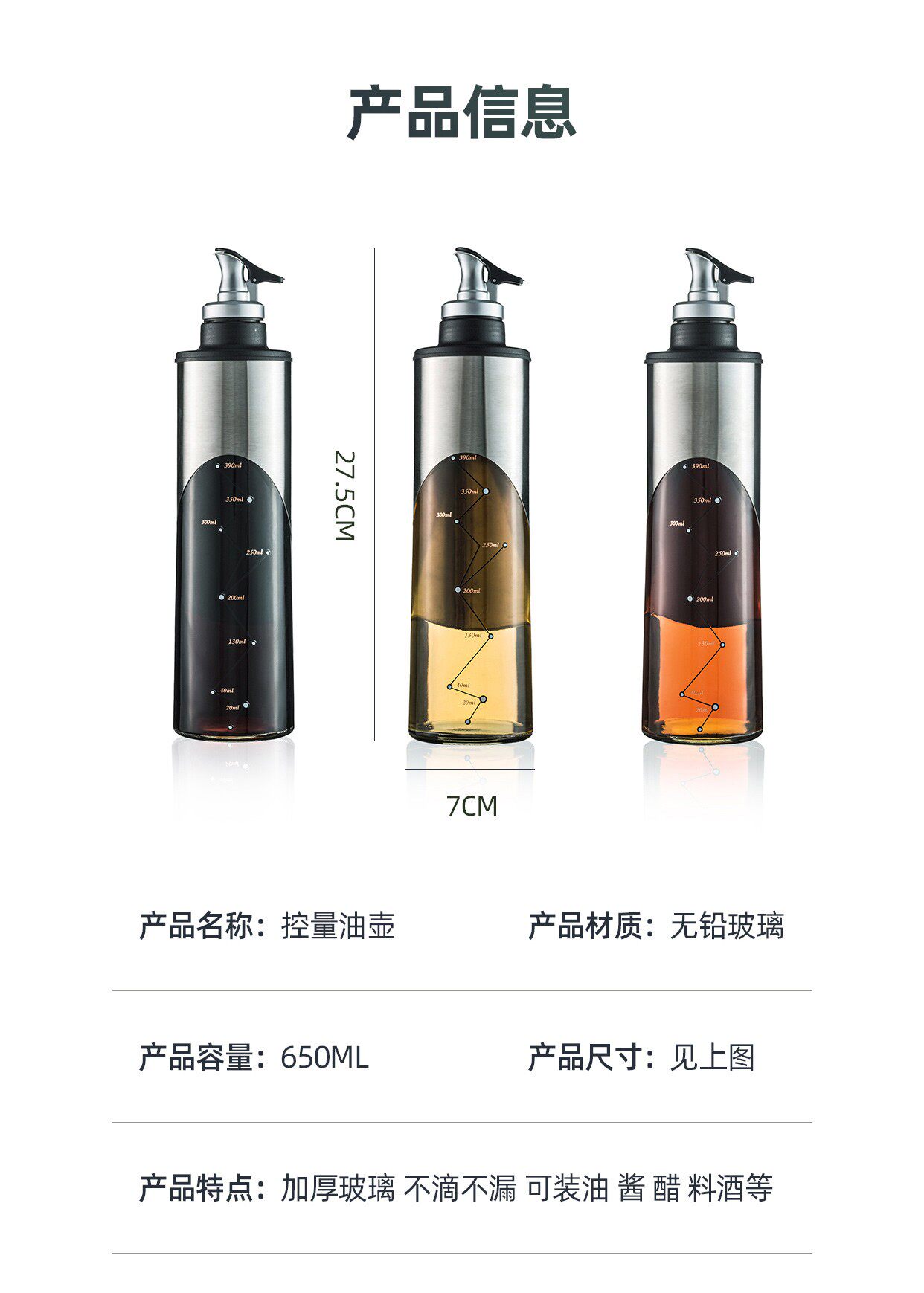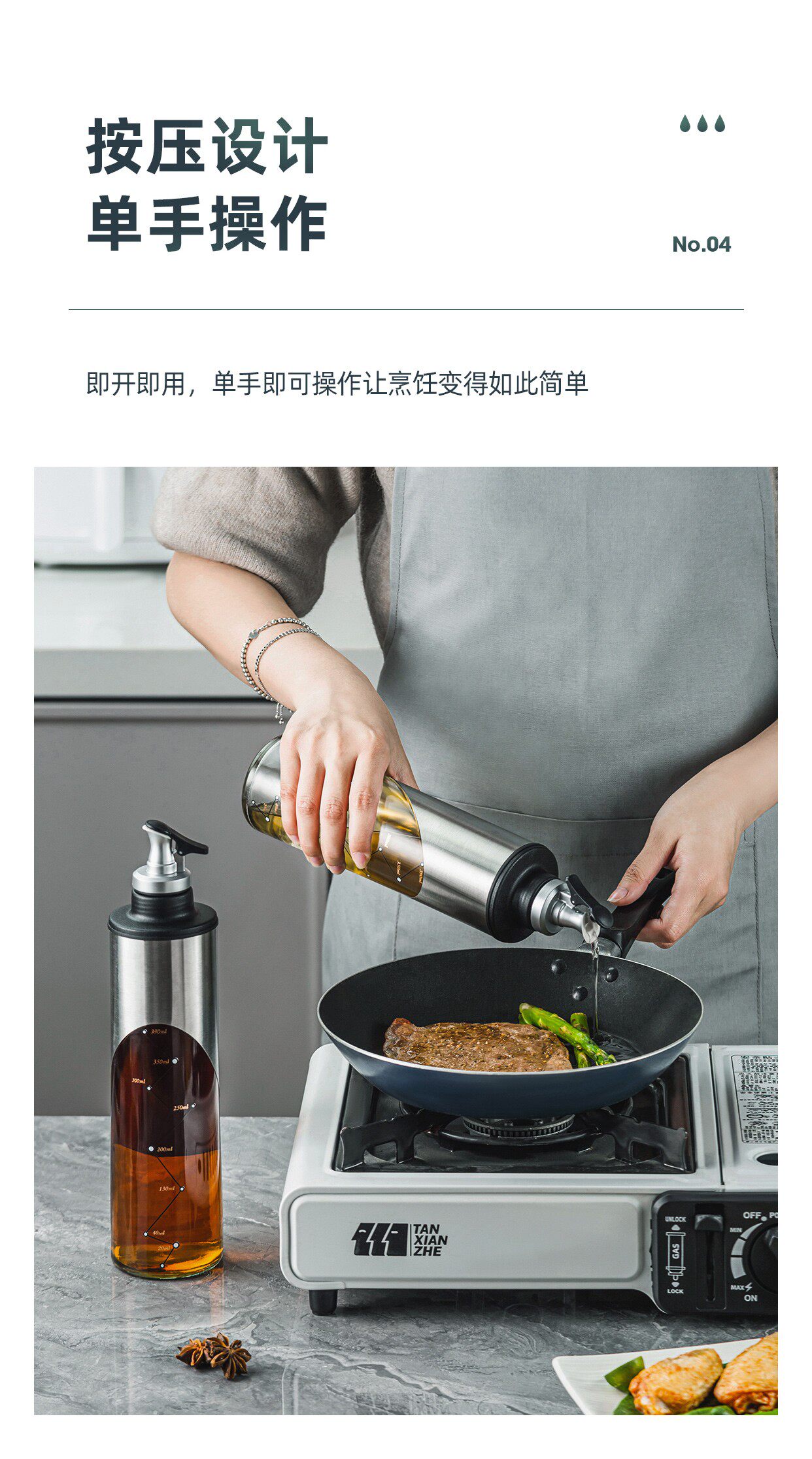 Xiongjiajia Oil Pot Kitchen Household Glass Leak-Proof Oil Container Soy Sauce Vinegar Seasoning Bottle Stainless Steel Container