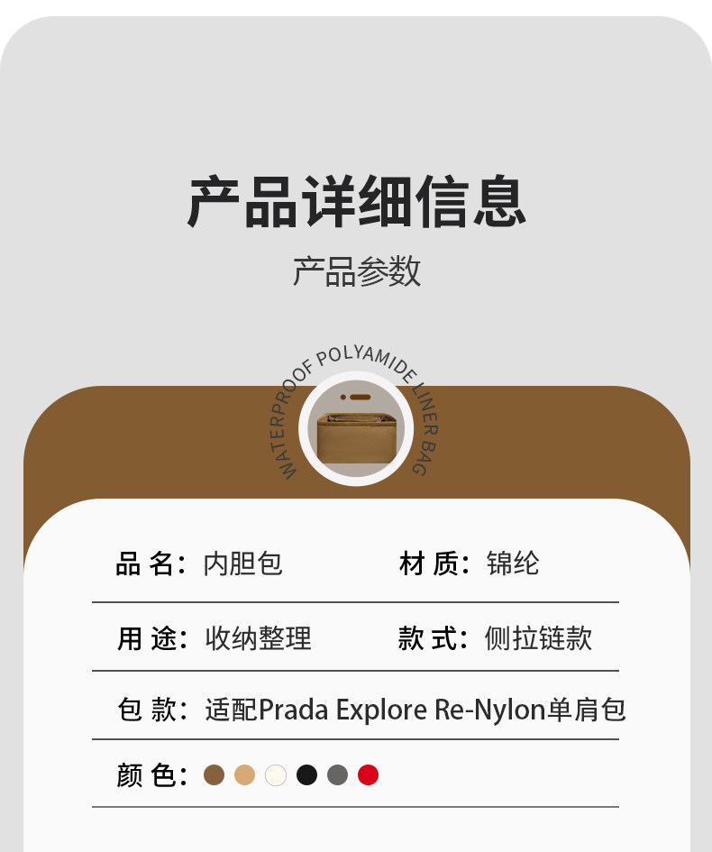 Suitable for Prada Explore Re-Nylon Shoulder Bag Storage, Lightweight Nylon Inner Lining