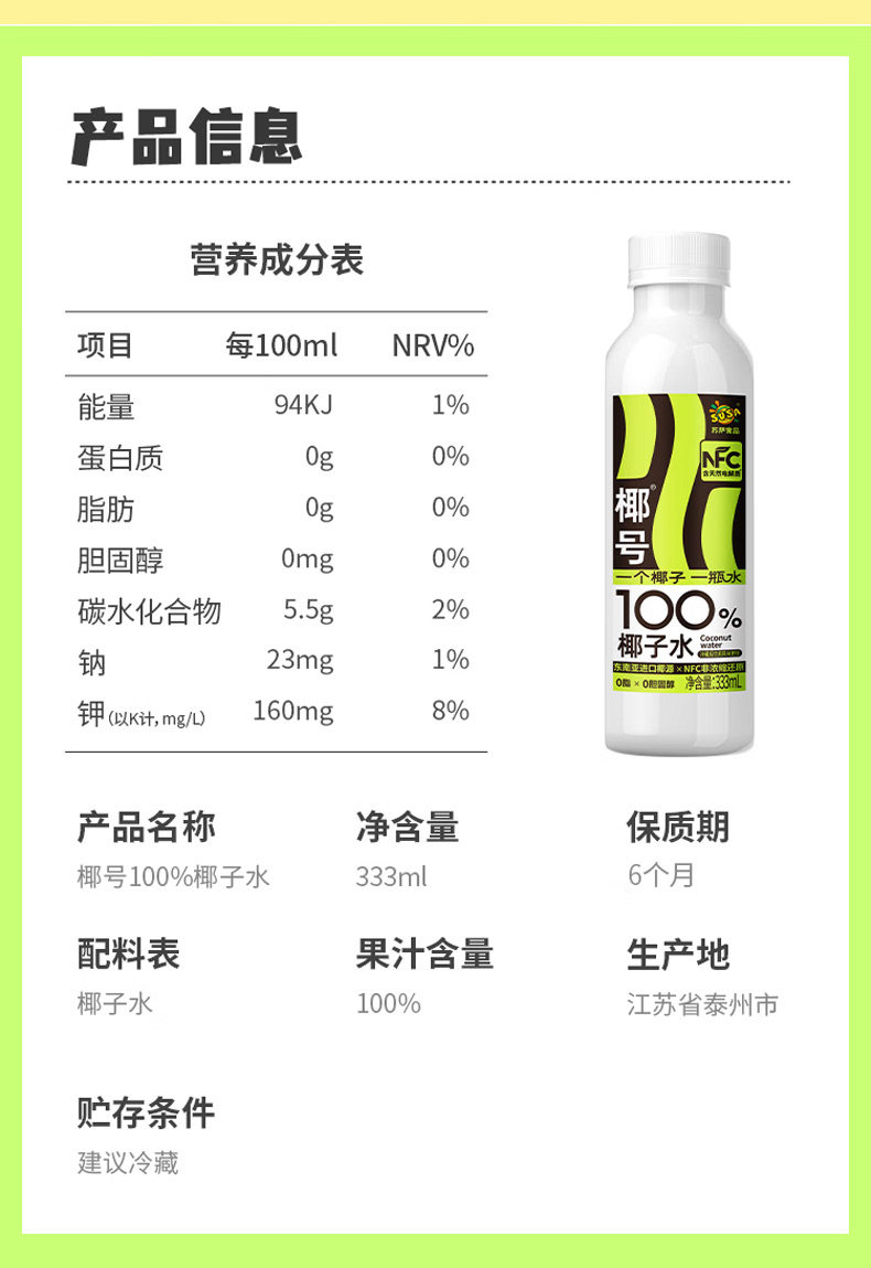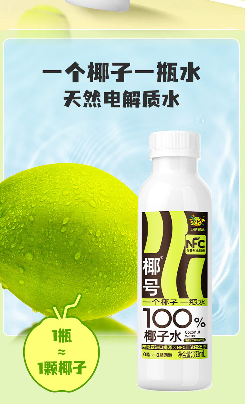 Susa Coconut 100% Coconut Water 333ml*15 Bottles Whole Box Natural Electrolyte Nfc Non-Concentrated Reduced Beverage