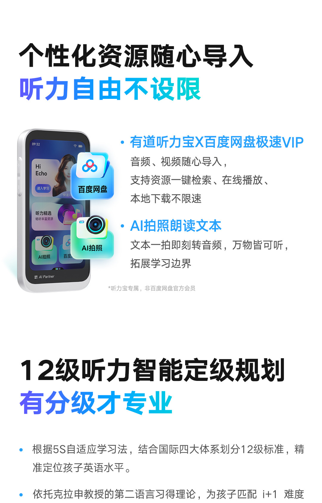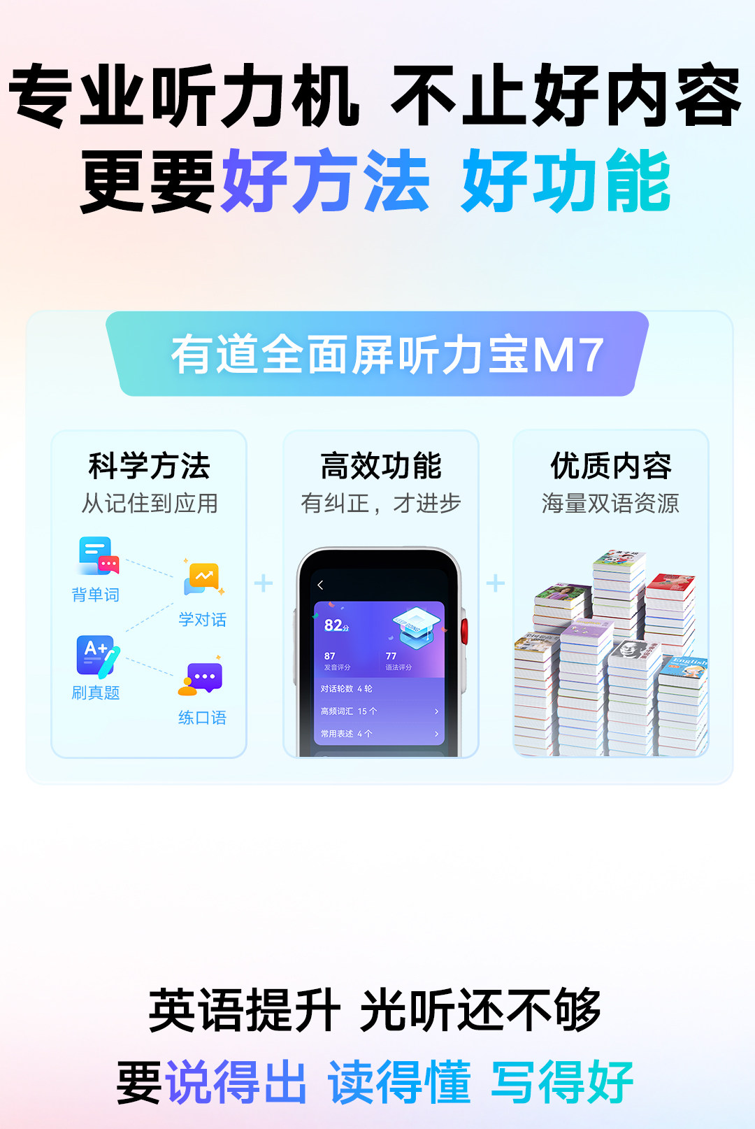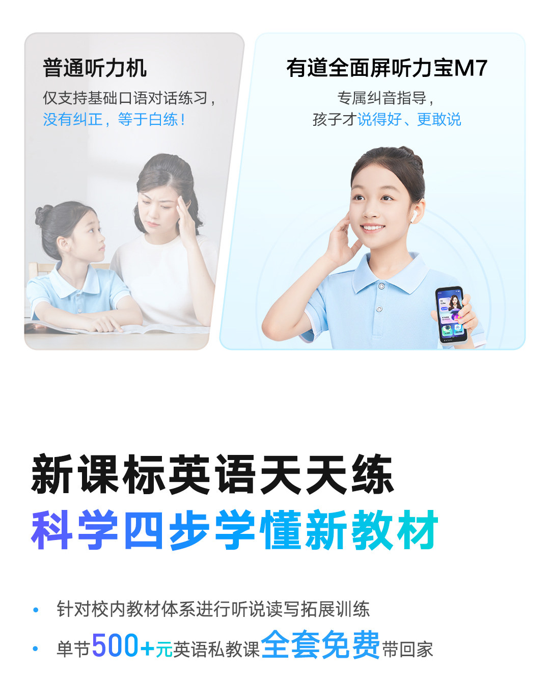 Netease Youdao Full-Screen Listening Device M7 English Repeater Ai English Device Children's Listening Practice Tool Portable English Listening and Speaking Device Listening Player Student-Specific Learning Machine for Primary, Middle, and High School Students