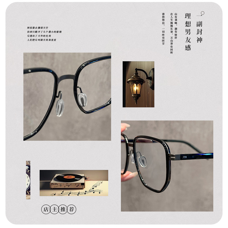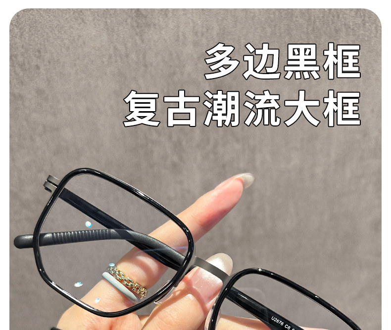 Polygonal Men's Large-Frame Glasses for Nearsightedness, Customizable Prescription, High-End Feel, Suitable for Large Faces, Cool and Stylish, Black Frame, Blue Light Blocking