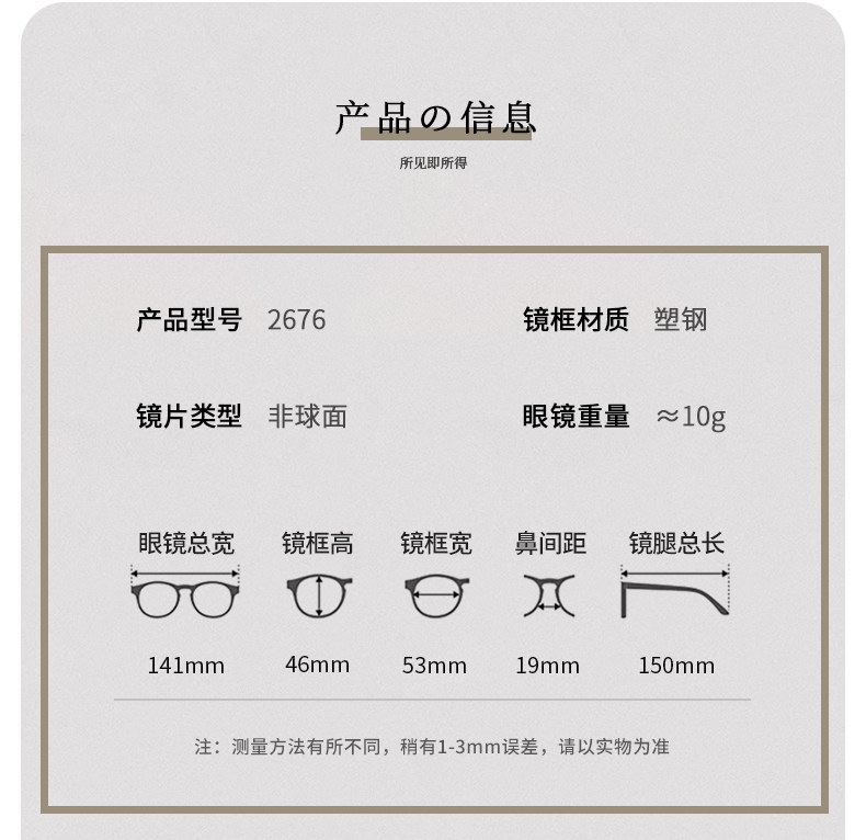 | Lens Refractive Index | Frame + 0 Degree Anti-Blue Light Lenses,Equipped with 1.56 Ultra-Thin [Myopia Lenses] Suitable for 0~300 Degrees,Equipped with 1.61 Thin and Light [Myopia Lenses] Suitable for 0~600 Degrees,Equipped with 1.67 Ultra-Thin [Myopia Lenses] Suitable for 0~800 Degrees,Fits 1.74 to Thin [Myopia Lenses] Suitable for 0~1300 Degrees,Equipped with 1.56 Ultra-Thin [Anti-Blue Light Goggles] Suitable for 0~300 Degrees,Equipped with 1.61 Thin and Light [Anti-Blue Light Goggles] Suitable for 0~600 Degrees,Equipped with 1.67 Ultra-Thin [Anti-Blue Light Goggles] Suitable for 0~800 Degrees,Equipped with 1.74 to Thin [Anti-Blue Light Goggles] Suitable for 0~1300 Degrees,Equipped with 1.56 Ultra-Thin [Anti-Fog and Anti-Blue Light Lenses] Suitable for 0~300 Degrees,Equipped with 1.61 Thin and Light [Anti-Fog and Anti-Blue Light Lenses] Suitable for 0~600 Degrees,Equipped with 1.67 Ultra-Thin [Anti-Fog and Anti-Blue Light Lenses] Suitable for 0~800 Degrees,Equipped with 1.56 Ultra-Thin [Color-Changing Anti-Blue Light Lenses] Suitable for 0~300 Degrees,Equipped with 1.61 Thin and Light [Color-Changing Anti-Blue Light Lenses] Suitable for 0~600 Degrees,Equipped with 1.67 Ultra-Thin [Color-Changing Anti-Blue Light Lenses] Suitable for 0~800 Degrees,Equipped with [Zeiss] 1.56 Aspherical Lenses (Suitable for 0~400 Degrees),Equipped with [under the Zeiss Brand] 1.60 Aspherical Lenses (Suitable for 0~600 Degrees),Equipped with [Zeiss] 1.67 Aspherical Lenses (Suitable for 0~800 Degrees),Equipped with [Zeiss] 1.56 Anti-Blue Light Lenses (Suitable for 0~400 Degrees),Equipped with [Zeiss] 1.60 Anti-Blue Light Lenses (Suitable for 0~600 Degrees),Equipped with [Zeiss] 1.67 Anti-Blue Light Lenses (Suitable for 0~800 Degrees) |