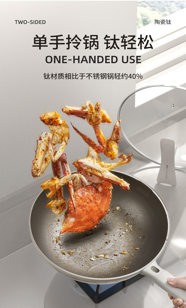 Titanium Pot, Non-Coated Frying Pan, Household Non-Stick Pan, Flat-Bottomed Frying Pan, Cookware for Gas Stoves and Induction Cookers, Special H