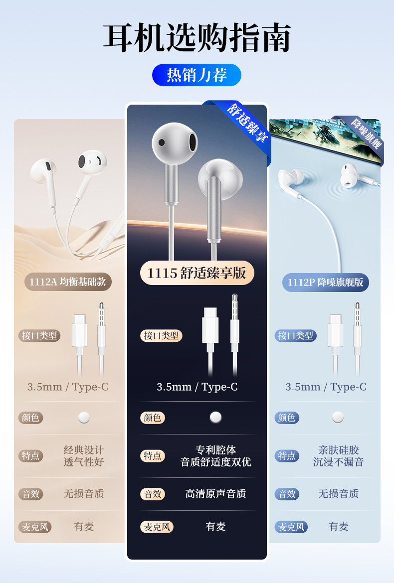 | Color Classification | [3.5mm Round Hole Standard Cable-1.2M] Patented Cavity/Ultra-Light Noise Reduction/Applicable to Apple 16-15 Series/Huawei Honor/Android Phones/ iPad / Tablets,[3.5mm Round Hole Extension Cable-2M] Patented Cavity/Ultra-Light Noise Reduction/Applicable to Apple 16-15 Series/Huawei Honor/Android Phones/ iPad /Tablet,【Type-C Flat Port Standard Cable - 1.2M】Patented Acoustic Chamber / Ultra-Lightweight Noise Cancellation / Compatible with Apple 16 & 15 Series / Huawei Honor / Android Phones / iPad / Tablets,【Type-C Flat Port Extended Cable - 2M】Patented Acoustic Chamber / Ultra-Lightweight Noise Cancellation / Compatible with Apple 16-15 Series / Huawei Honor / Android Phones / iPad / Tablets,[3.5mm Round Hole] Semi-In-Ear Classic Breathable/Suitable for Apple 16-15 Series/Huawei Honor/Android Phones/ iPad / Tablets,【Type-C Flat Port】Semi-In-Ear Classic Breathable Earbuds / Compatible with Apple 16-15 Series / Huawei Honor / Android Phones / iPad / Tablets,[3.5mm Round Hole] In-Ear 1112P/Suitable for Mobile Phones/Tablets/Computers and Other Devices,[Type-C Flat Mouth] In-Ear 1112P/Suitable for Mobile Phones/Tablets/Computers and Other Devices |