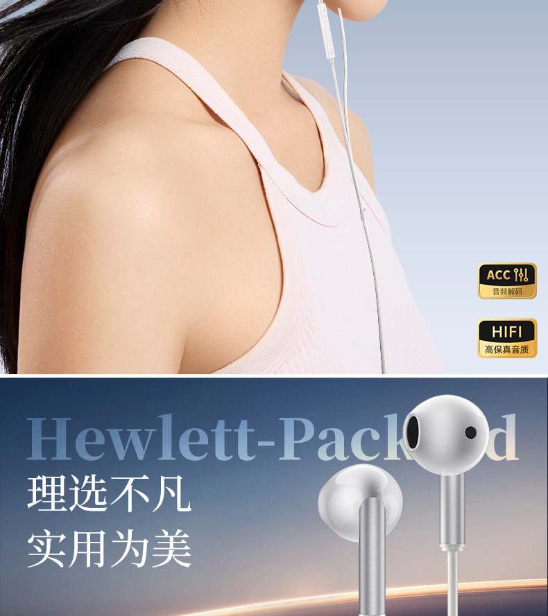 Hp Wired Headphones Semi-In-Ear In-Ear Type-C Computer Karaoke Suitable for Apple, Huawei, Xiaomi, Apple