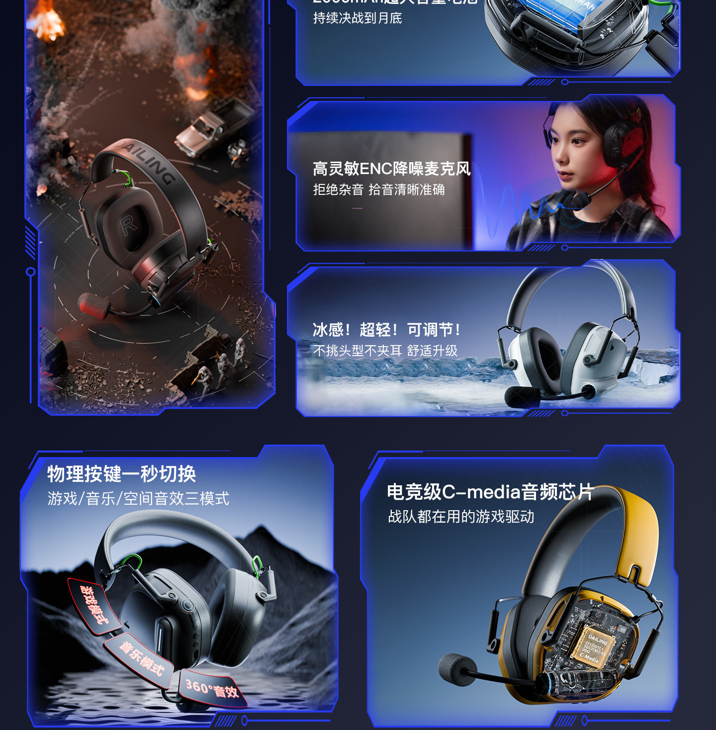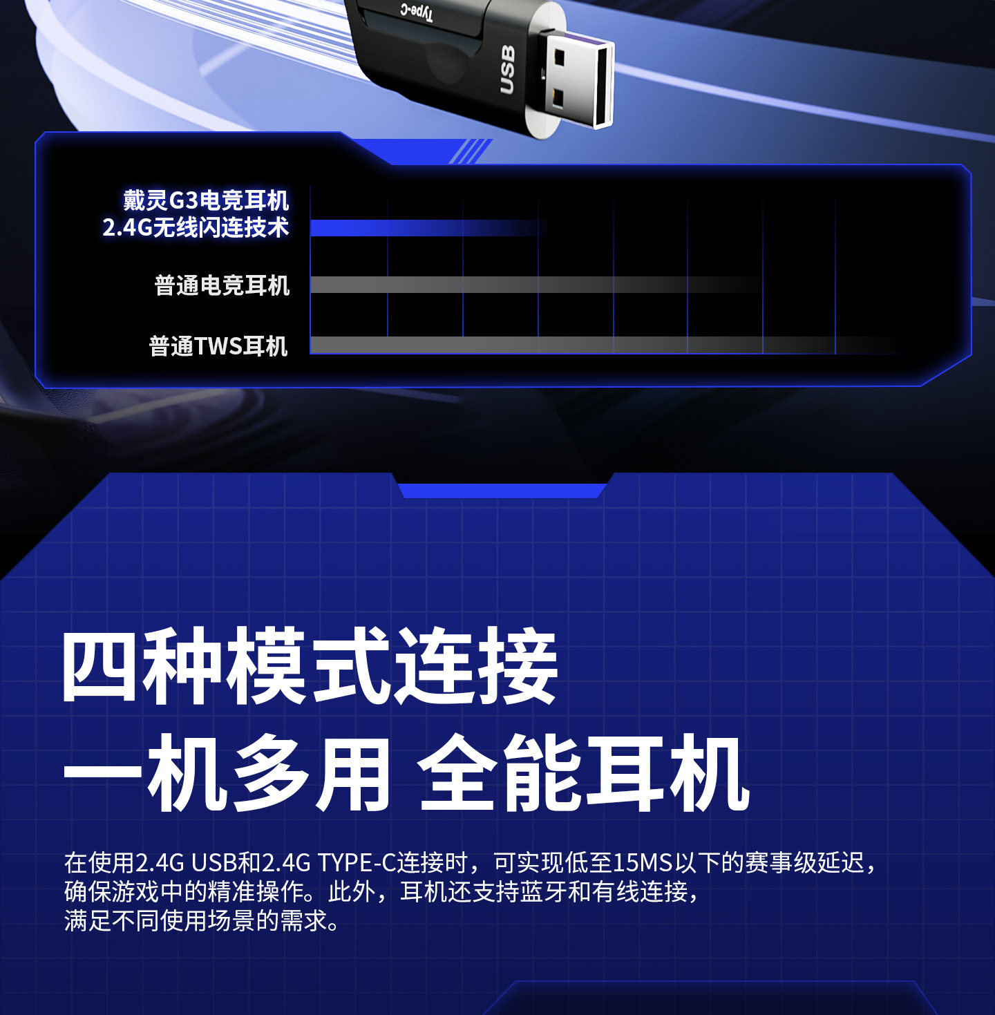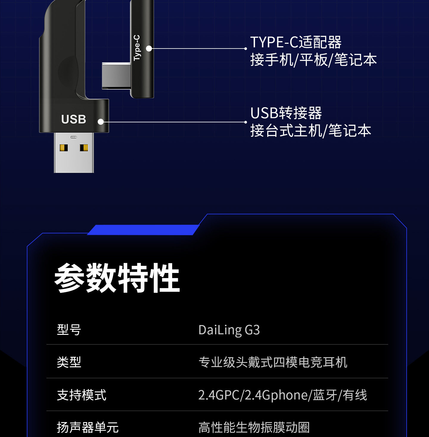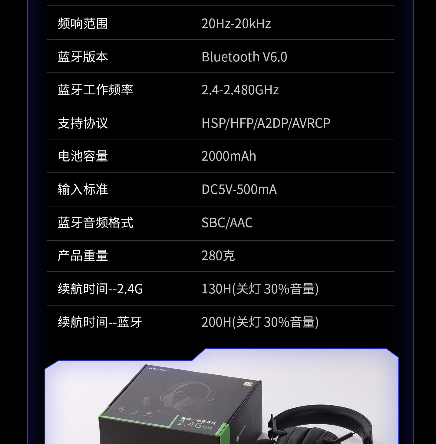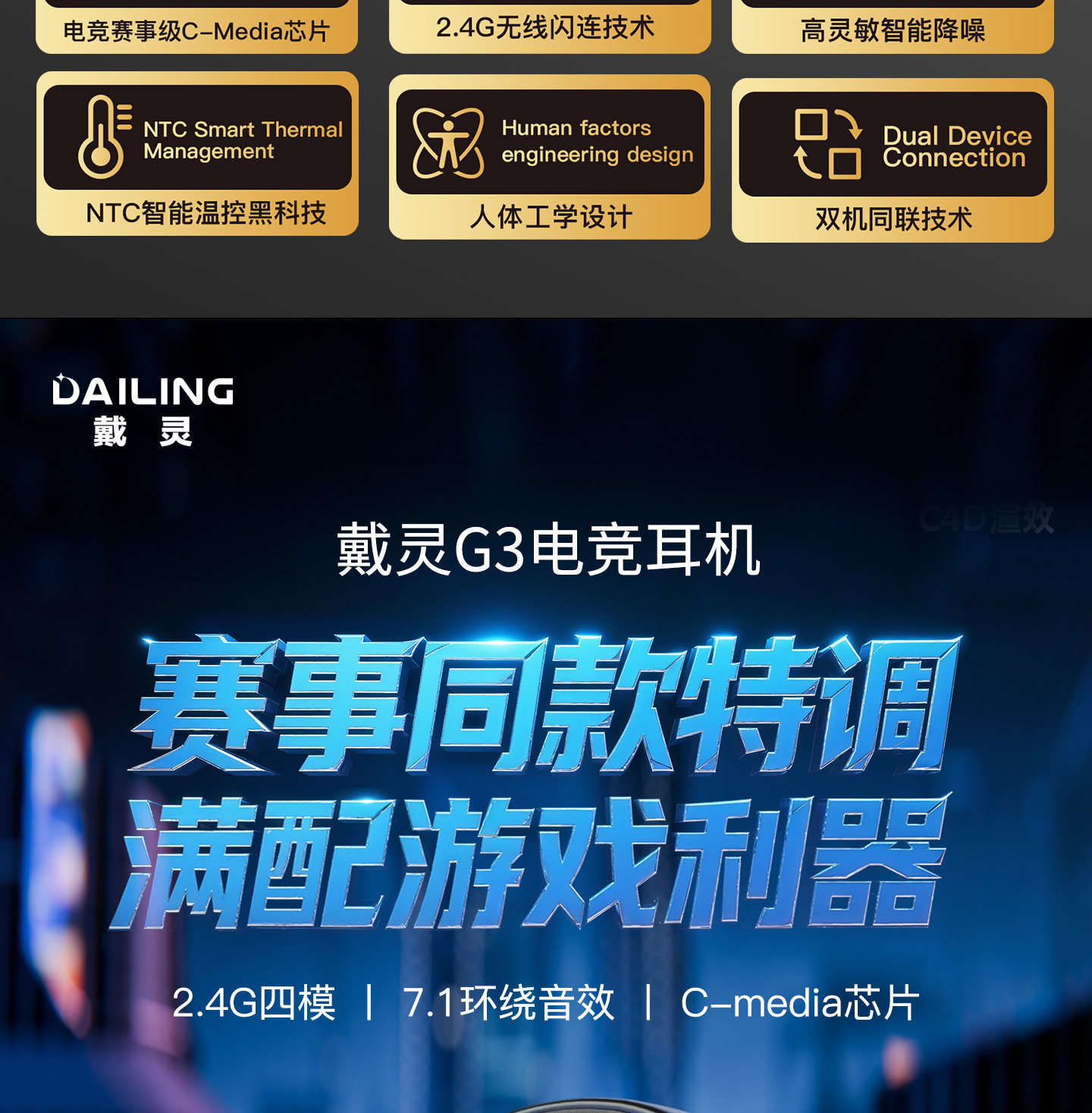 Dailin G3 Gaming E-Sports Headset 2.4g No Delay Computer 7.1 Sound Effect Fps Dedicated with Microphone Long Battery Life