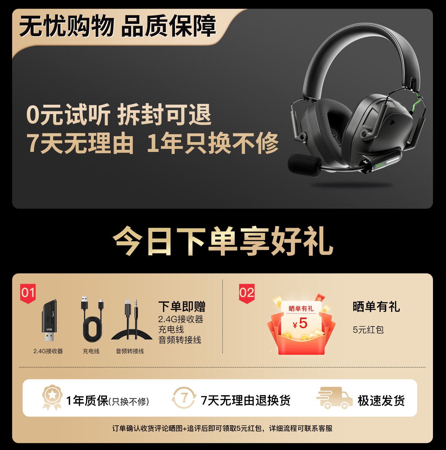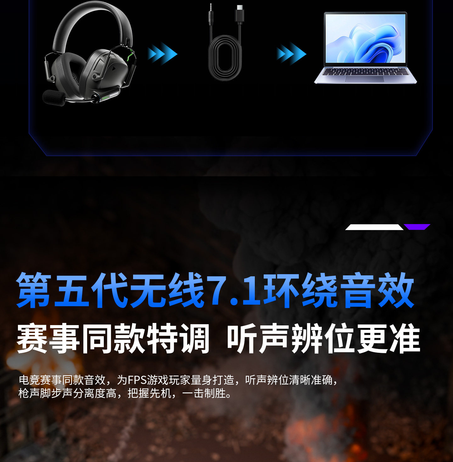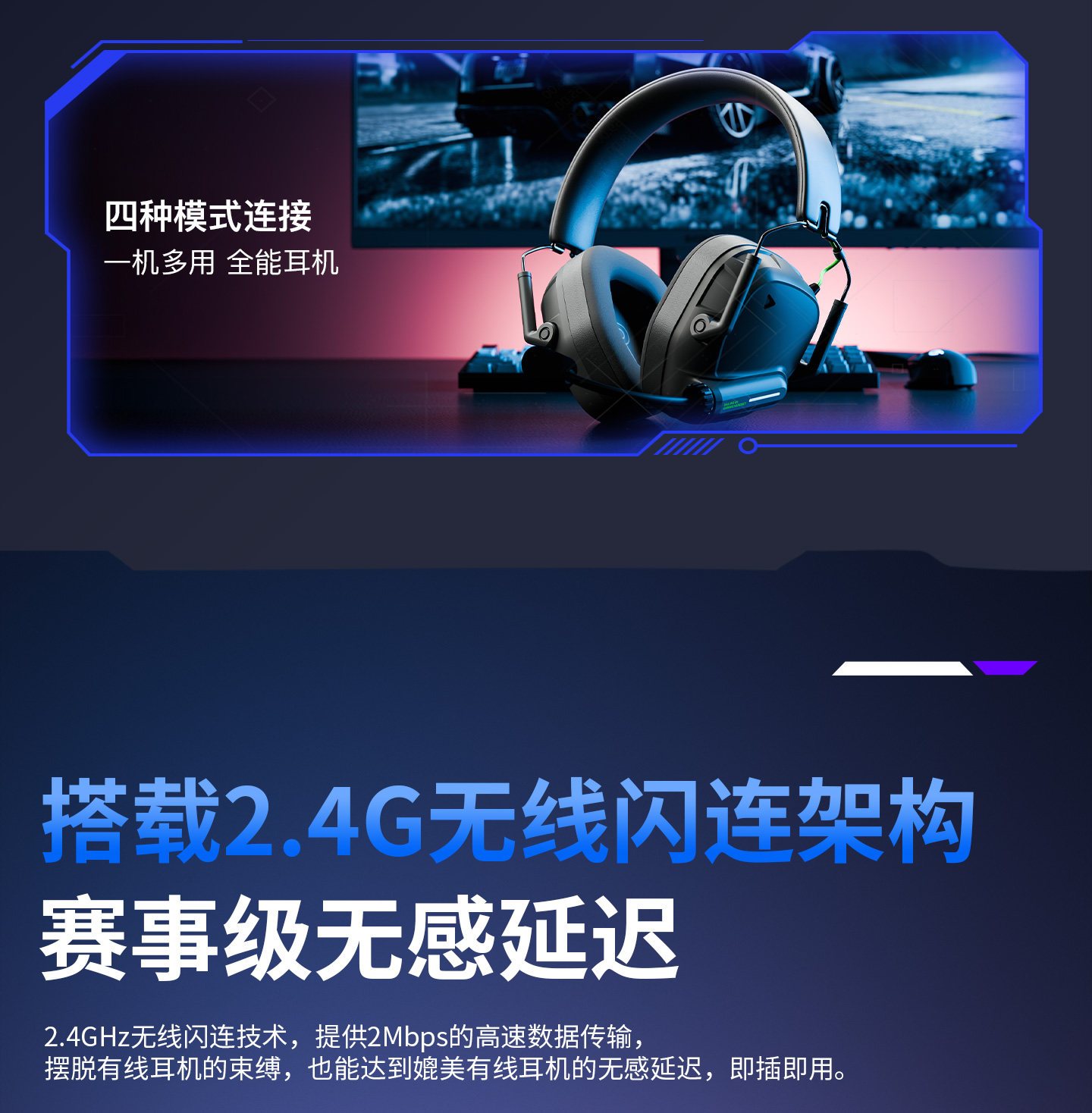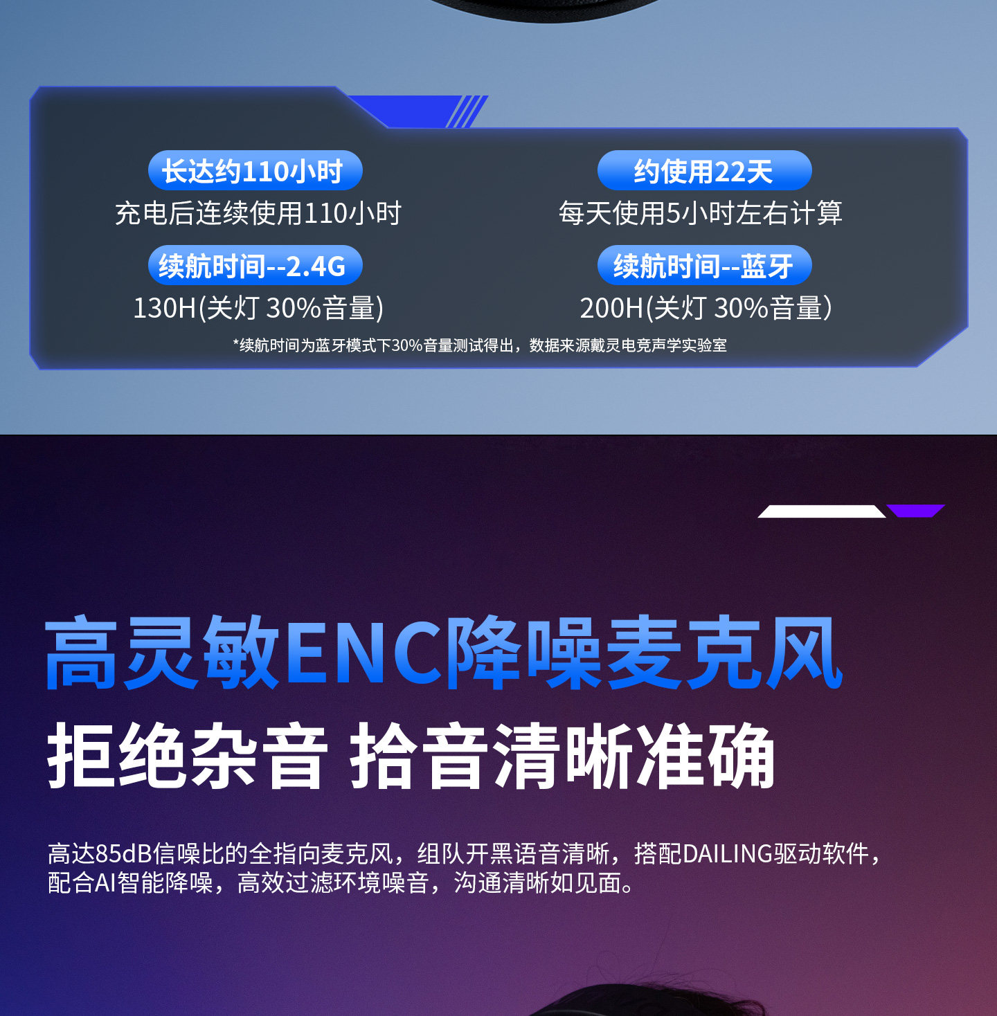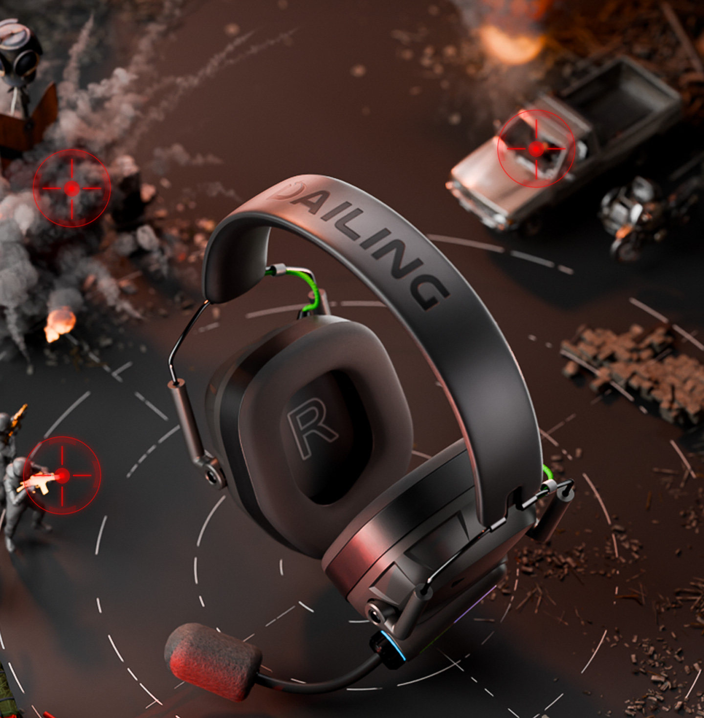 Dailin G3 Gaming E-Sports Headset 2.4g No Delay Computer 7.1 Sound Effect Fps Dedicated with Microphone Long Battery Life