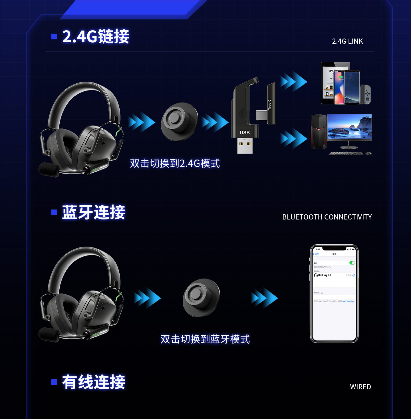 Connection Method of Headphones and Playback Devices 2.4G