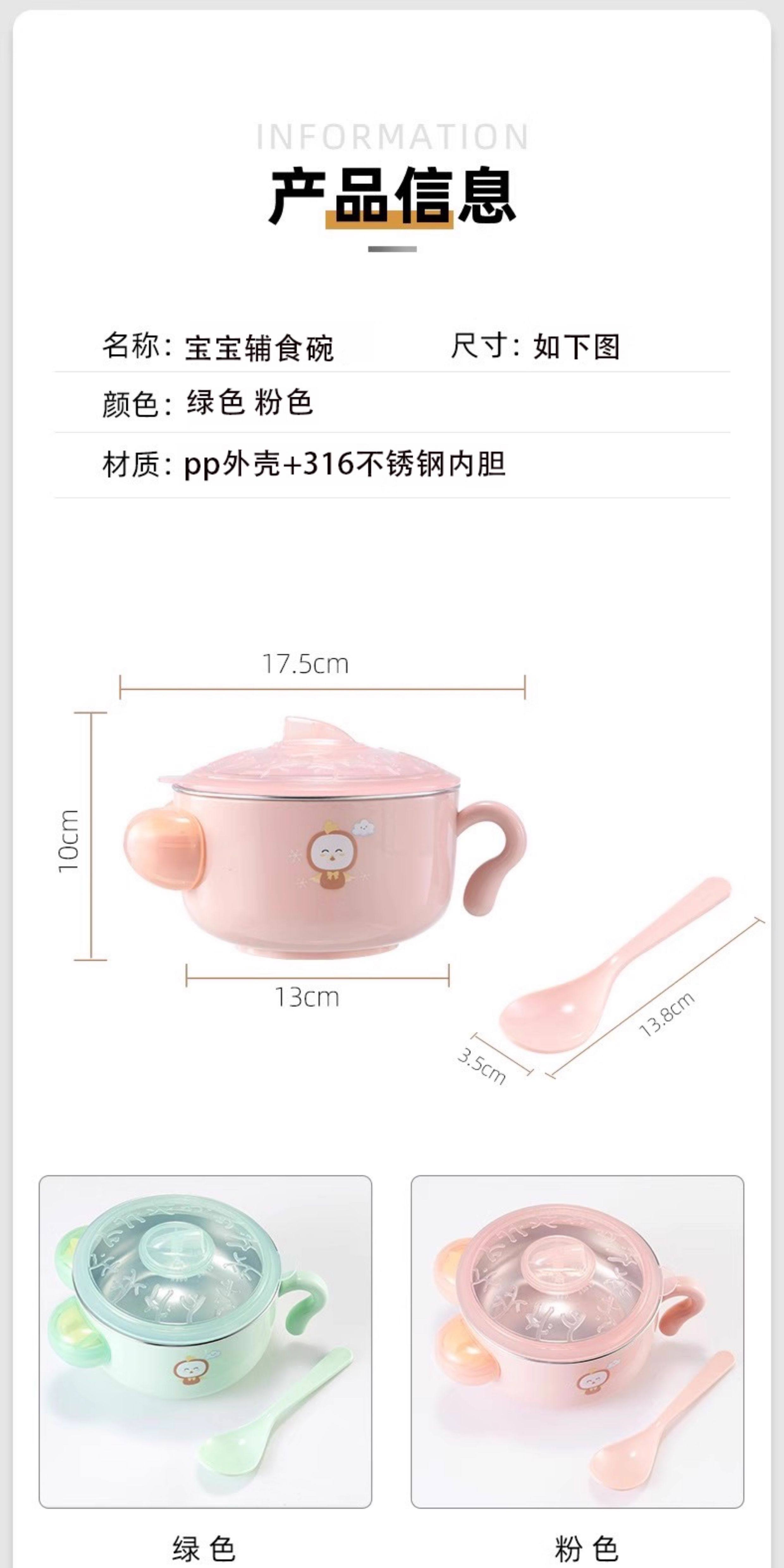 | Color Classification | [Seven-Piece Complementary Food Bowl Set] Azure Green + Silicone Soft Spoon + Rice Cereal Spoon + Fruit and Vegetable Fun + Mud Scraper + Bib + Suction Cup,[Seven-Piece Complementary Food Bowl Set] Pink Powder + Silicone Soft Spoon + Rice Cereal Spoon + Fruit and Vegetable Fun + Mud Scraper + Bib + Suction Cup,ăSix-Piece Baby Food Bowl SetăAzure Green + Rice Cereal Spoon + Silicone Soft Spoon + Mud Scraper + Fruit & Veggie Feeder + Suction Cup,ăSix-Piece Baby Food Bowl SetăPeach Pink Bowl + Rice Cereal Spoon + Silicone Soft Spoon + Mud Scraper + Fruit & Veggie Feeder + Suction Cup,ă5-Piece Baby Food Bowl SetăAzure Green + Silicone Soft Spoon + Fruit & Veggie Feeder + Mud Scraper + Suction Cup,ă5-Piece Baby Food Bowl SetăPeach Pink Bowl + Silicone Soft Spoon + Fruit & Veggie Feeder + Mud Scraper + Suction Cup,ăBaby Food Bowl Set (4-Piece)ăAzure Green + Silicone Soft Spoon + Fruit & Veggie Feeder + Suction Cup,ăBaby Food Bowl Set (4-Piece)ăPeach Pink + Silicone Soft Spoon + Fruit & Veggie Feeder + Suction Base,ăBaby Food Bowl 3-Piece SetăAzure Green + Silicone Soft Spoon + Suction Cup,ăBaby Food Bowl 3-Piece SetăPeach Pink + Silicone Soft Spoon + Suction Cup,[Water Can Be Filled to Keep Warm] Blue Green + Suction Cup,[Special for Young Months] Pink Powder + Suction Cup |