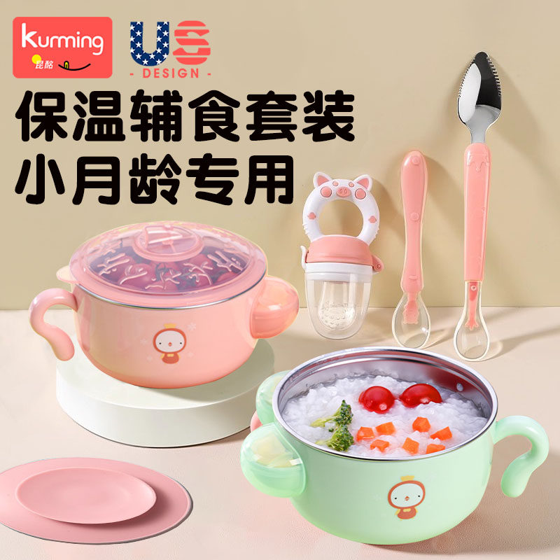Baby Food Bowl, Special Food-Grade Water-Filled Insulation Food Supplement Tool Set for Babies Aged Six Months and Above When Going Out