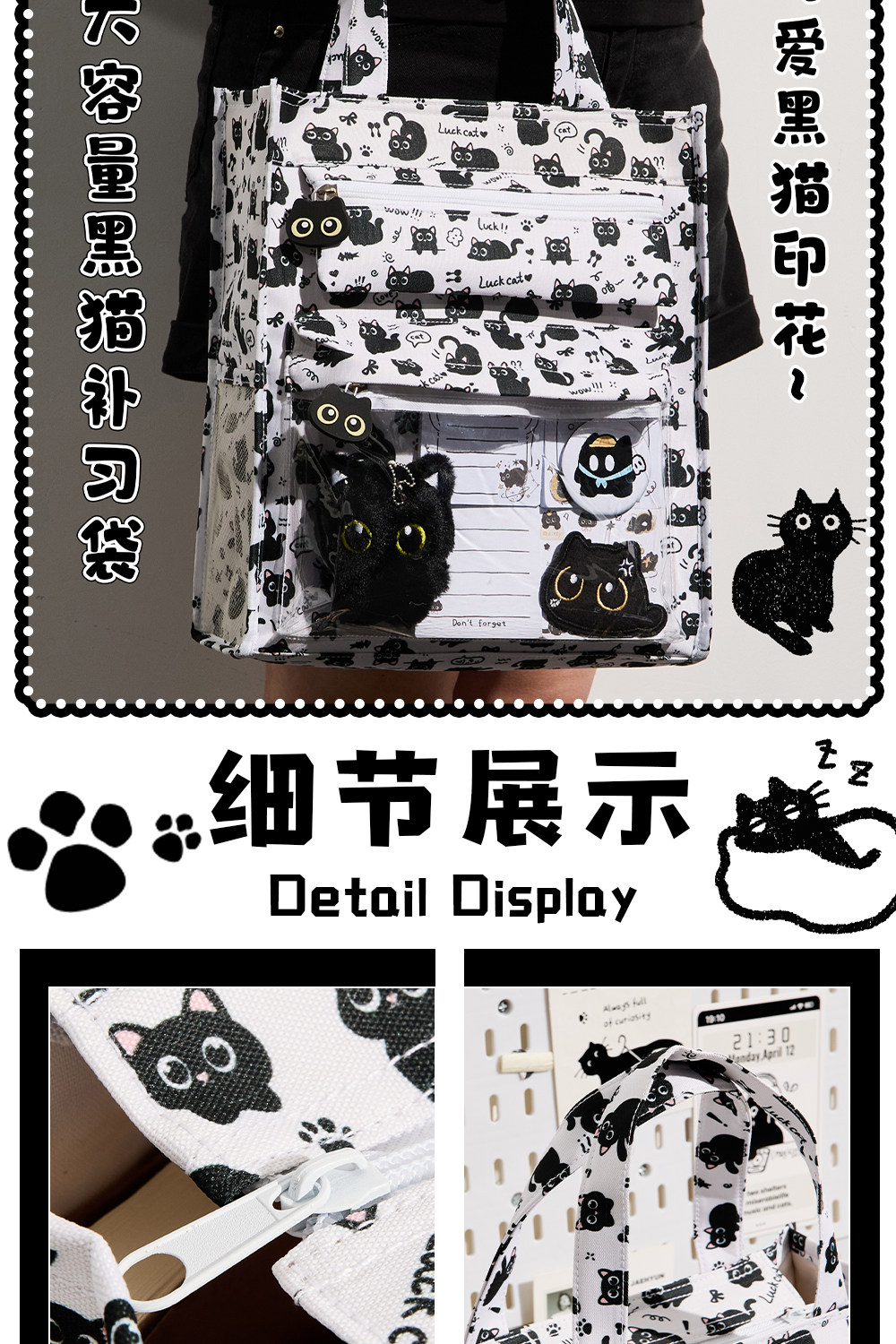 | Product Name | Tutorial Bag 01-Black Cat Print |