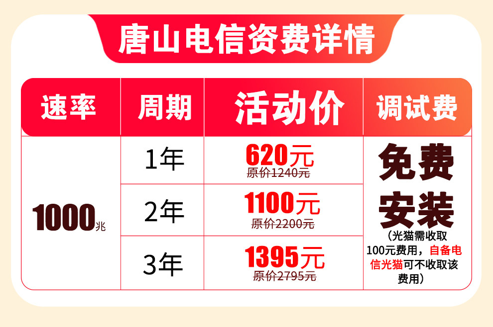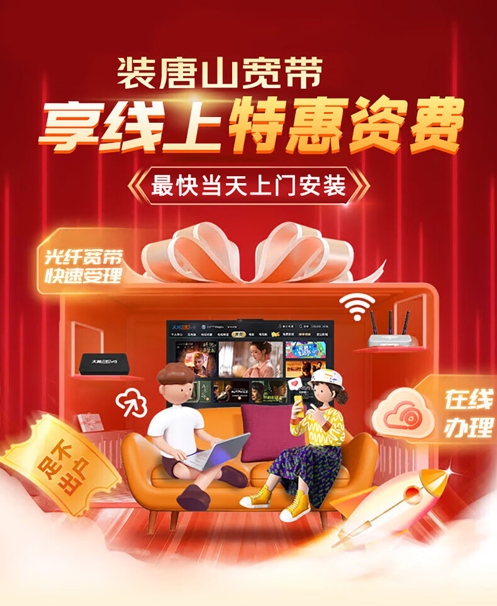 Tangshan Five Districts and Ten Counties' Telecommunications Home Broadband 1000m Fiber Single-Speed Broadband Can Be Applied for at Home Without Installation Fees and Without Card Binding