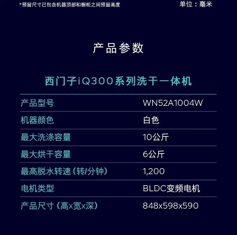 Siemens 10kg Washing and Drying Machine, Drum Type, Fully Automatic, Steam Sterilization, Ice Washing Set 1004W