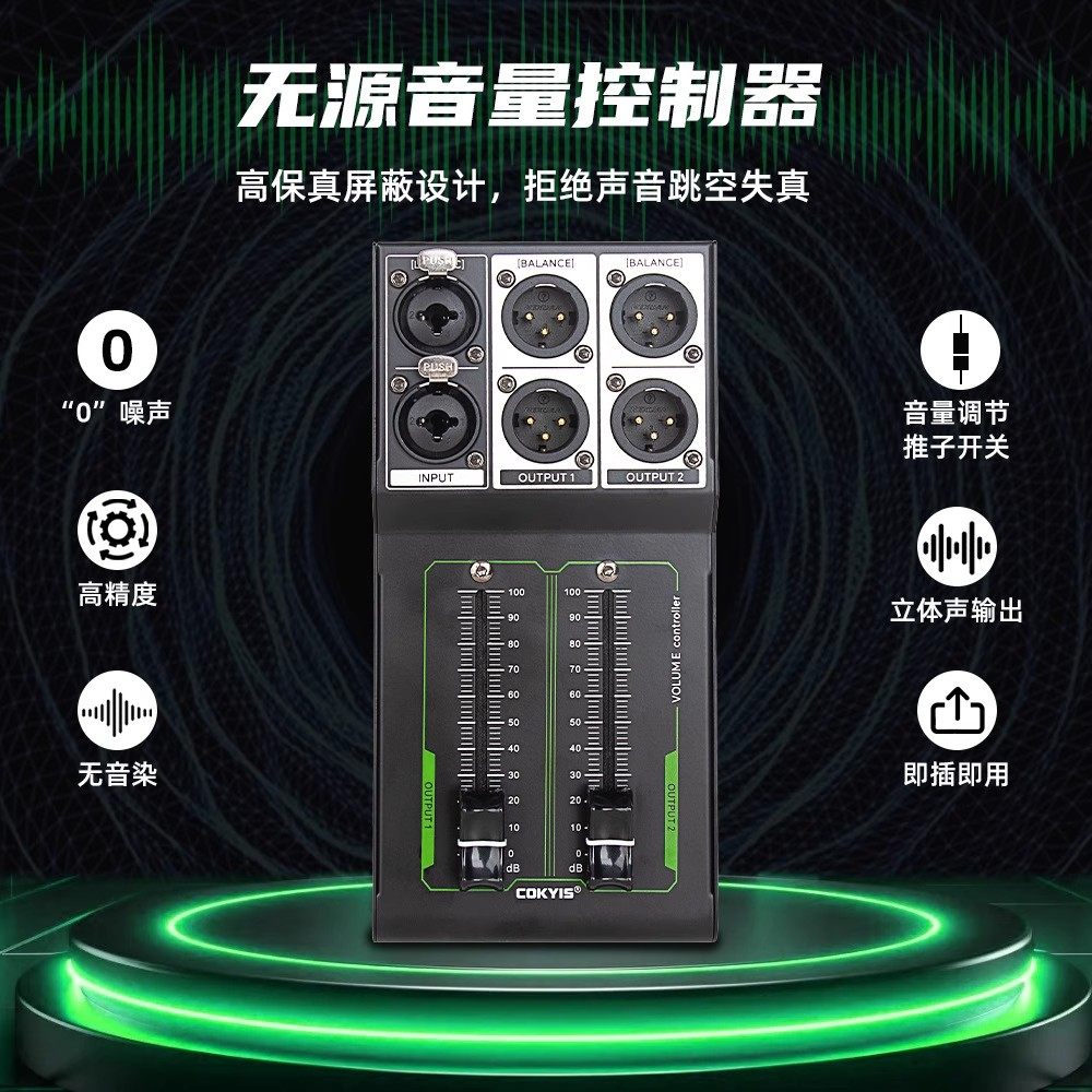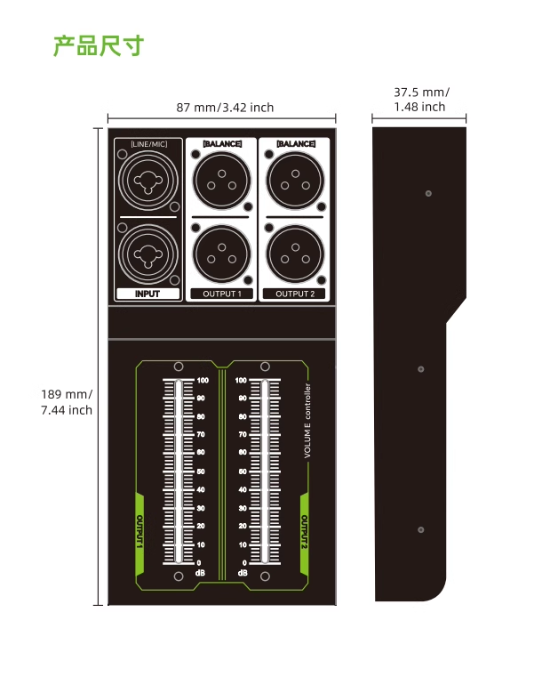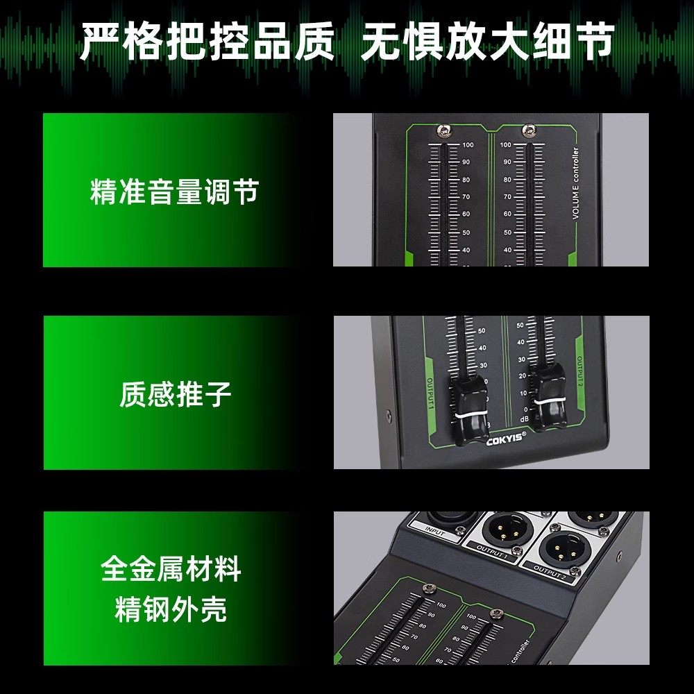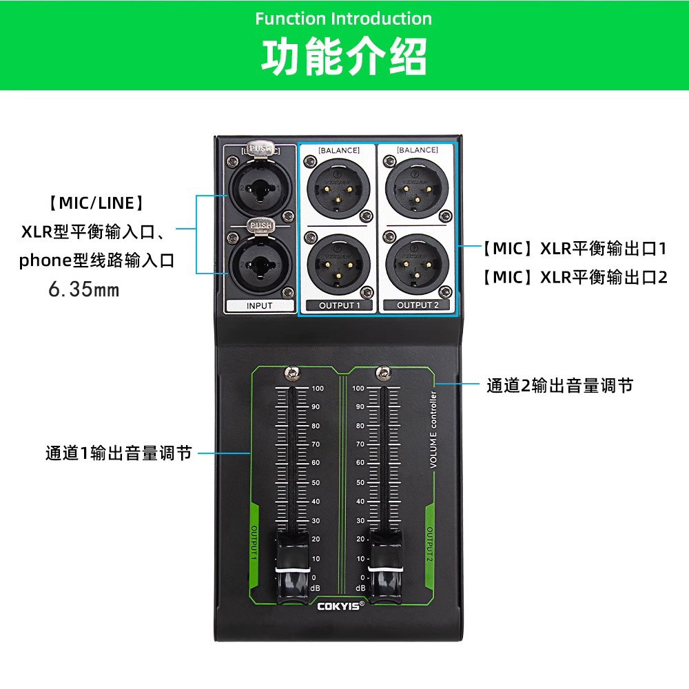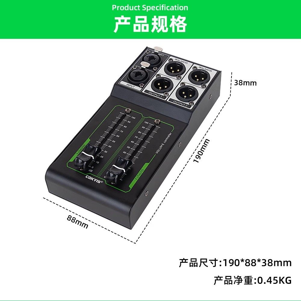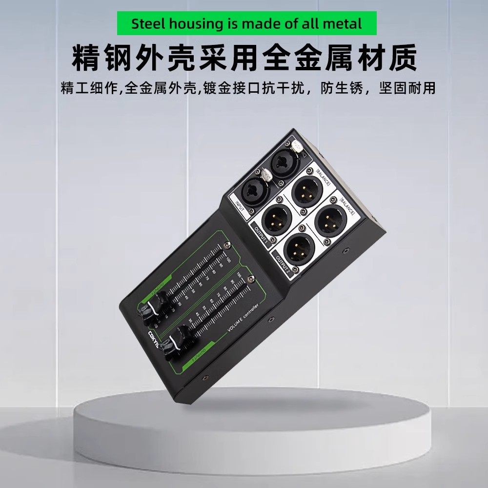 6.35mm Xlr 1 Input 2 Output Splitter for 2-Channel Audio Speaker Volume Mixer with Manual Adjustment Control