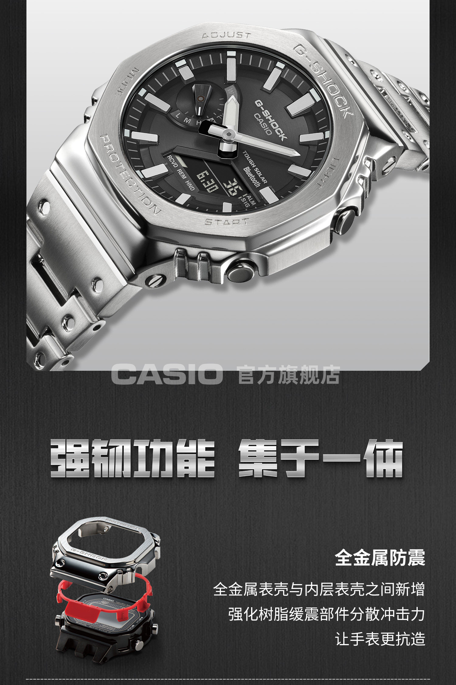 [New Year's Gift] Casio official store Gm-B2100Sd All-Metal Octagonal Men's Watch G-Shock