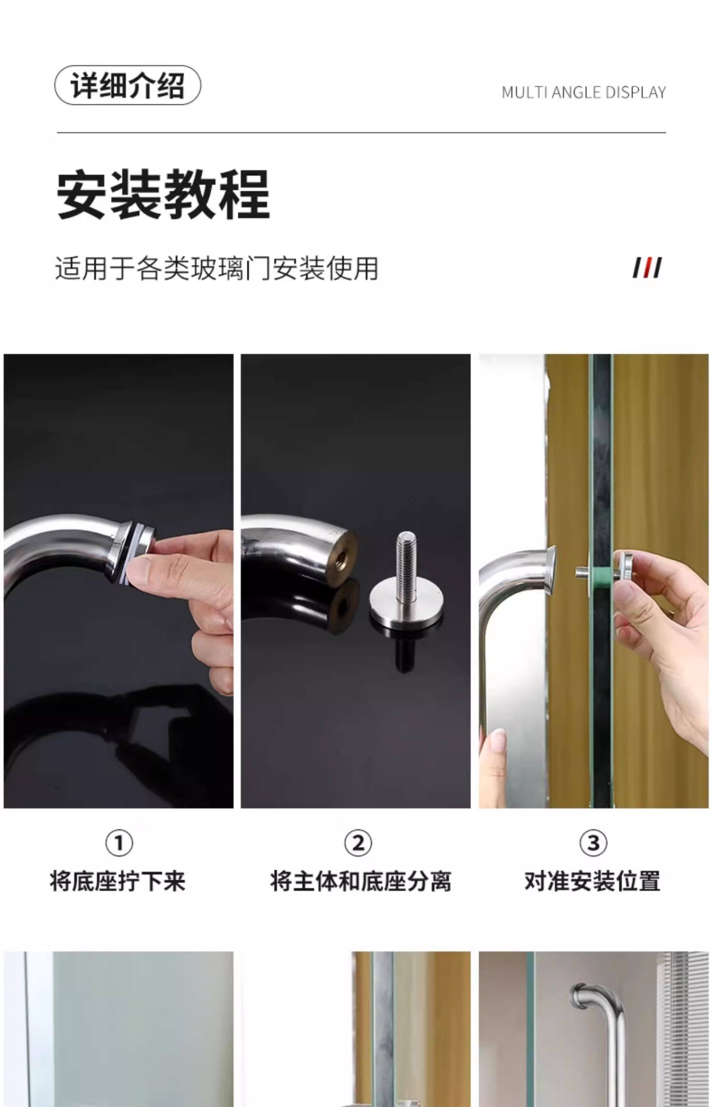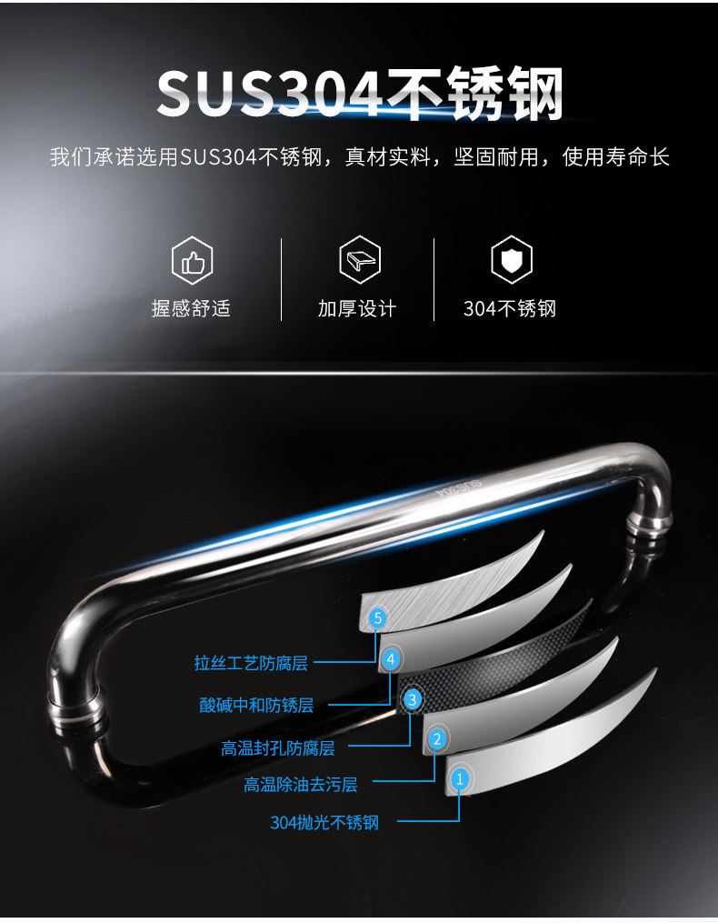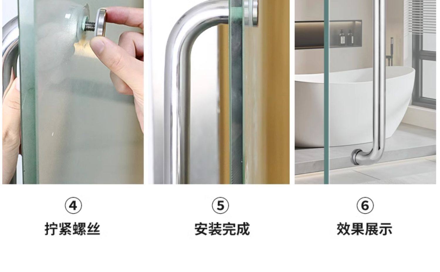 Bathroom Tempered Glass Door Handle Stainless Steel Shower Room Door Handle Bathroom Sliding Door 304 Copper Core Handle