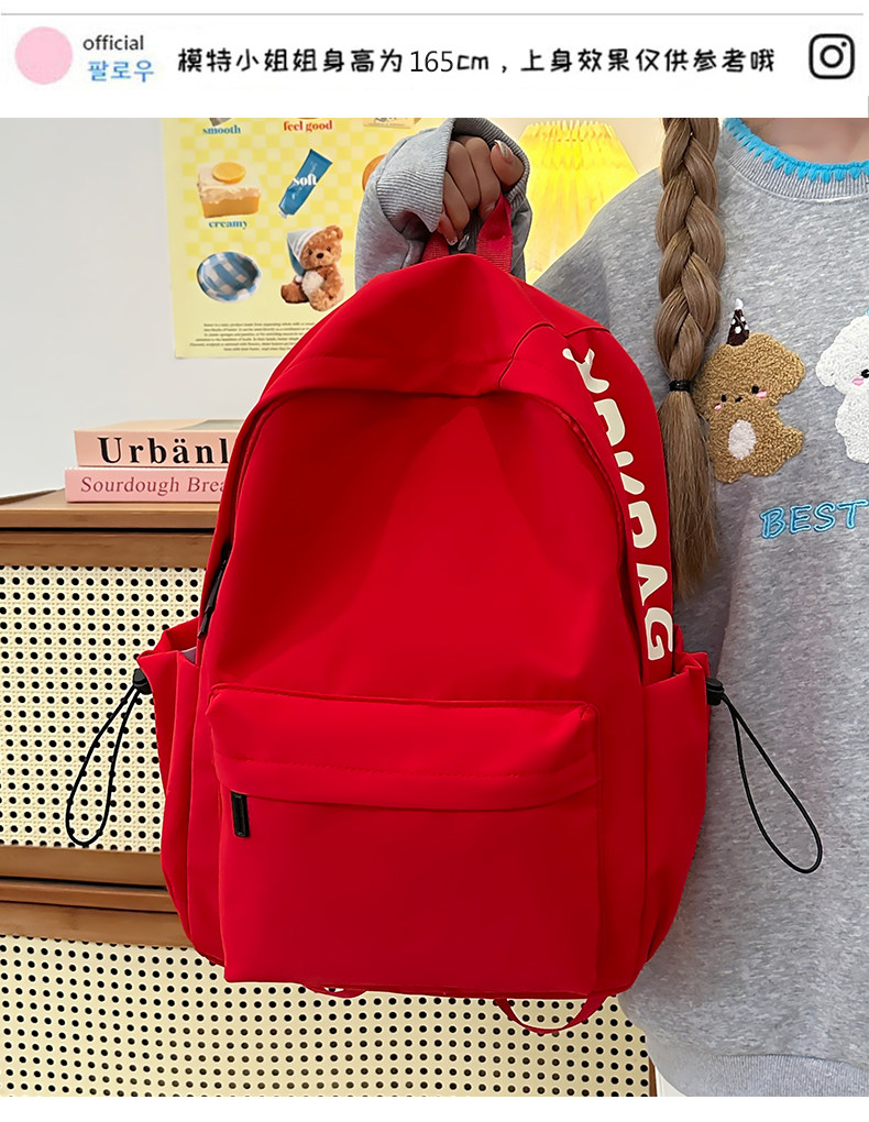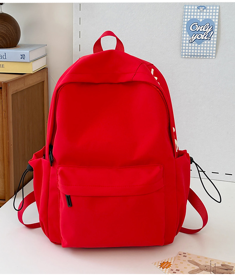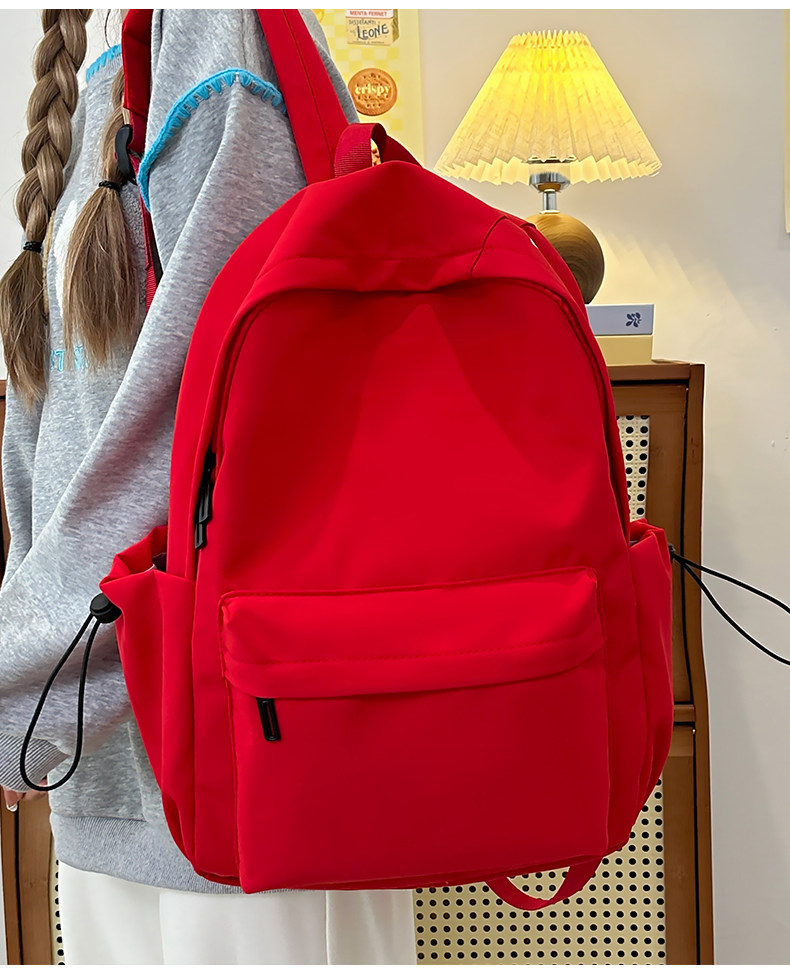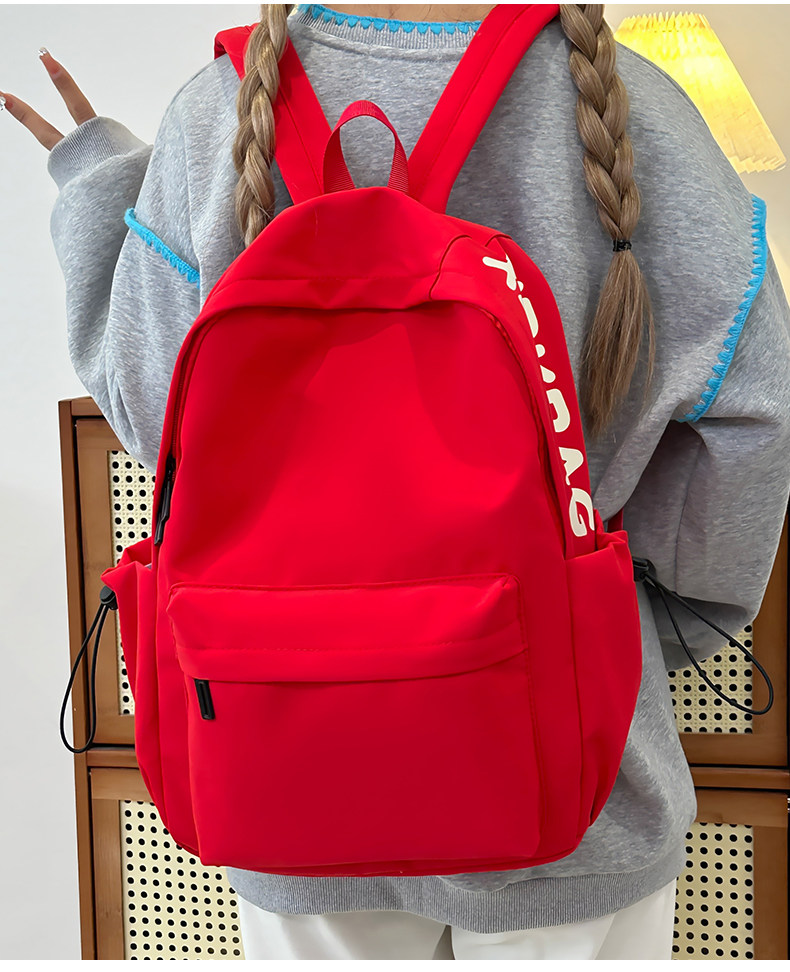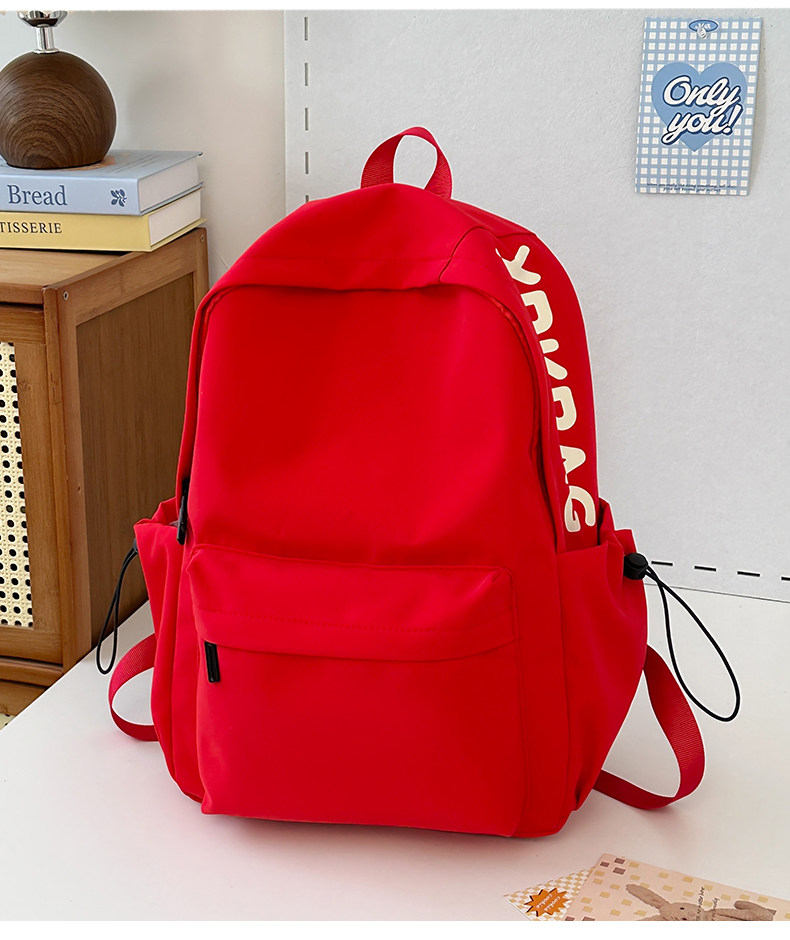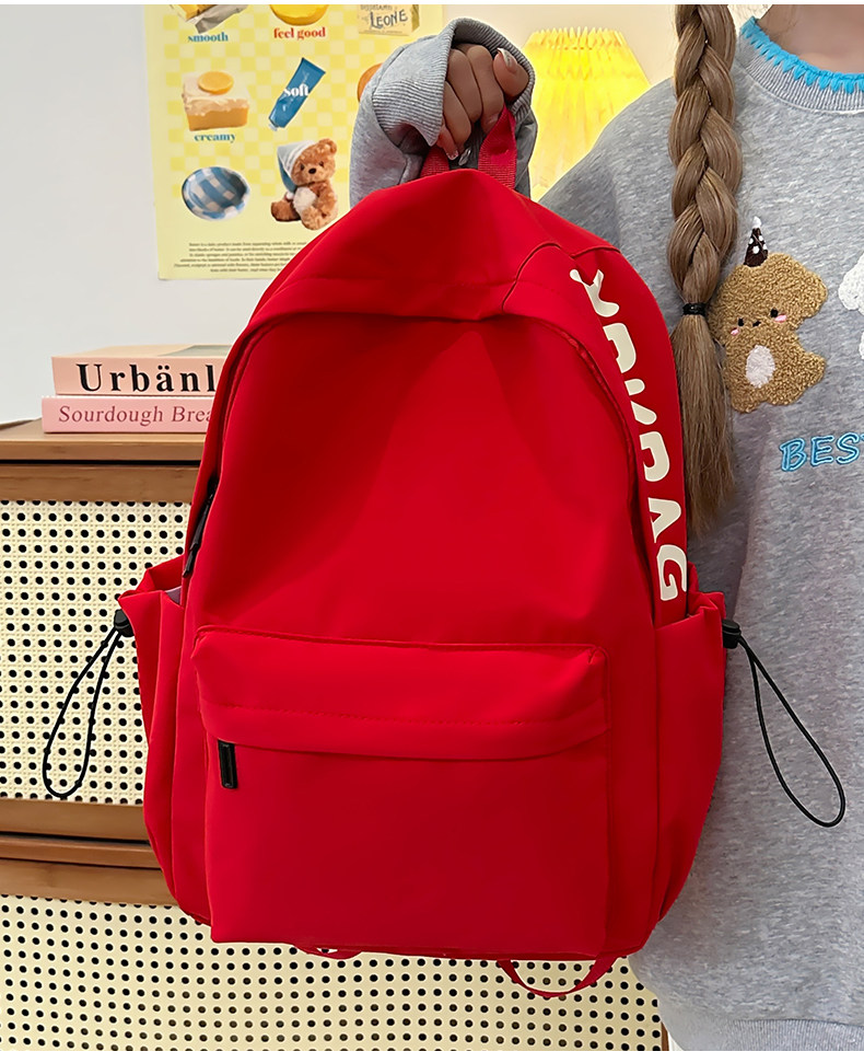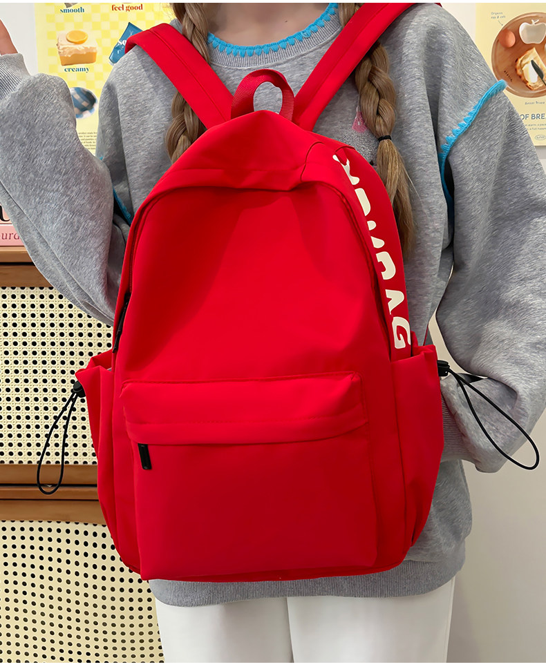 Red Schoolbag for Female Junior High School Students, Simple and Versatile, Lightweight Backpack for Elementary School Students, Outdoor Travel Backpack