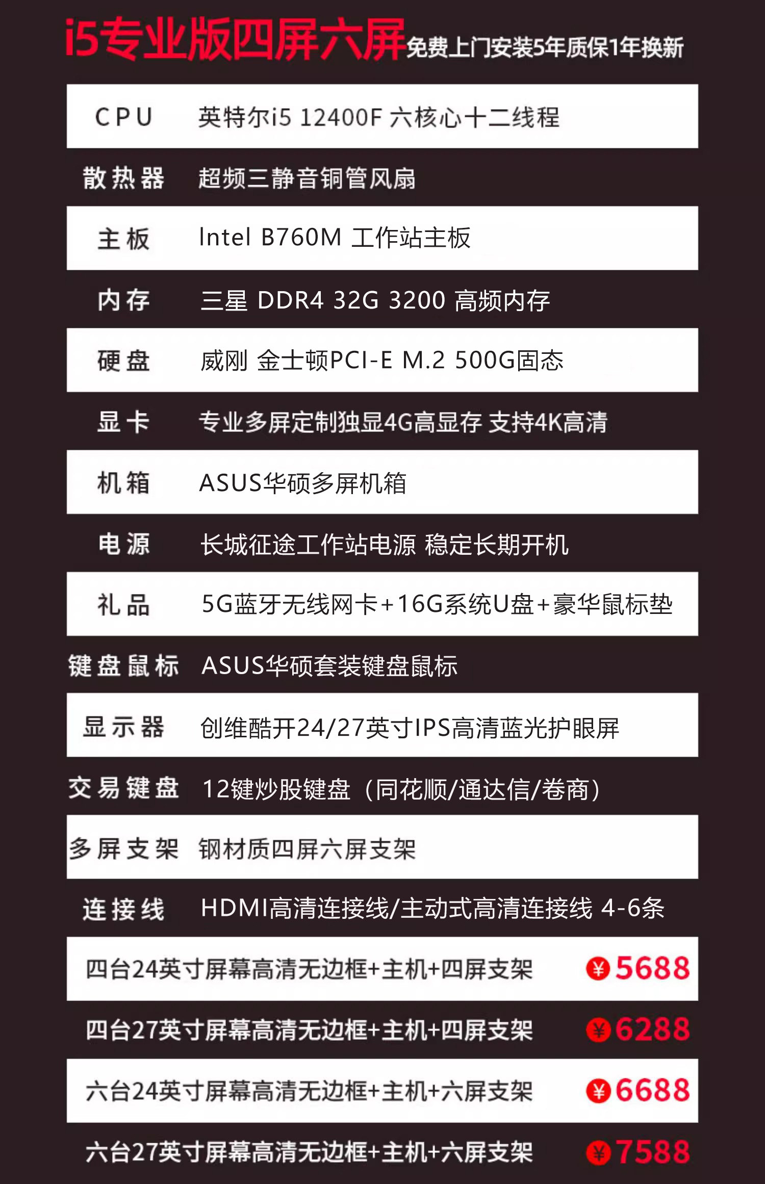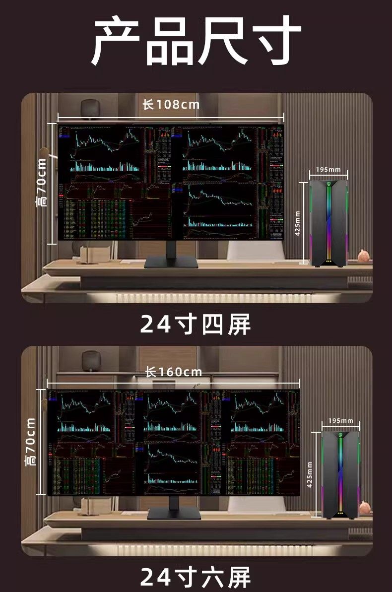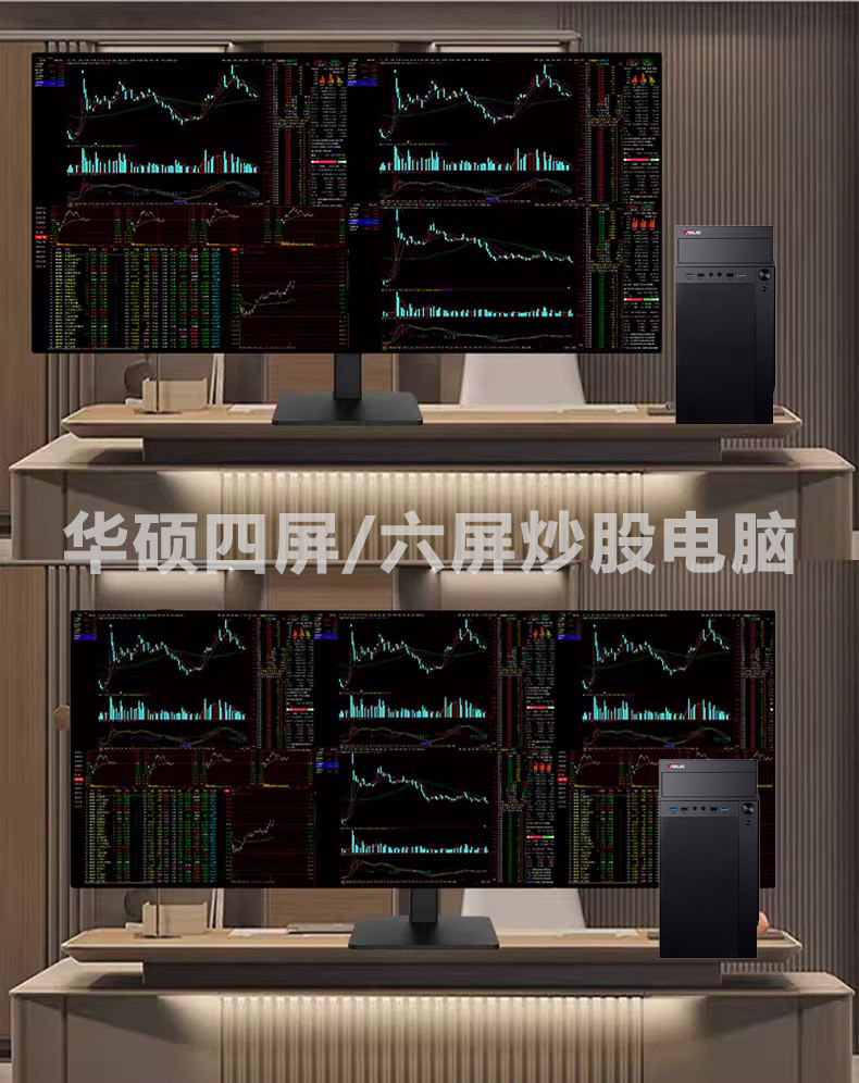 Asus Multi-Screen Desktop Computer for Stock and Futures Trading, One Computer with Four Screens, Six-Screen Trading Tool, Financial Market Monitoring Computer, Desktop Computer with Four Screens, Six-Screen DIY Stock Host Computer Monitor Set