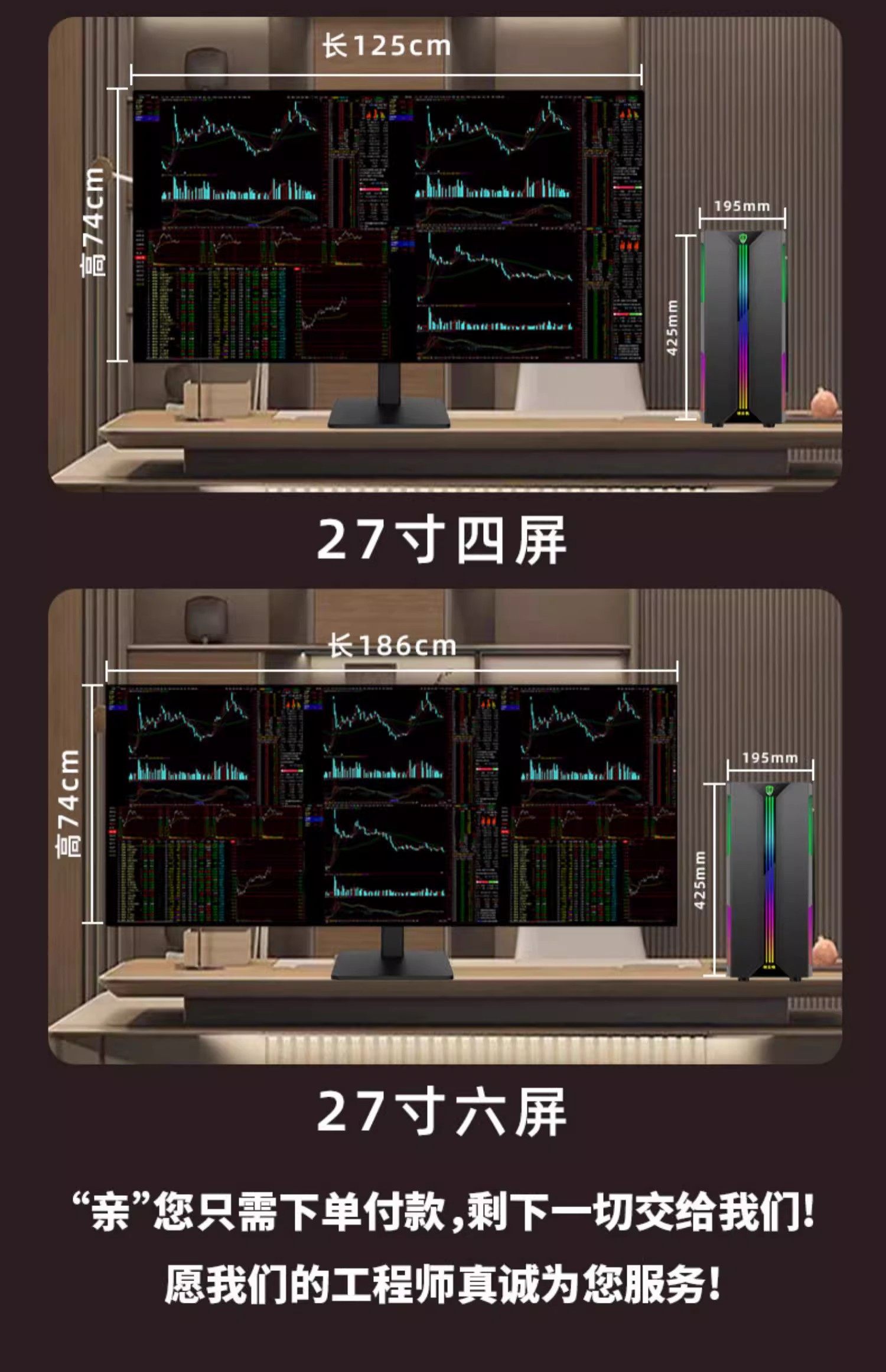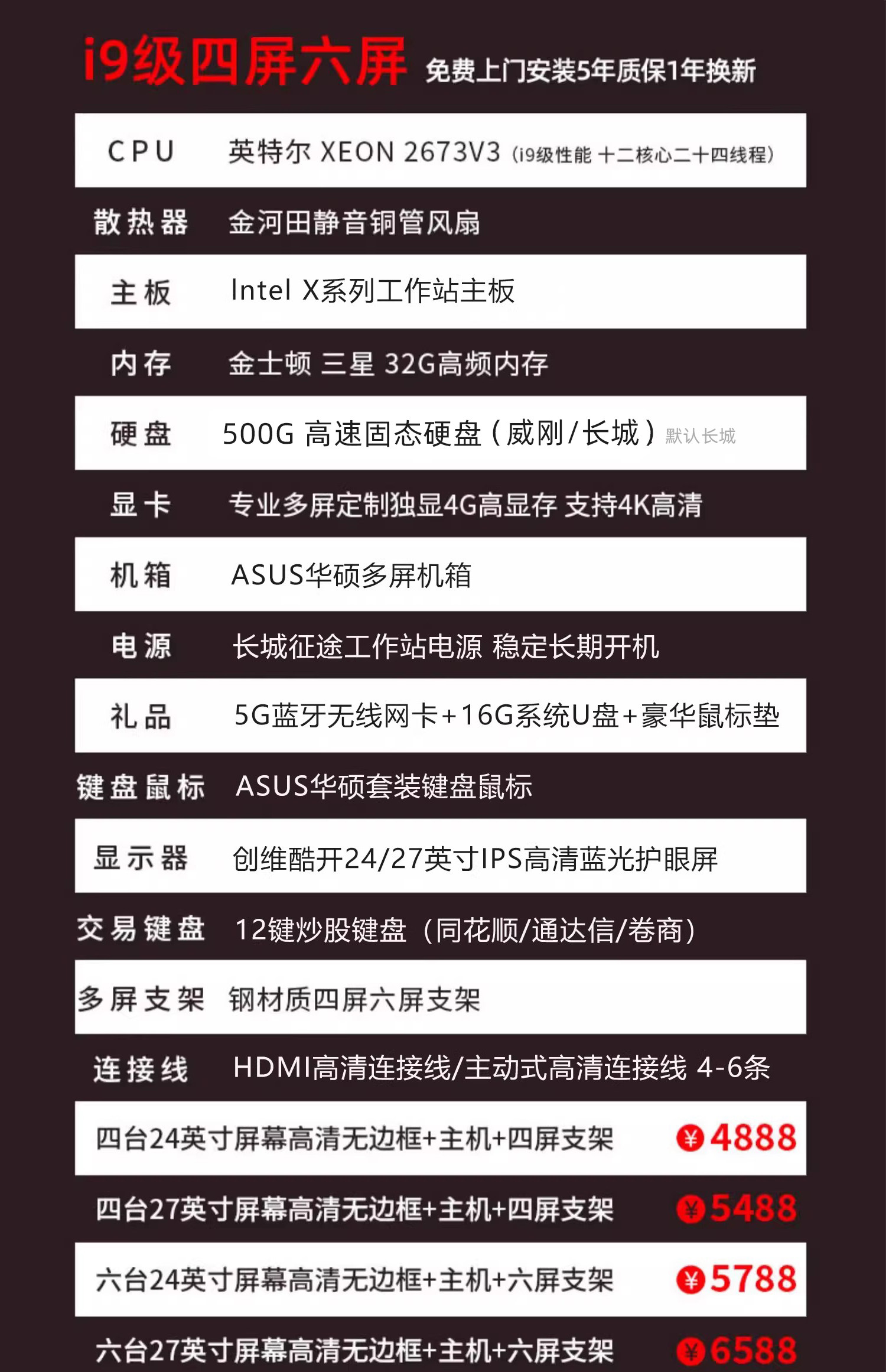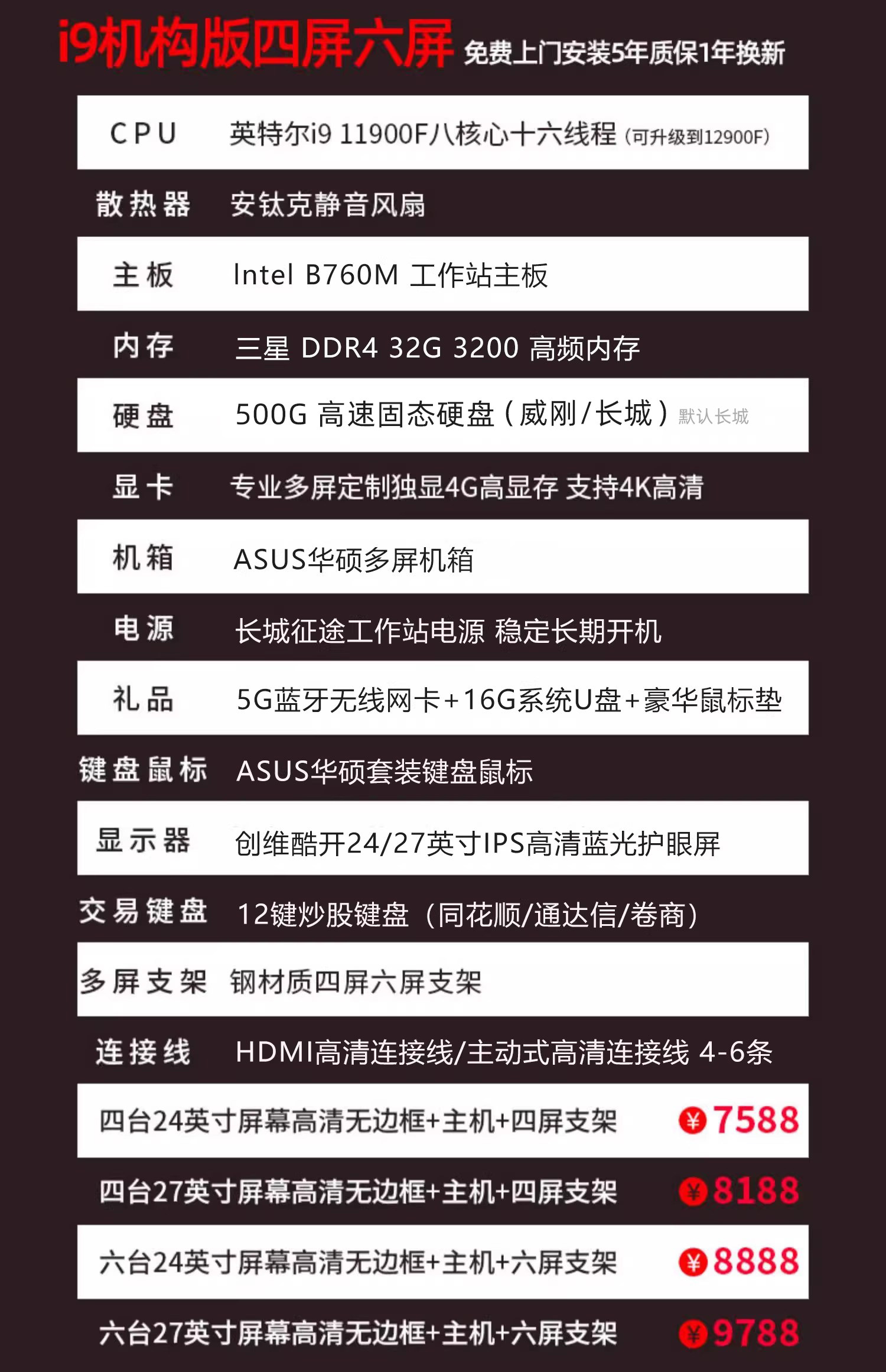Asus Multi-Screen Desktop Computer for Stock and Futures Trading, One Computer with Four Screens, Six-Screen Trading Tool, Financial Market Monitoring Computer, Desktop Computer with Four Screens, Six-Screen DIY Stock Host Computer Monitor Set